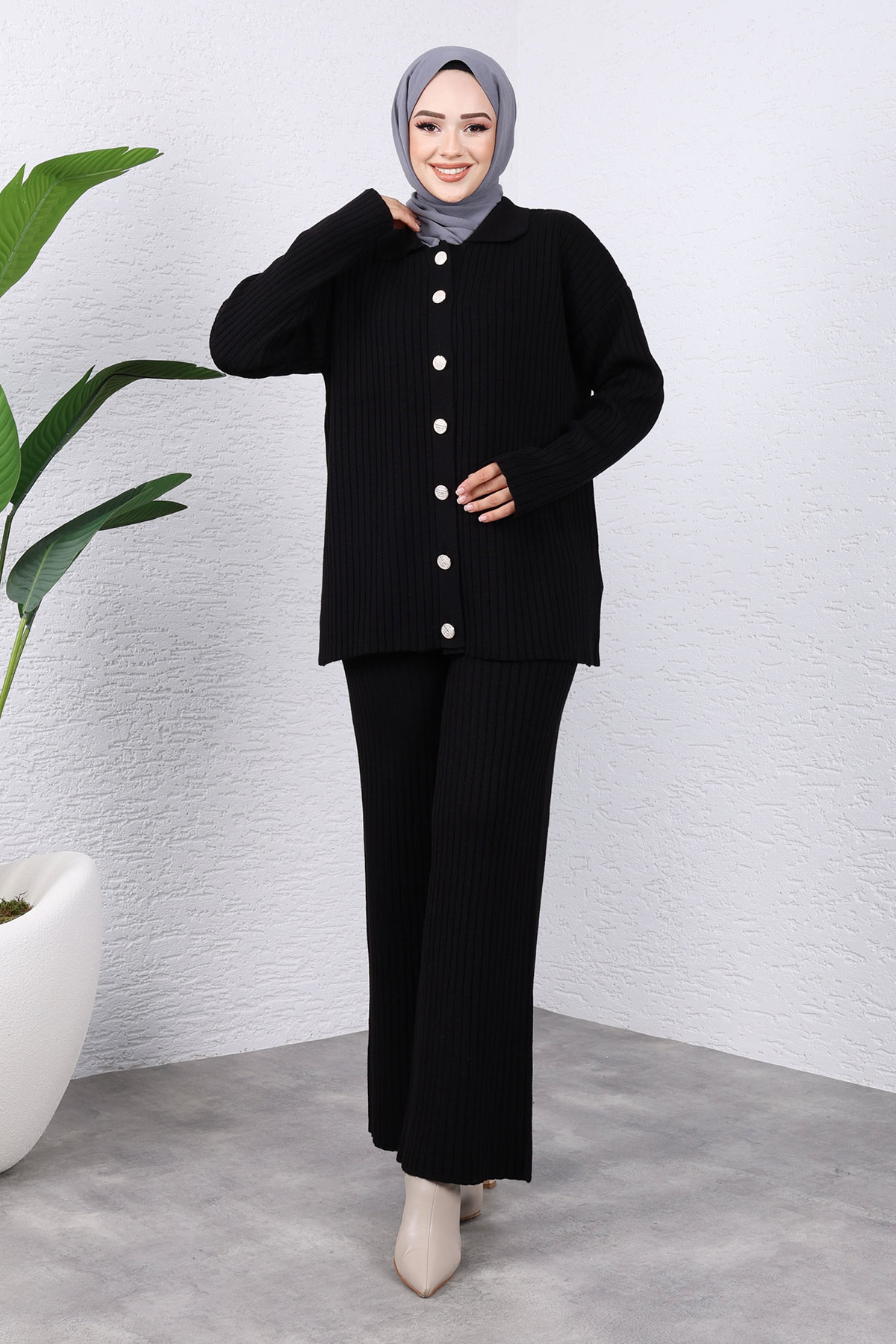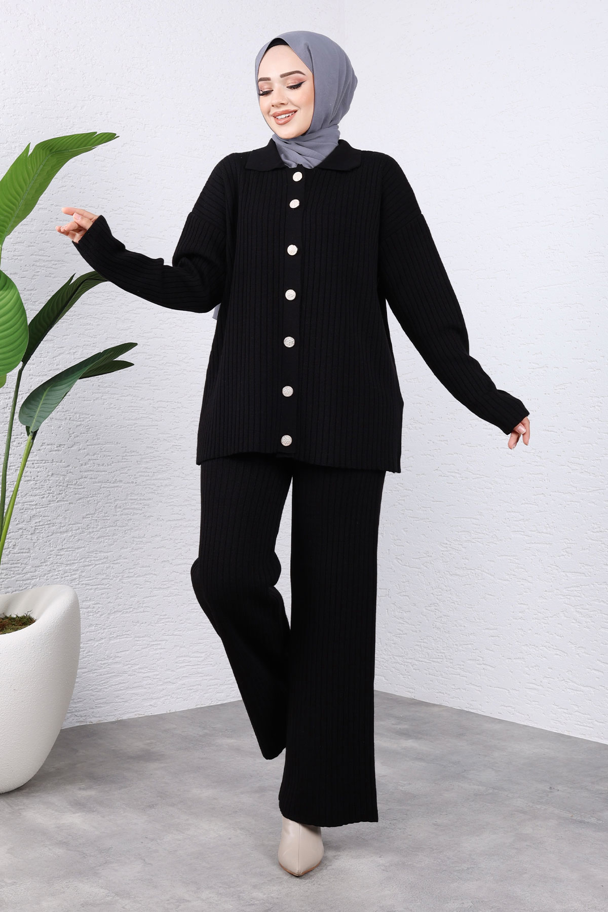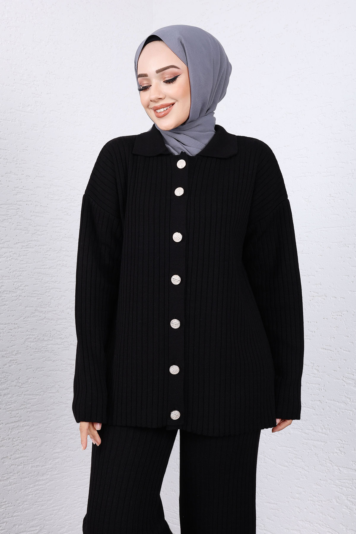 Ürün Özelliği : Yeni sezon Önden Düğmeli Triko Takım modelidir. Esnektir. Ürün düşük kol modellidir. Önden düğmelidir. Pantolon beli lastiklidir. Ürün renginde konsept çekimlerinden dolayı ton farklılığı olabilir.