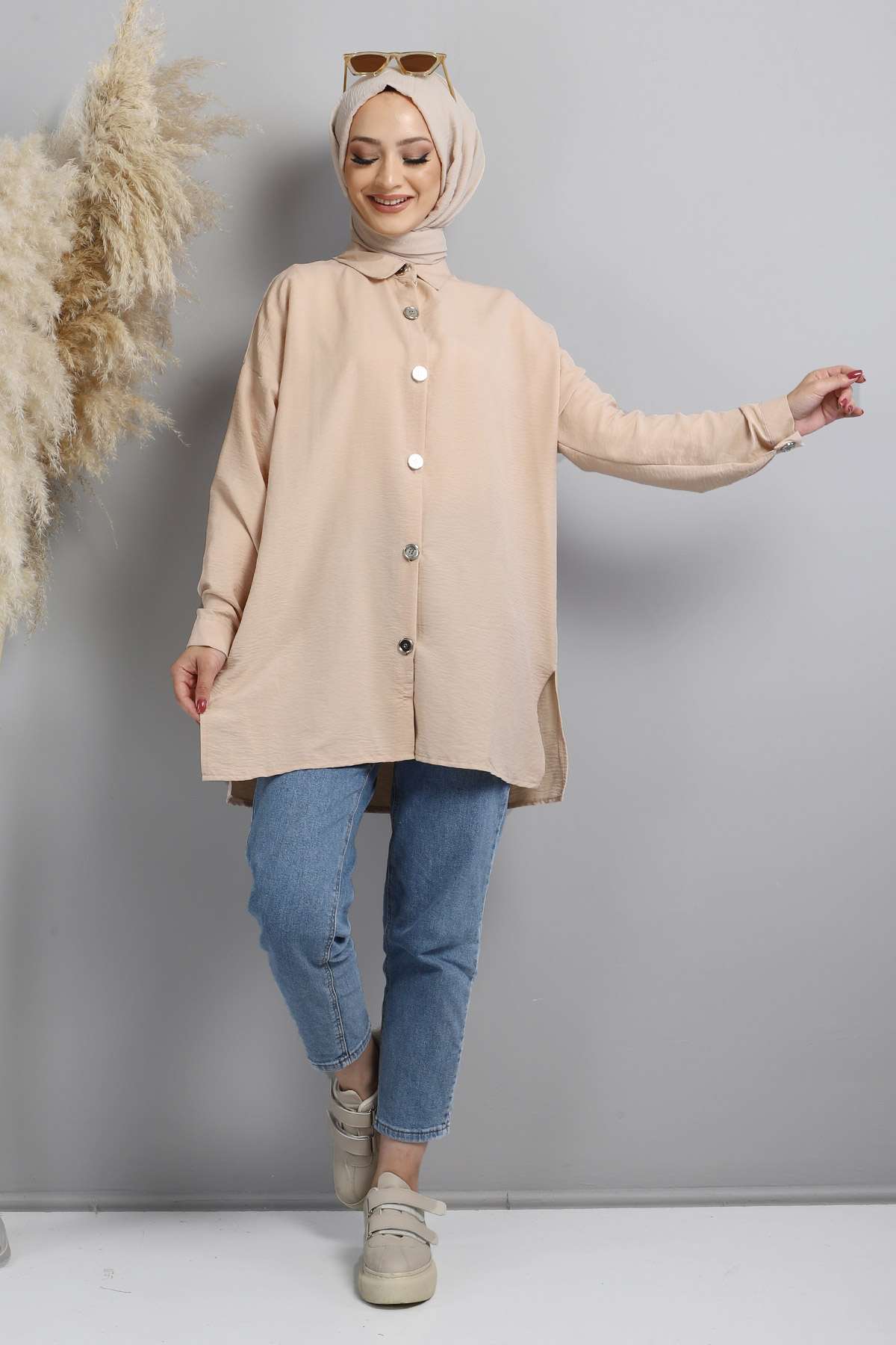 Ürün Özelliği : Yeni sezon Önden Düğmeli Tunik modelidir. Önden açılabilir düğme detayı bulunur. Kol uçları manşettir.Yandan kısa yırtmaç detaylıdır.Ürün renginde konsept çekimlerinden dolayı ton farklılığı olabilir.
