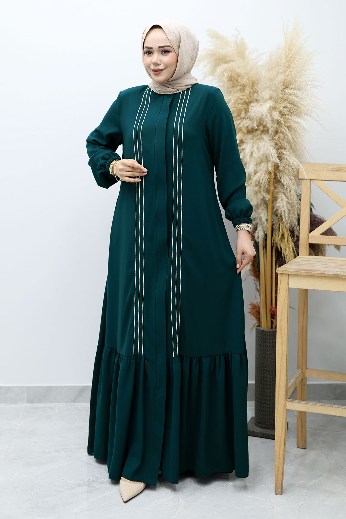 Önü Biyeli Volanlı Tesettür Ferace TSD260143 Petrol Özellikleri