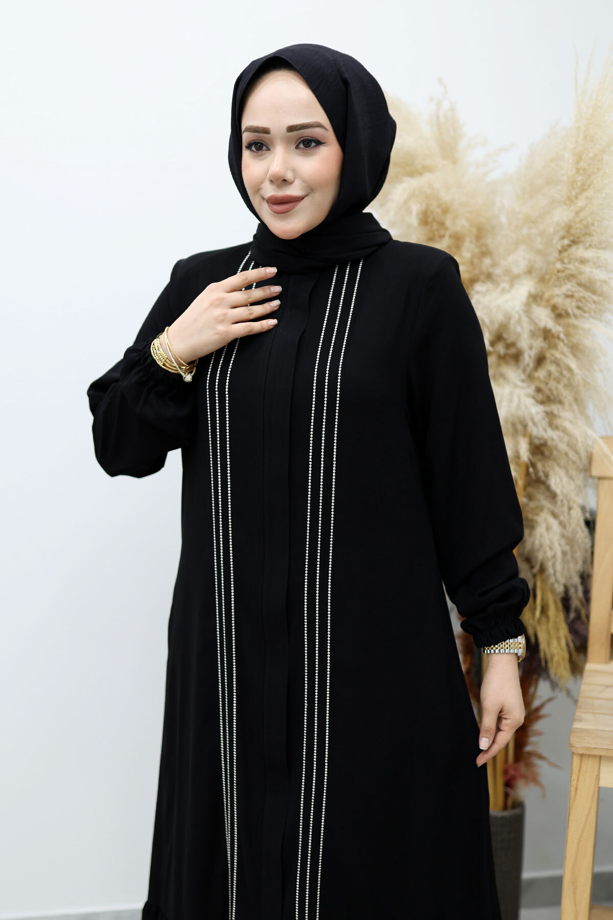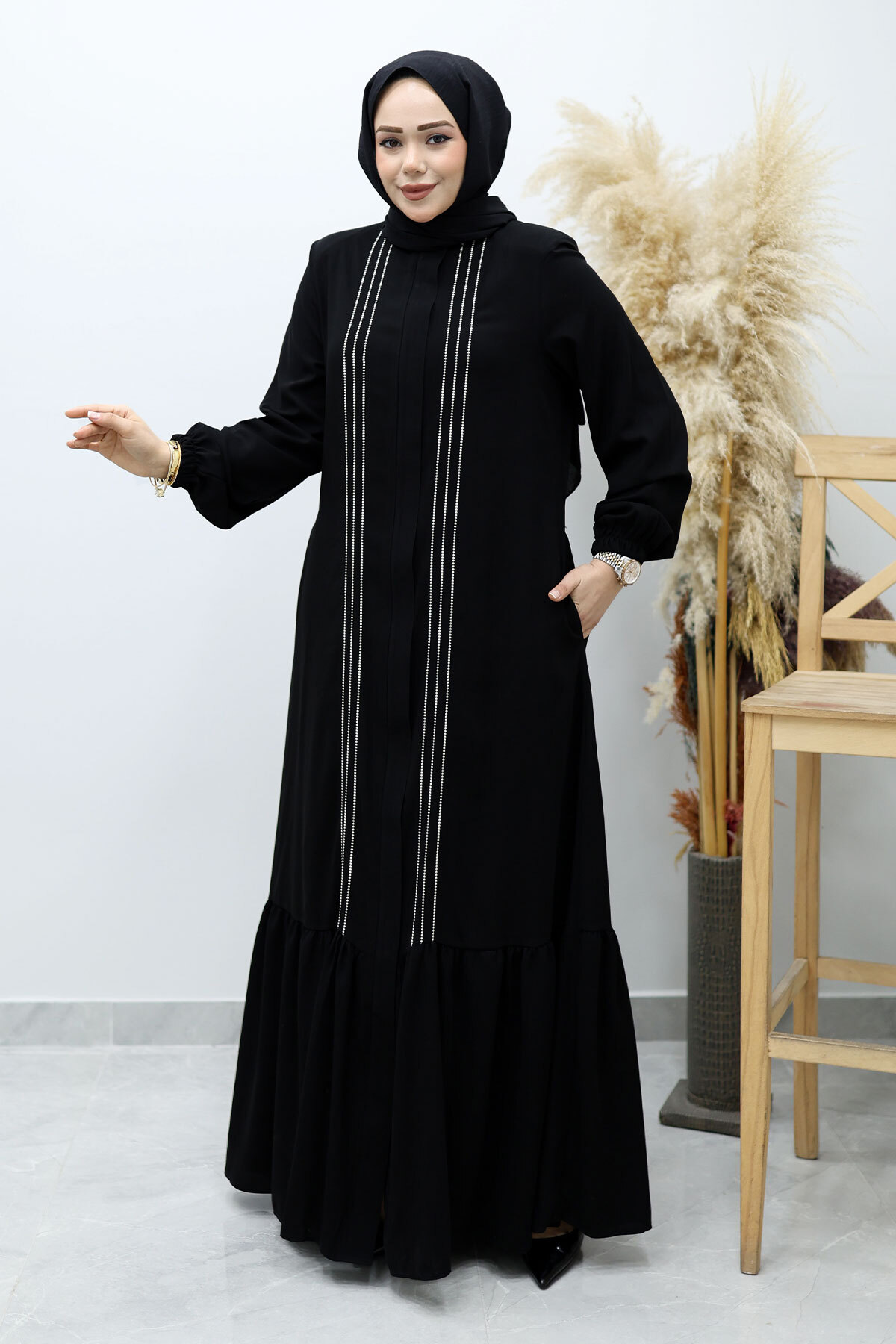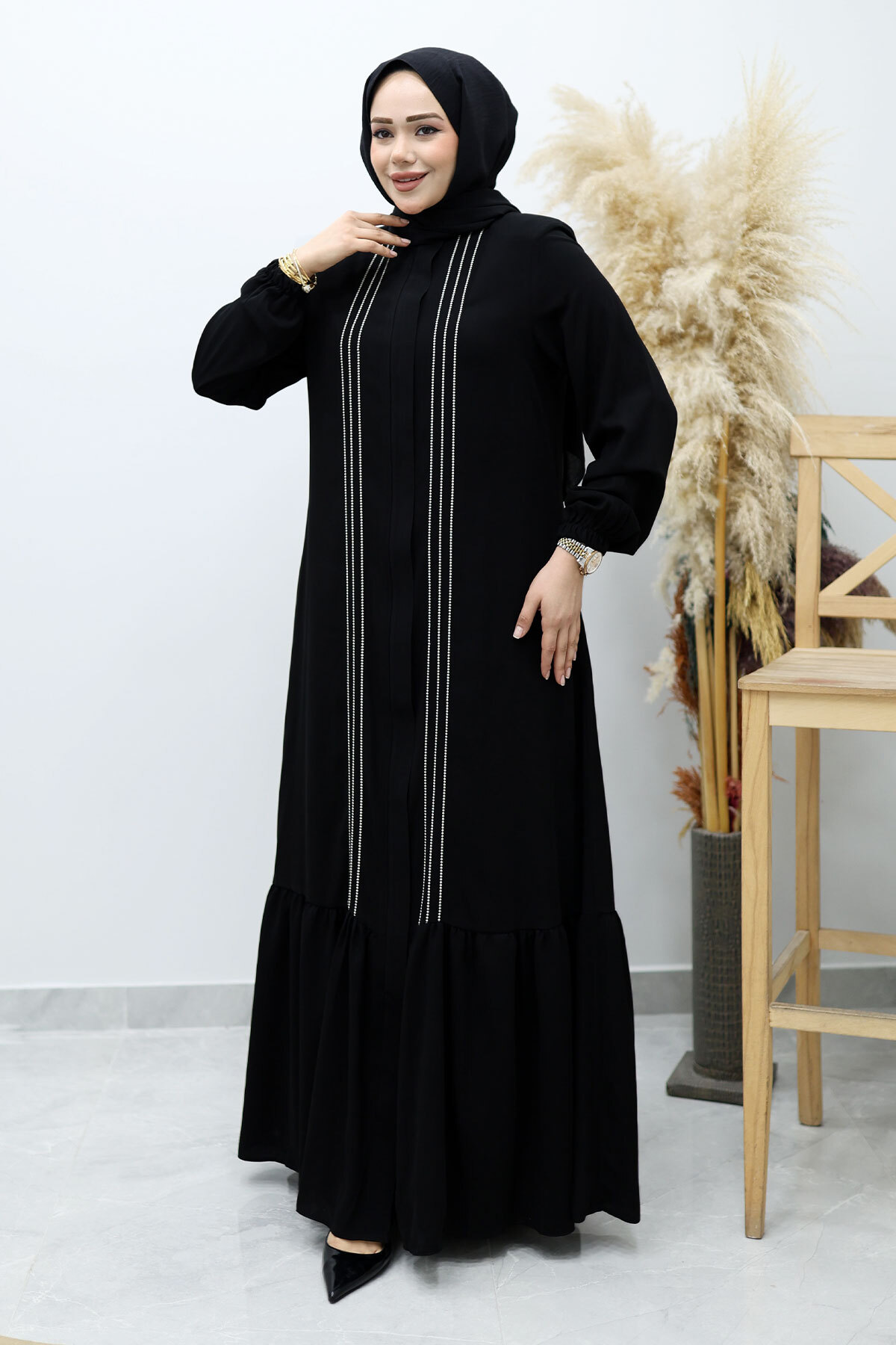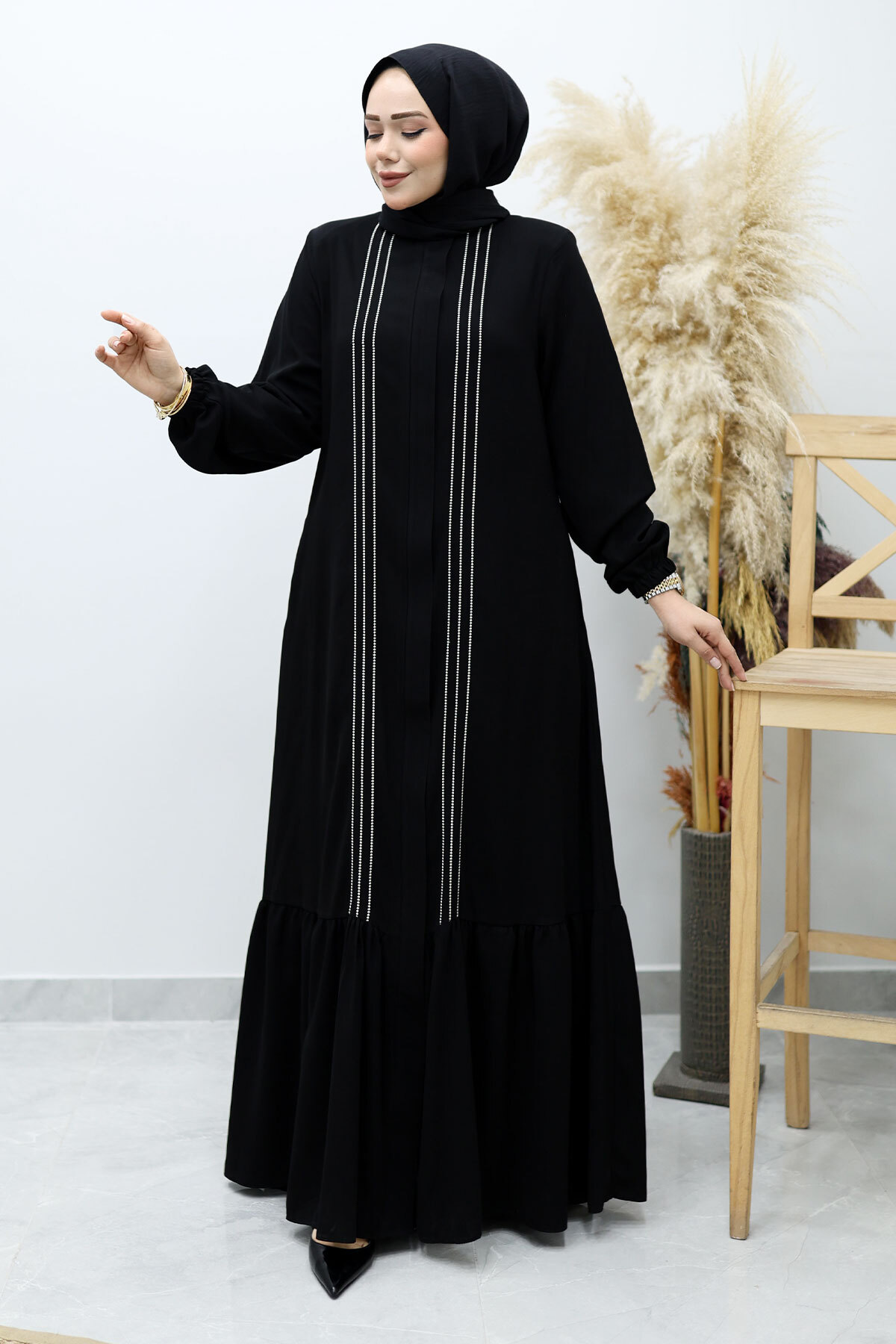 Önü Biyeli Volanlı Tesettür Ferace TSD260143 Siyah Özellikleri