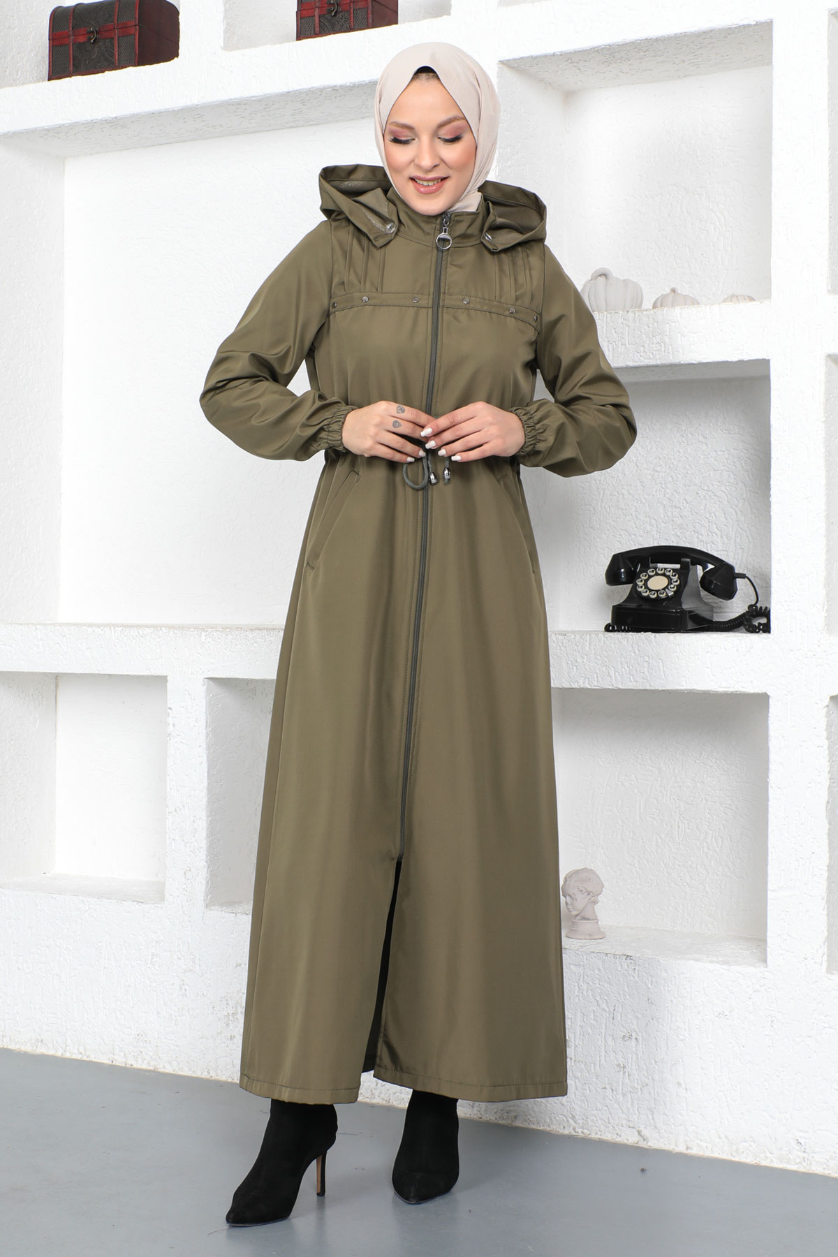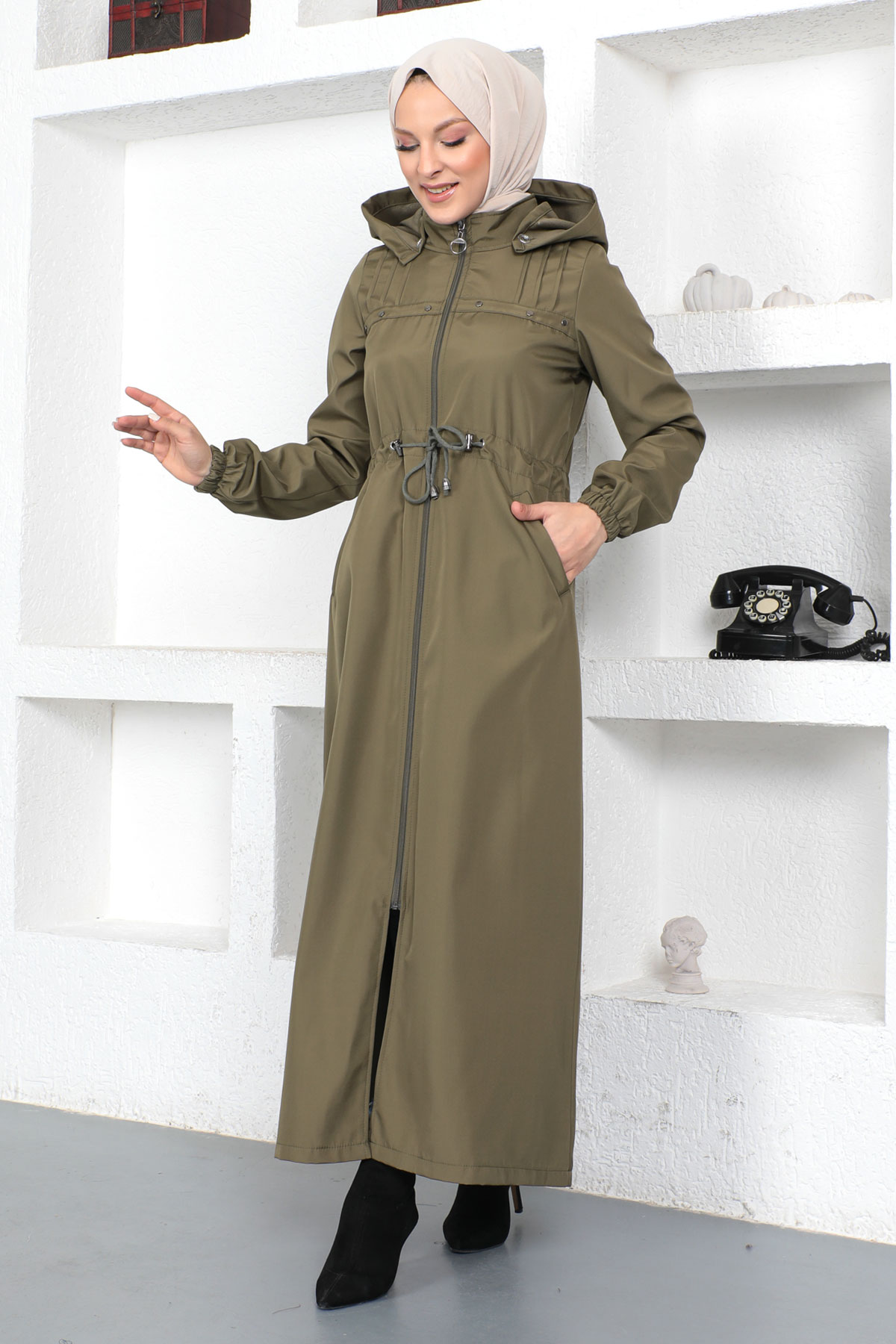 Önü Çakımlı Tam Boy Trençkot TSD230402 Yeşil Özellikleri