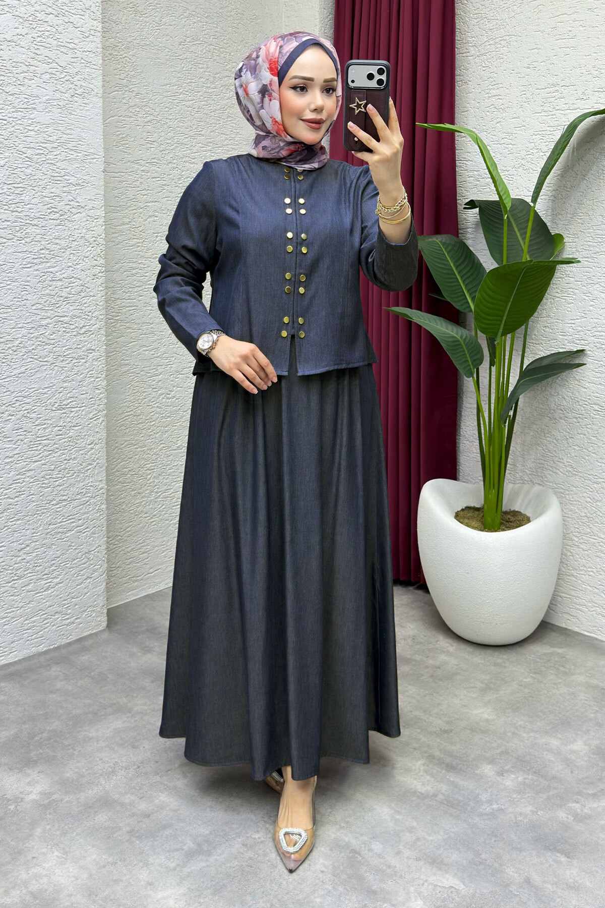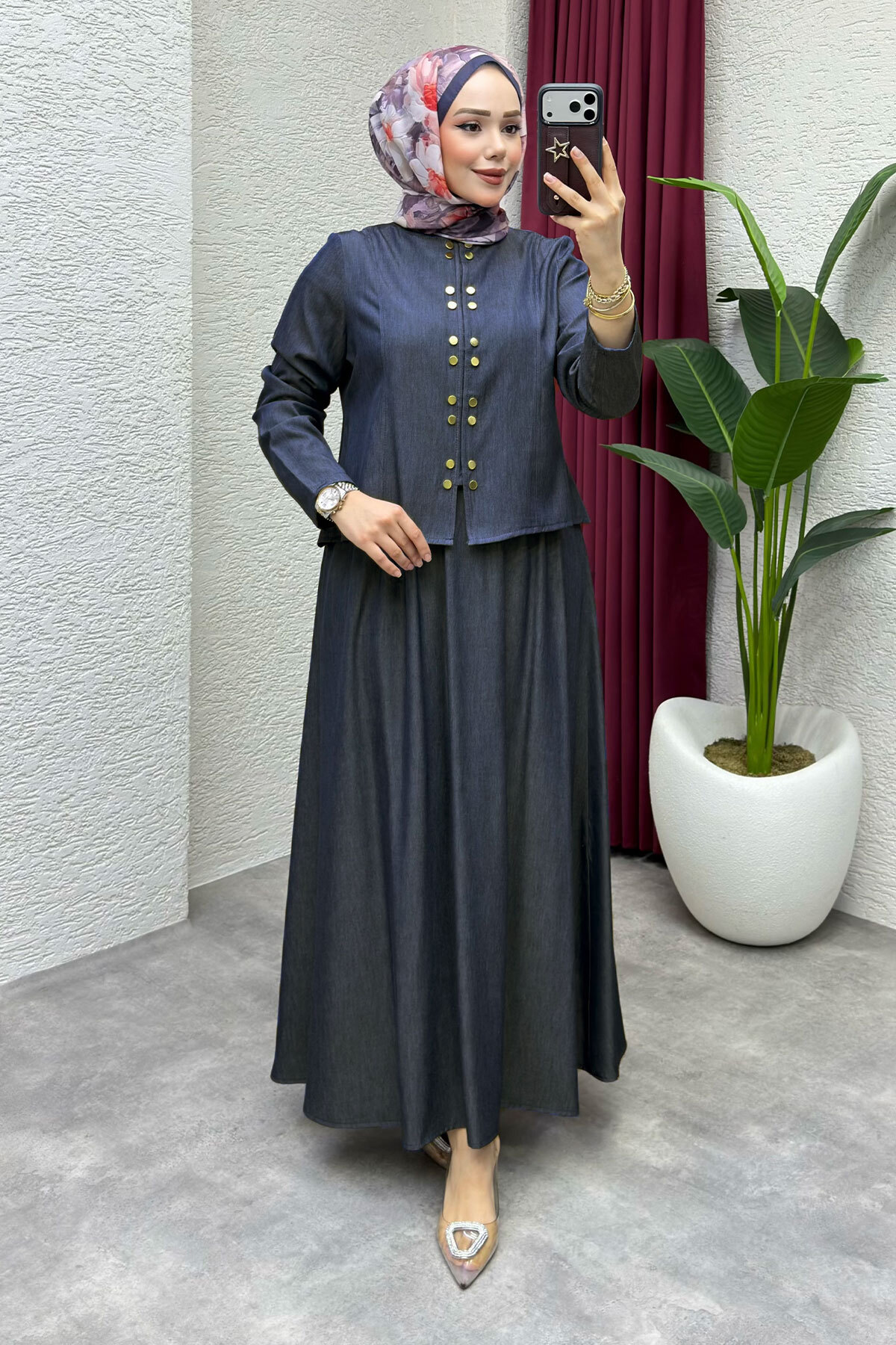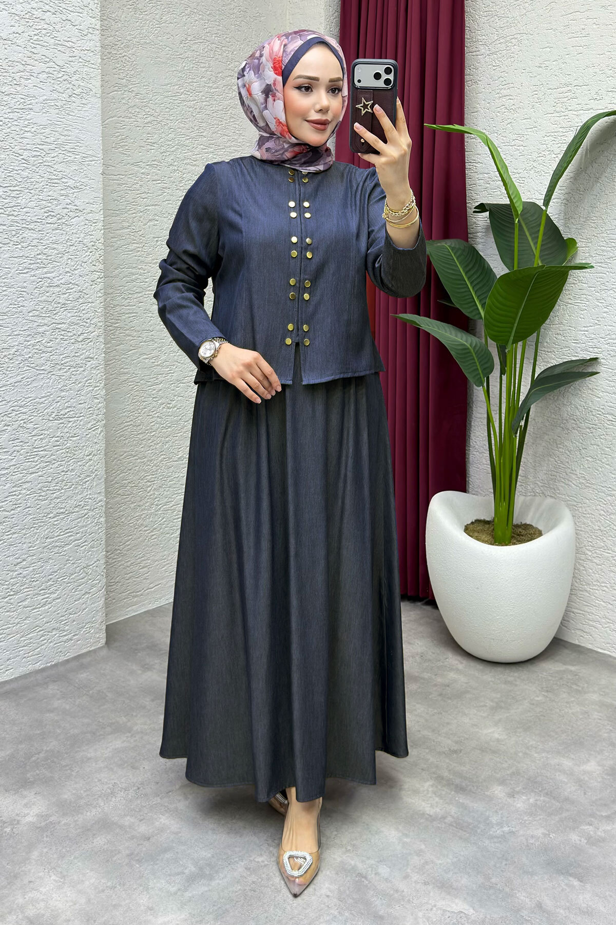Önü Çıtçıtlı Etekli Takım TSD260204 Koyu Mavi