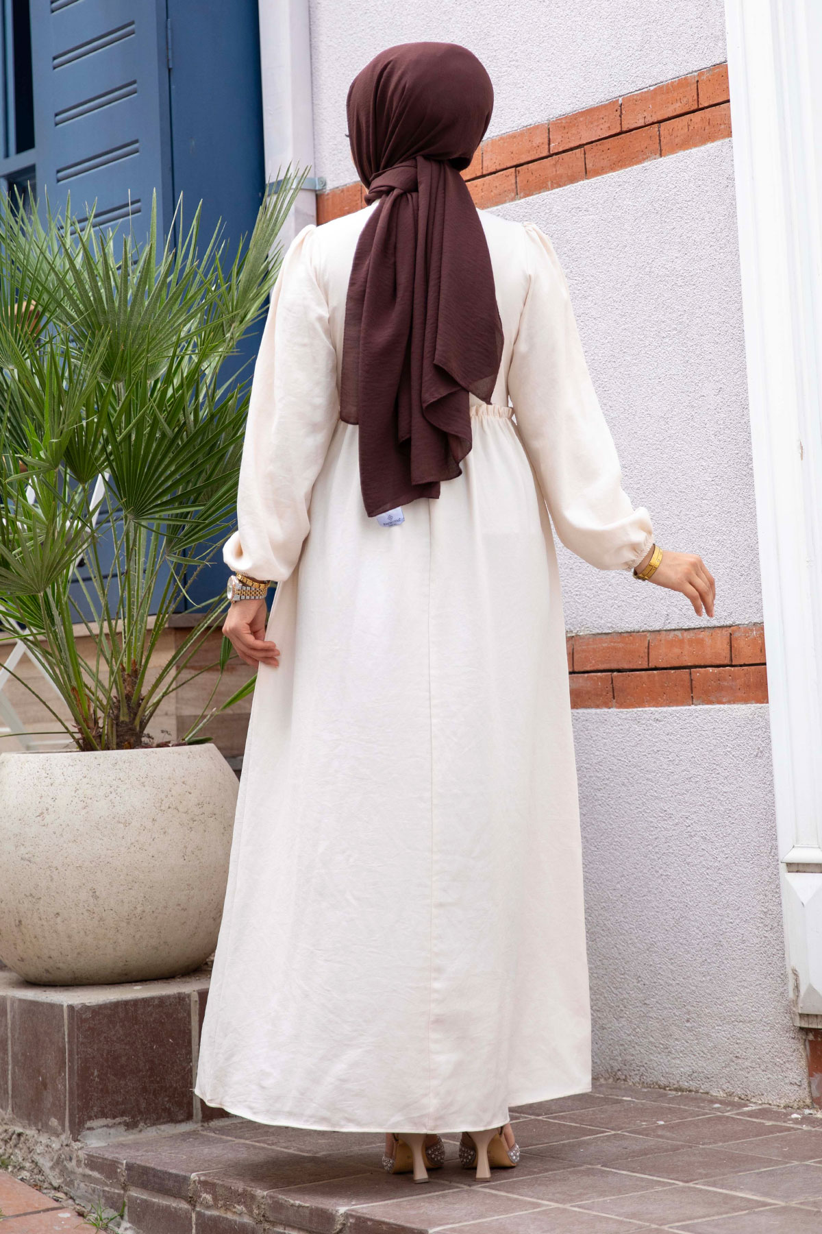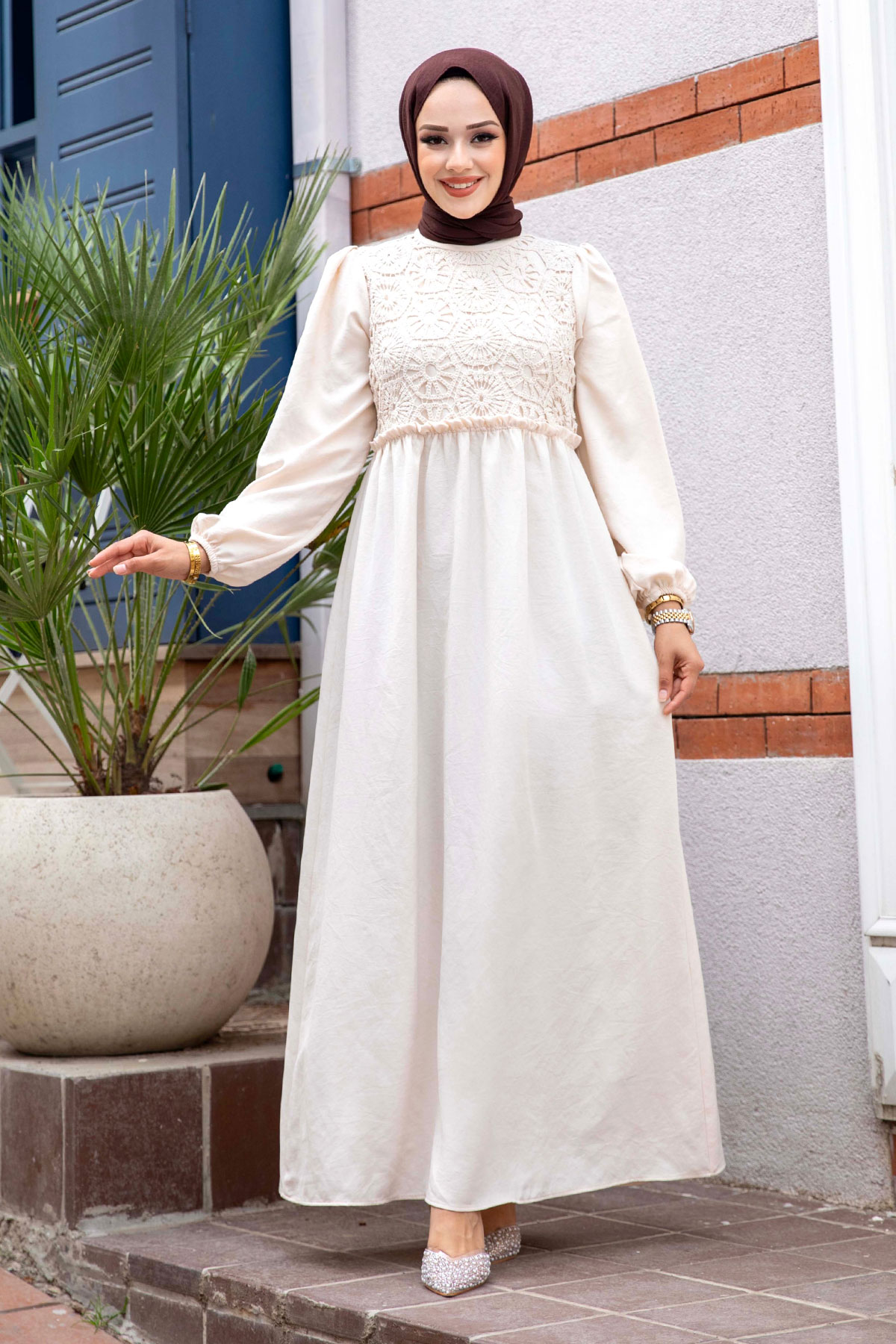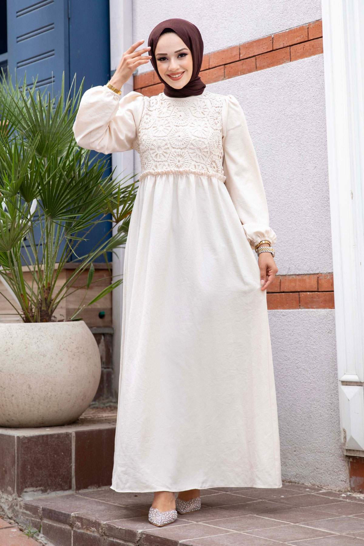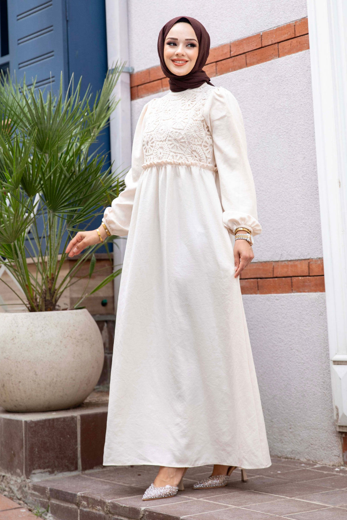 Önü Dantel Detaylı Tesettür Elbise TSD240519 Krem Özellikleri