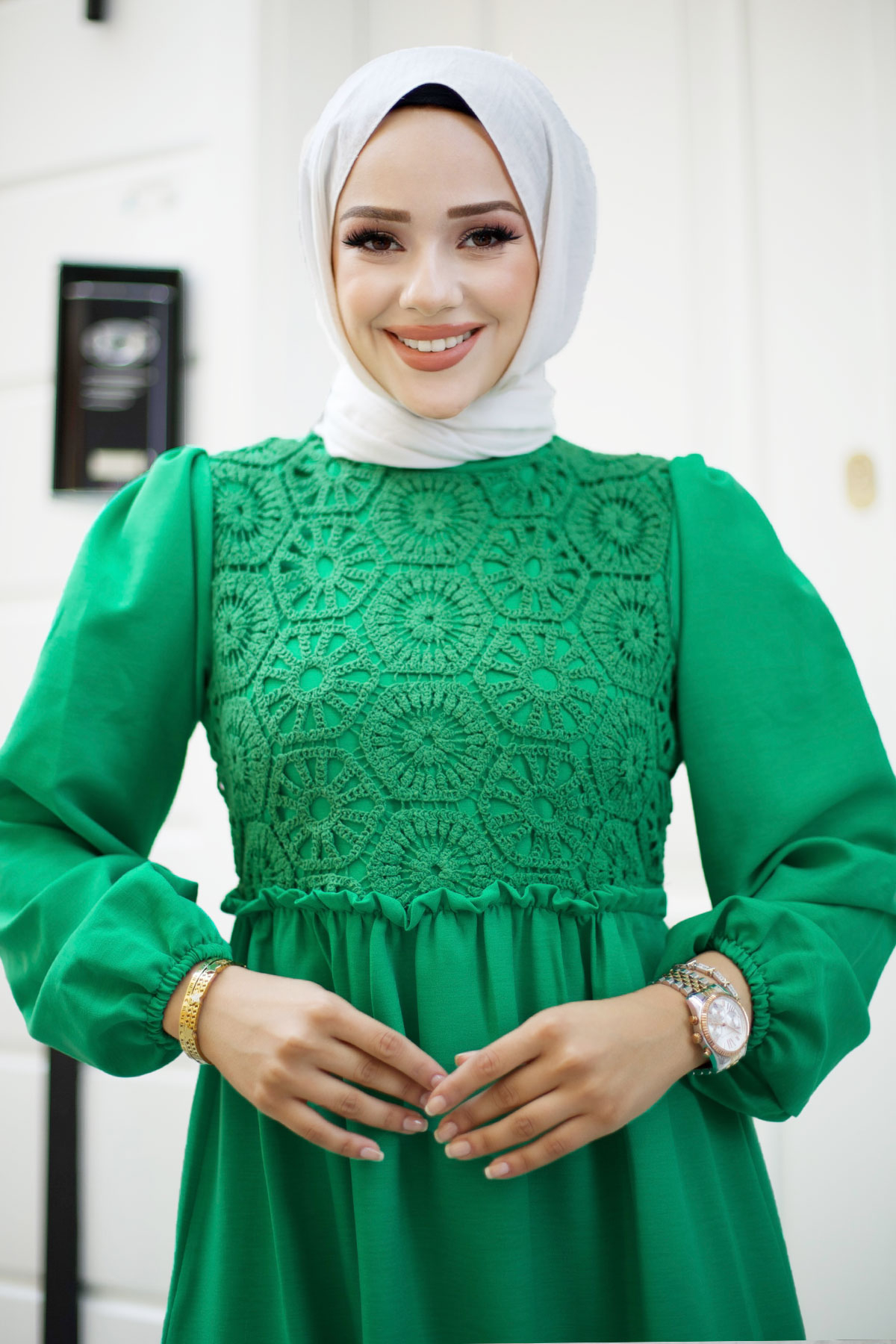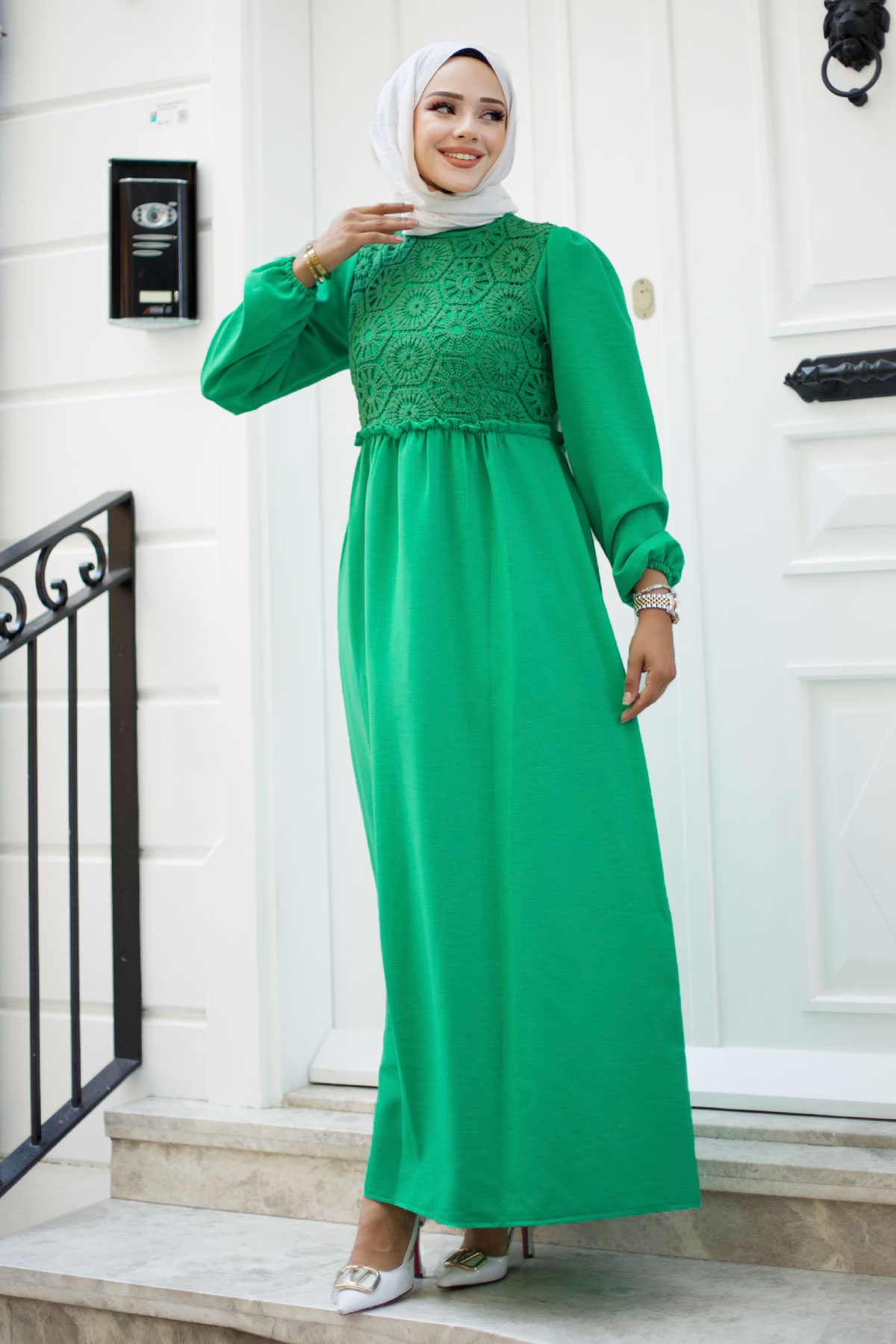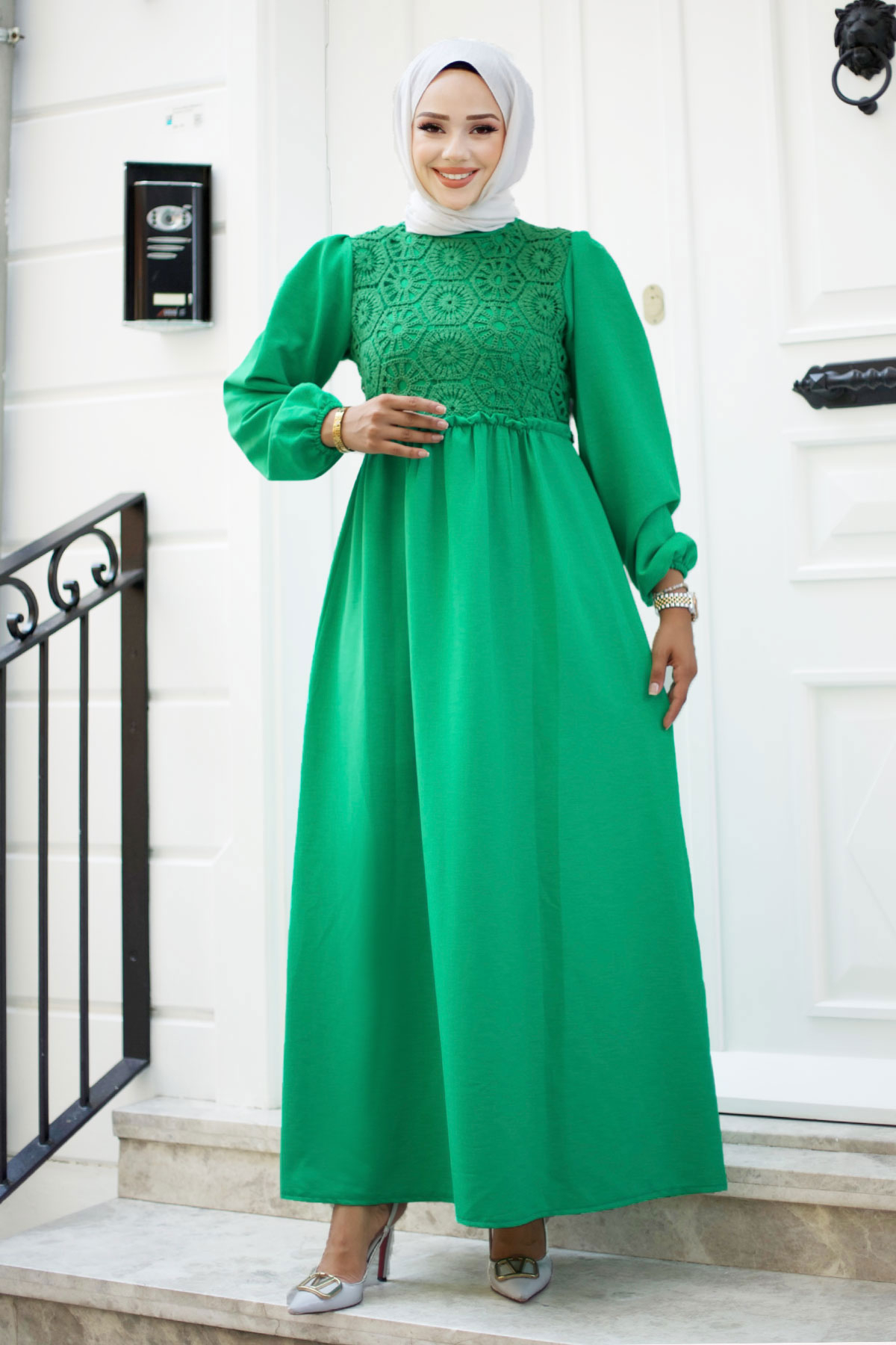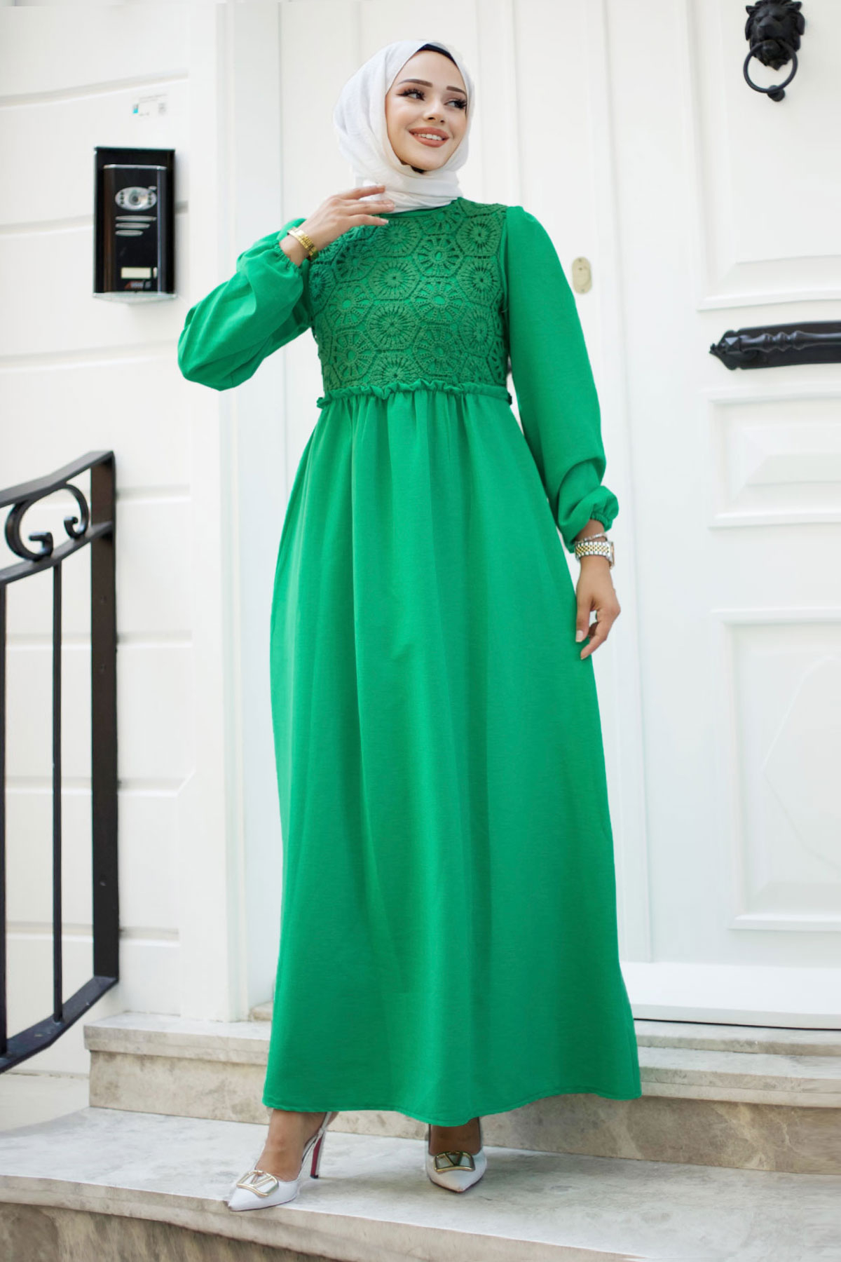 Önü Dantel Detaylı Tesettür Elbise TSD240519 Yeşil Özellikleri