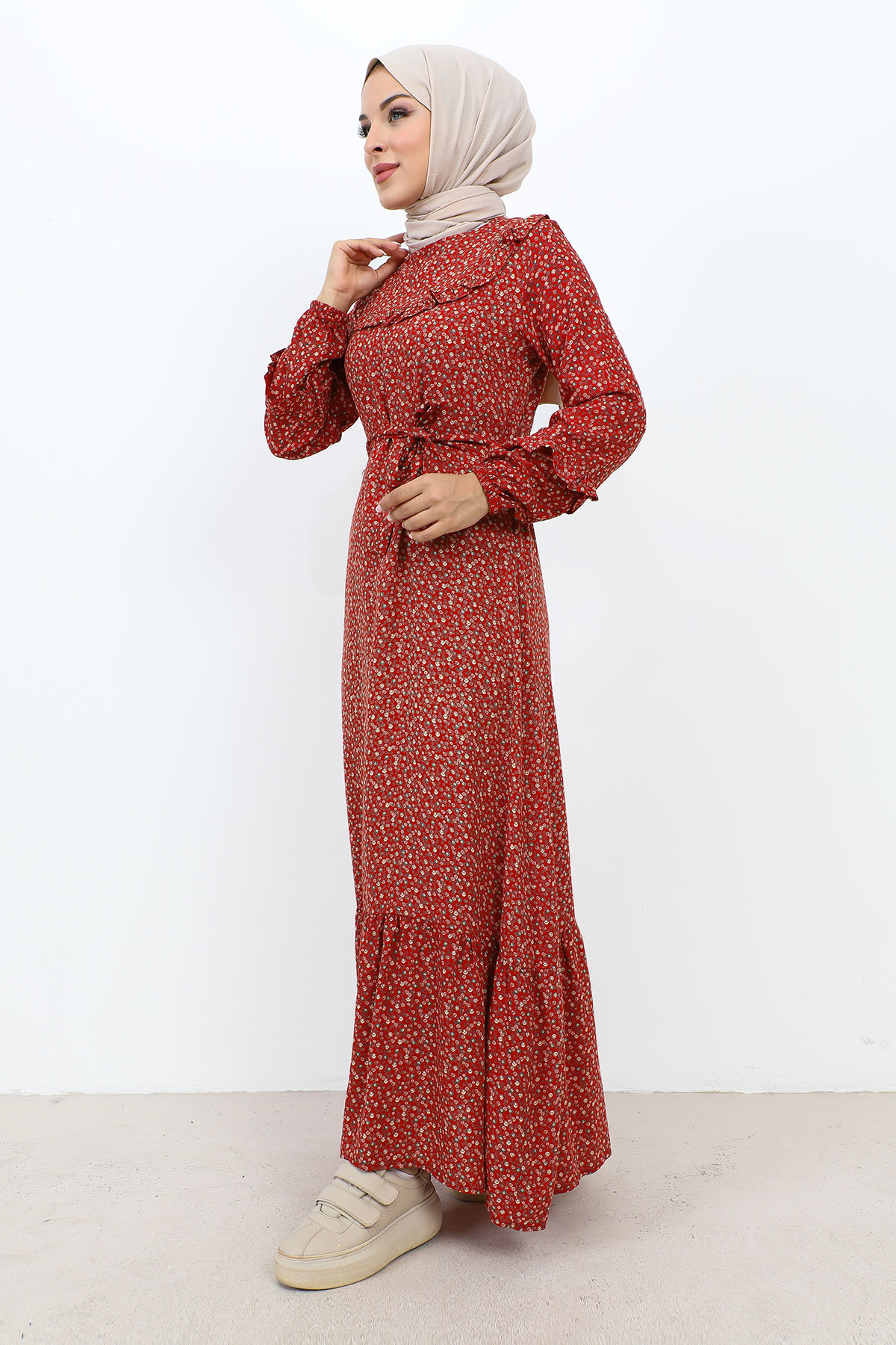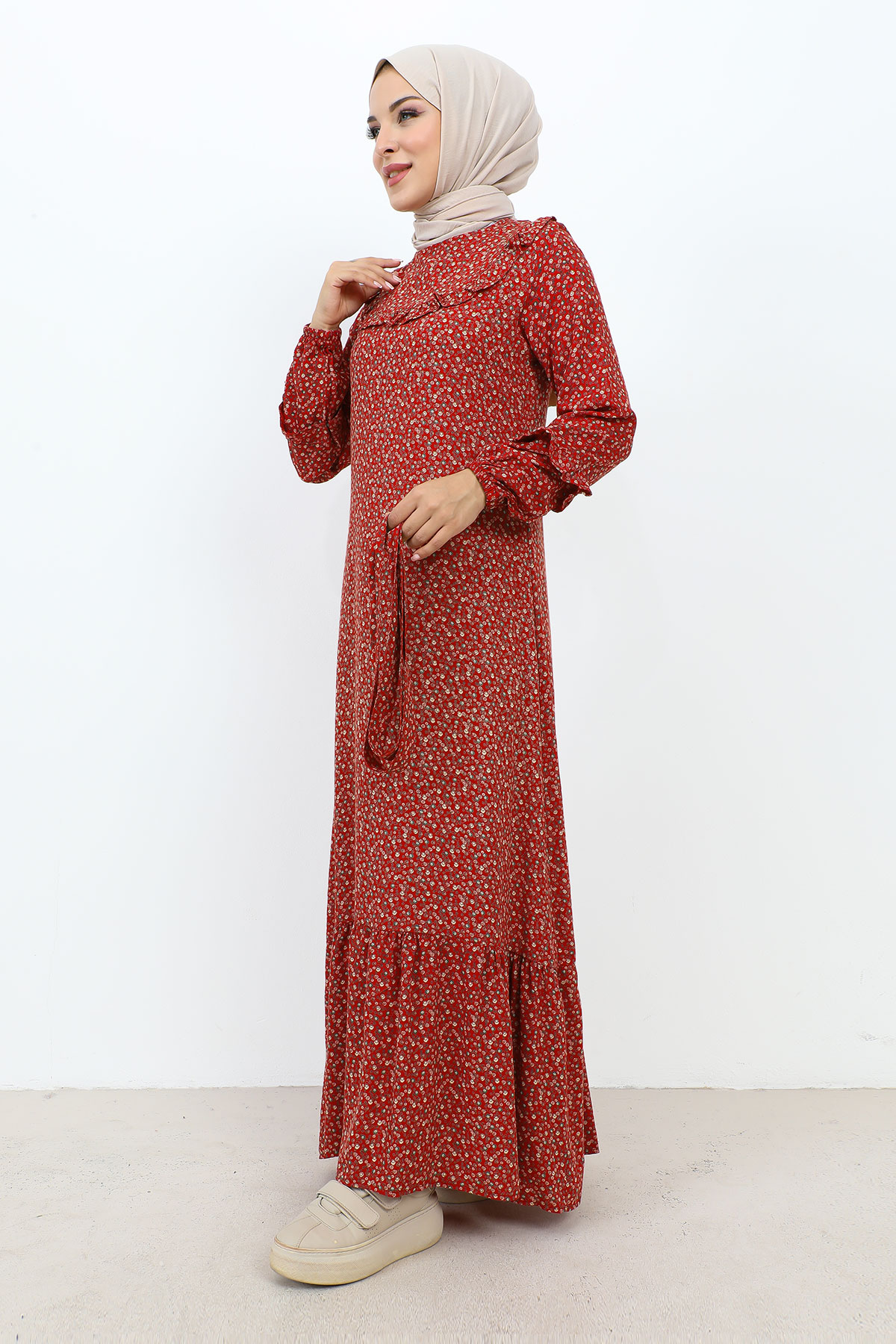 Ürün Özelliği : Yeni sezon Önü Fırfır Detaylı Viskon Elbise. Kol ucu lastiklidir. Astarsızdır. Eteği volanlıdır. Önünde ve kollarında fırfır detayı bulunmaktadır. Beli kuşaklıdır. Arkada fermuarı mevcttur. Ürün renginde konsept çekimlerinden dolayı ton farklılığı olabilir