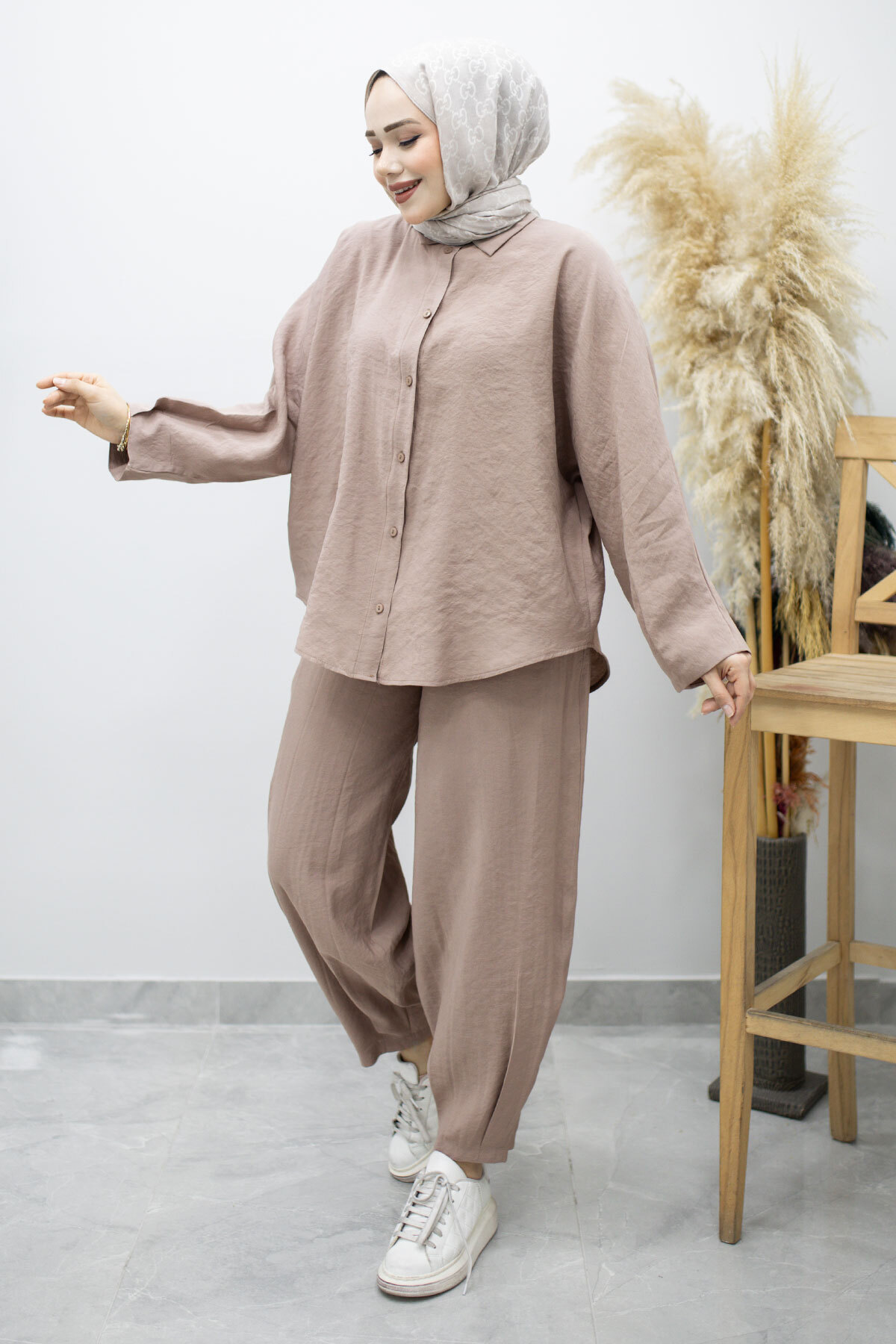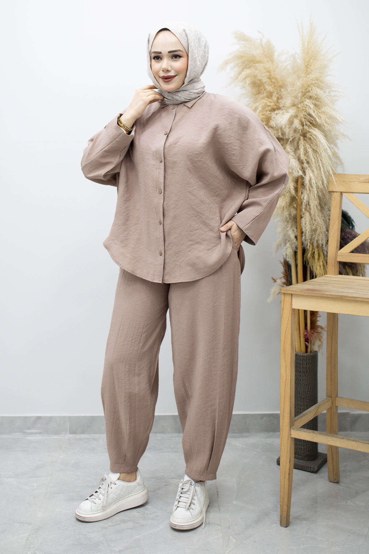 Ürün Özelliği : Yeni sezon Kolu Düğme Detaylı Büzgülü İkili Takım modelidir.
