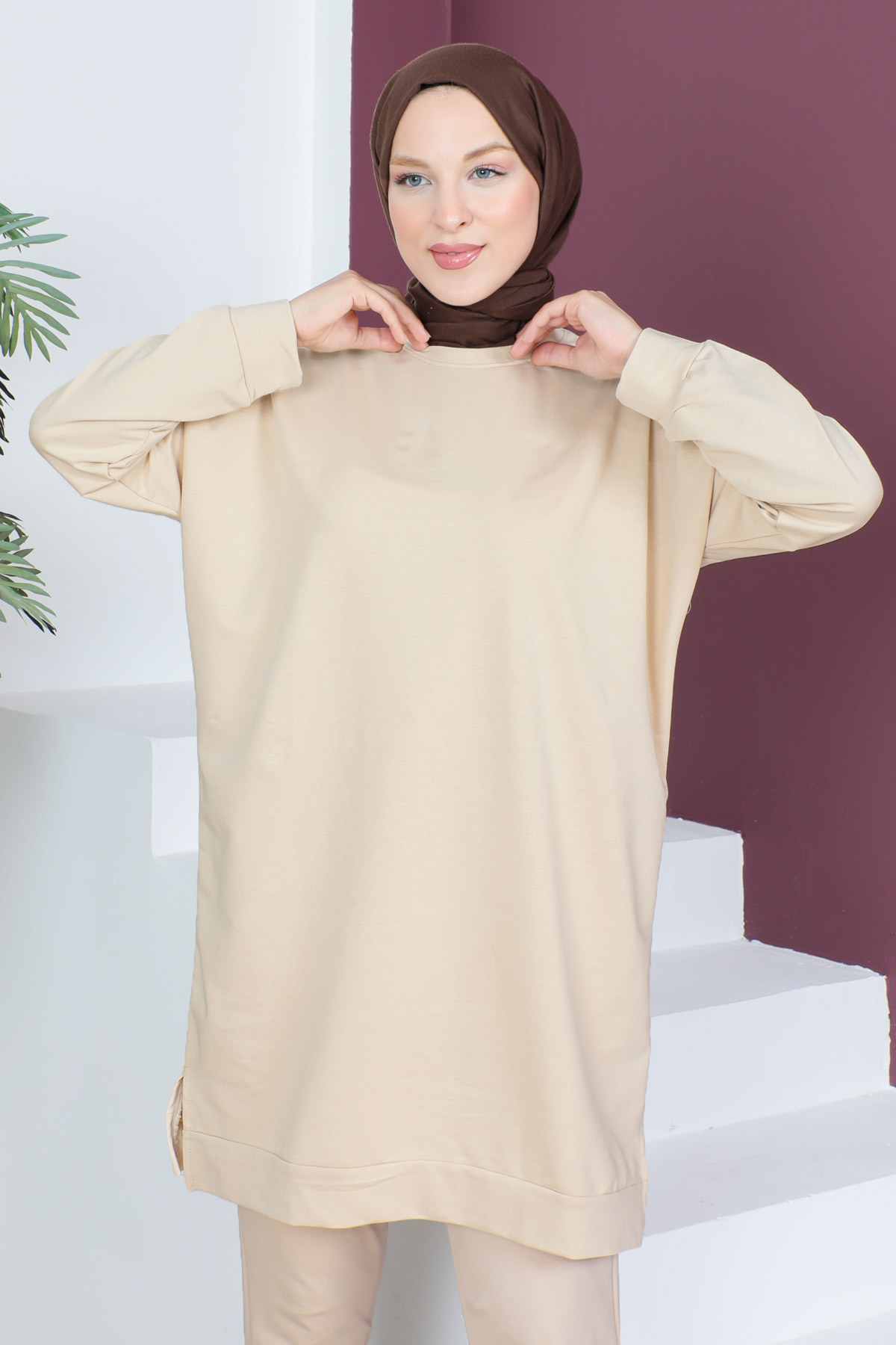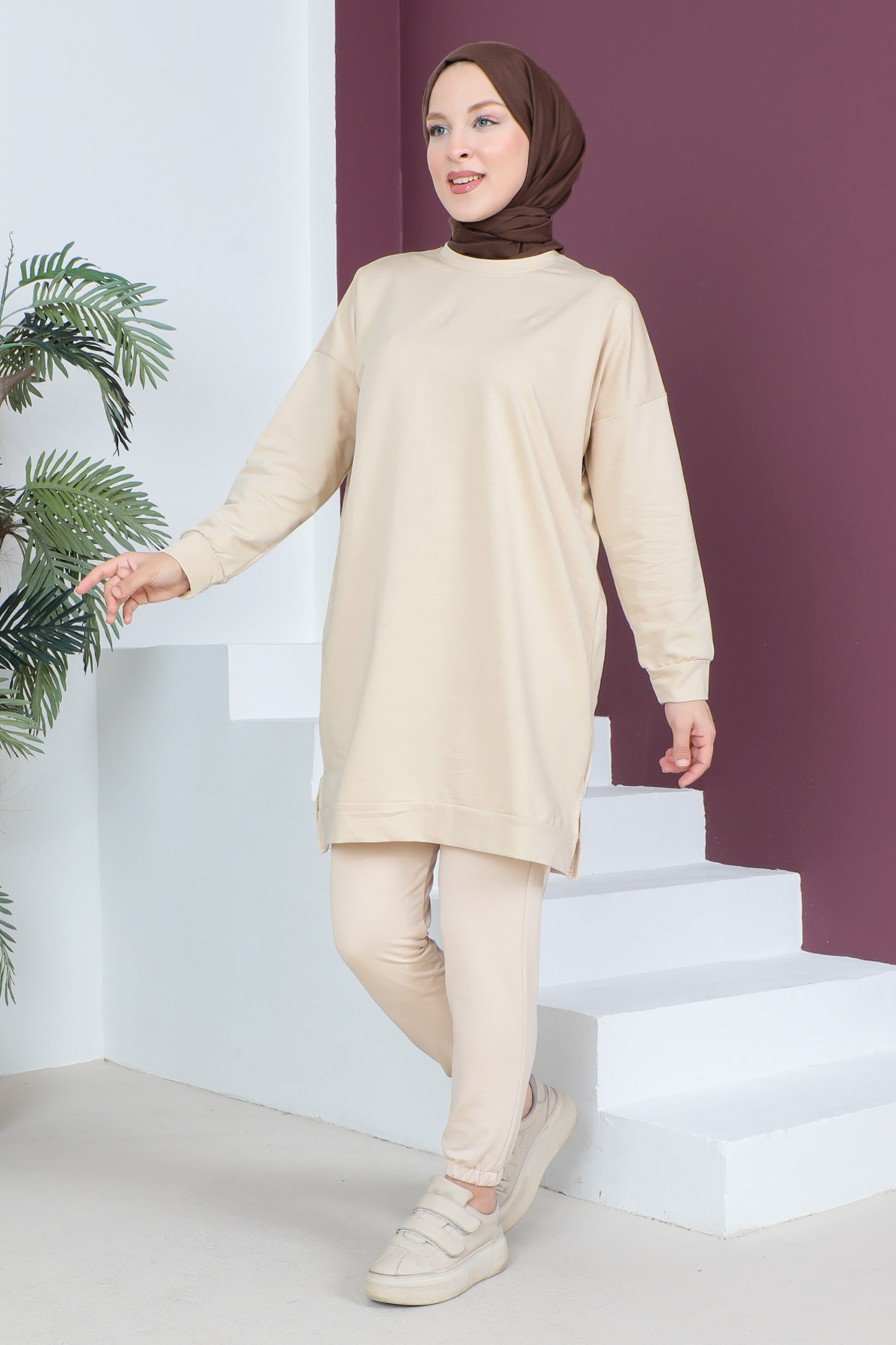 Paçası Lastikli İkili Takım TSD230538 Bej Özellikleri