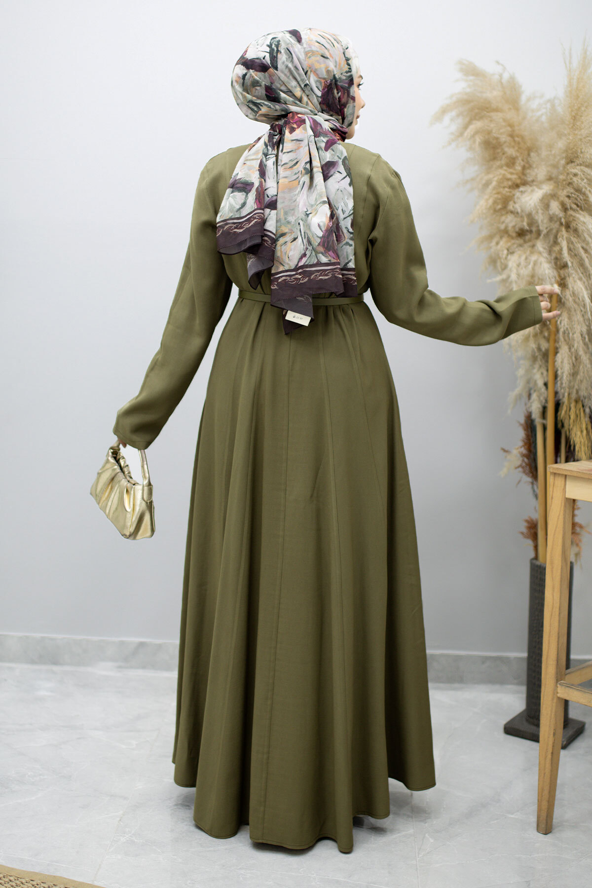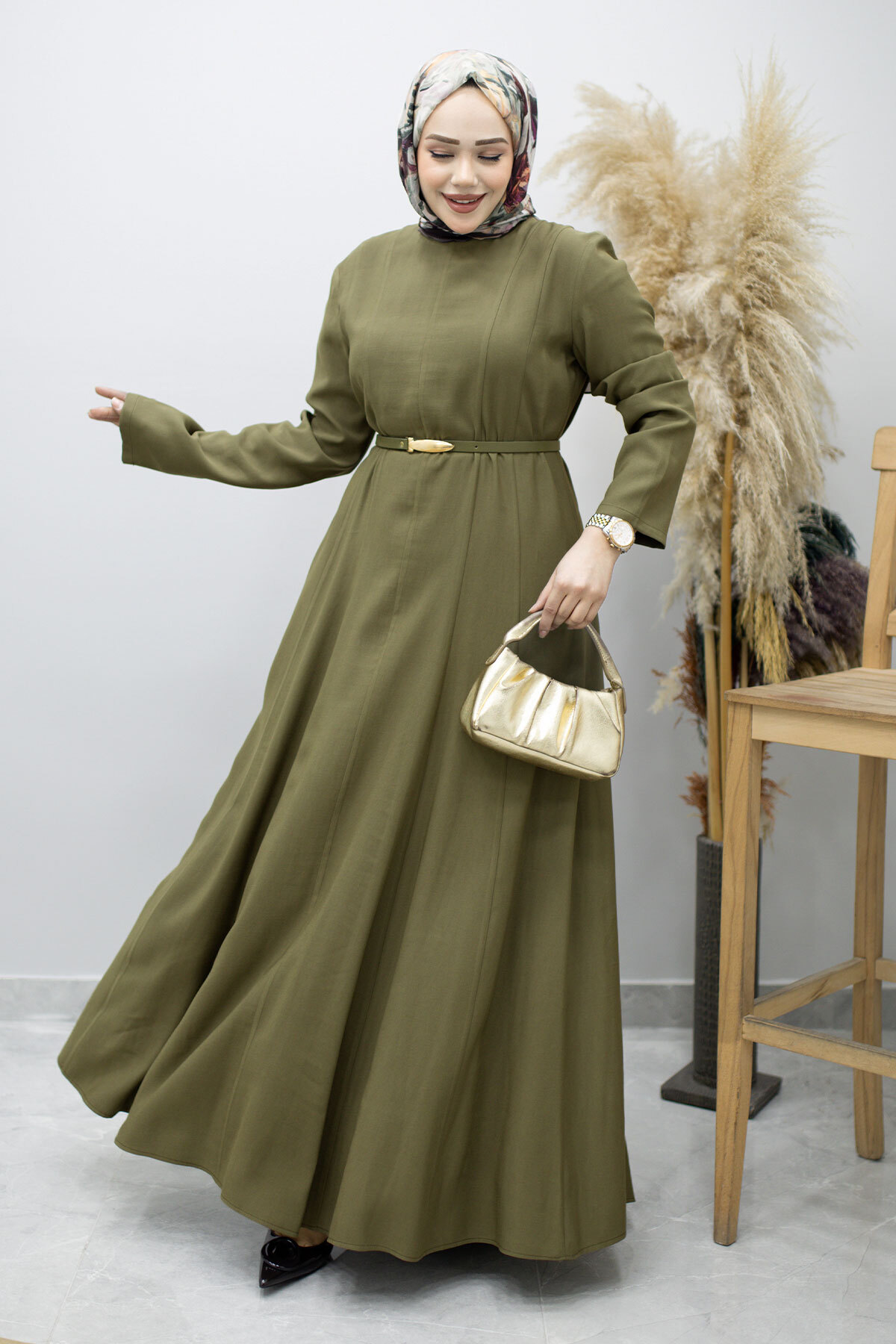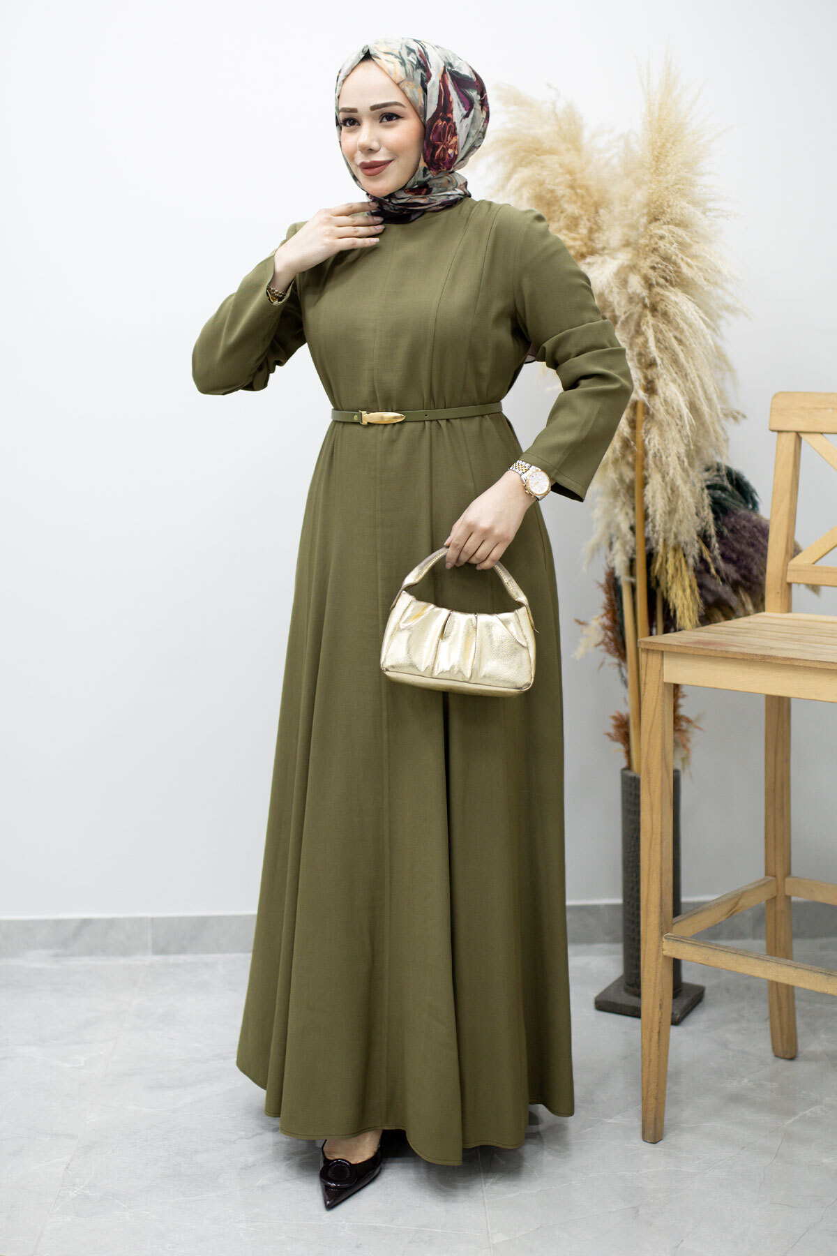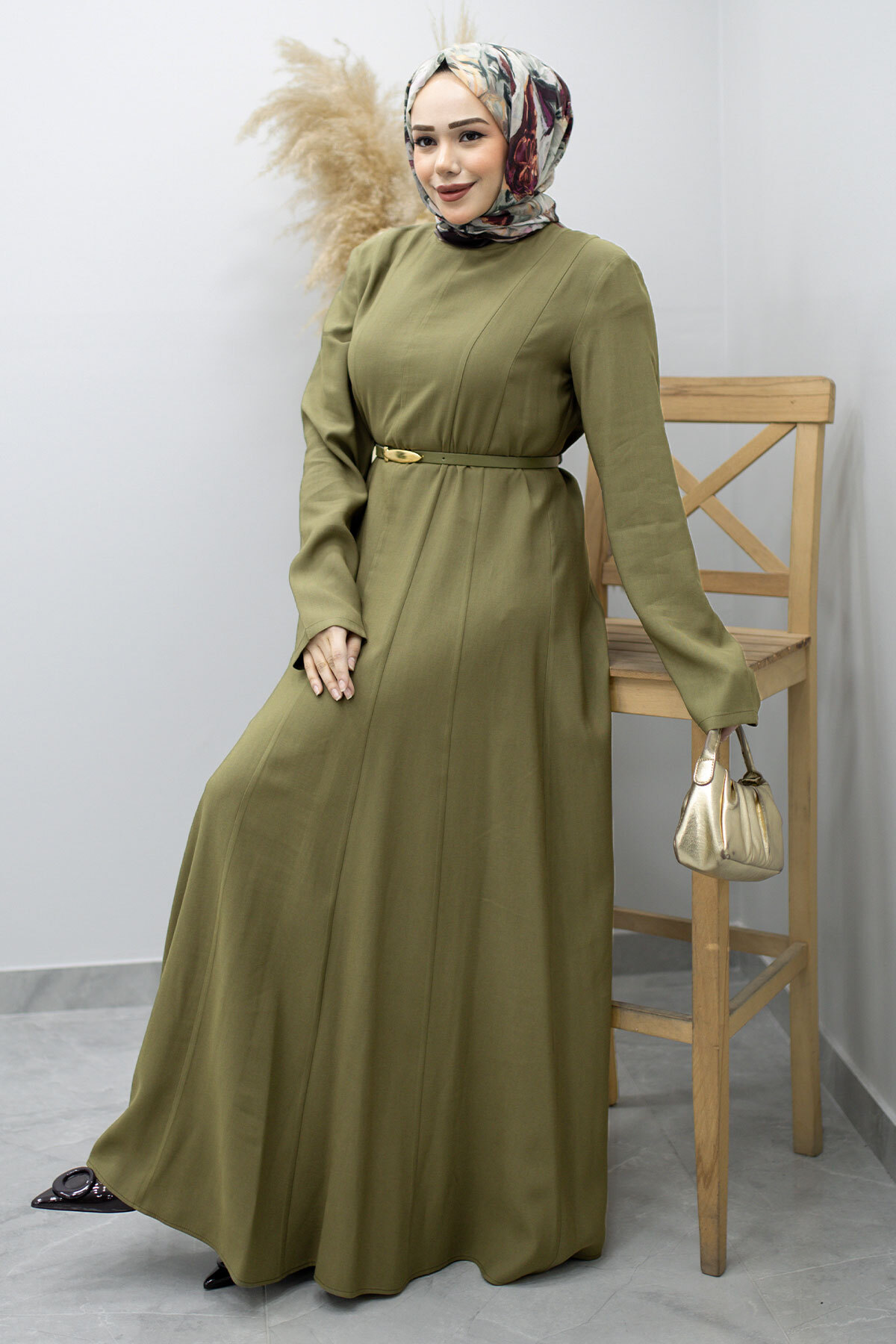 Pensli Hakim Yaka Kemerli Elbise TSD260184 Haki Özellikleri