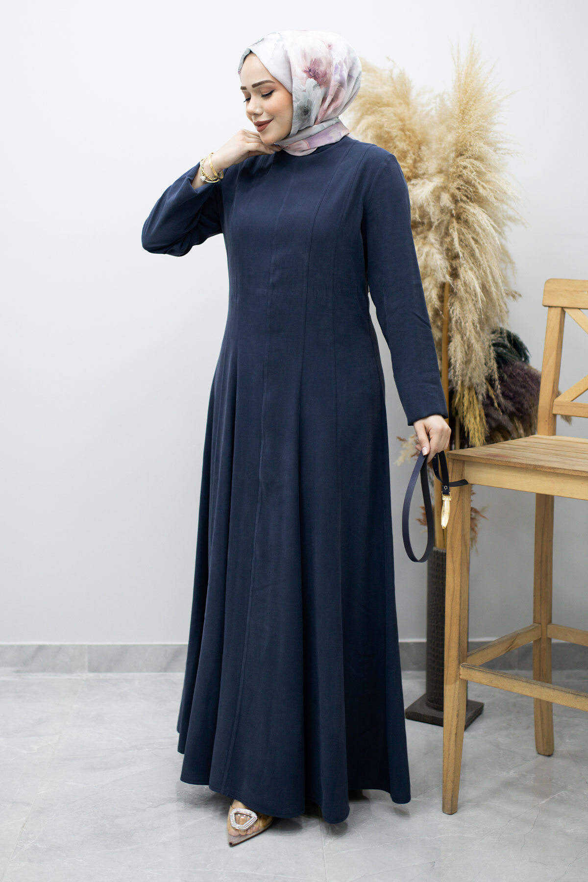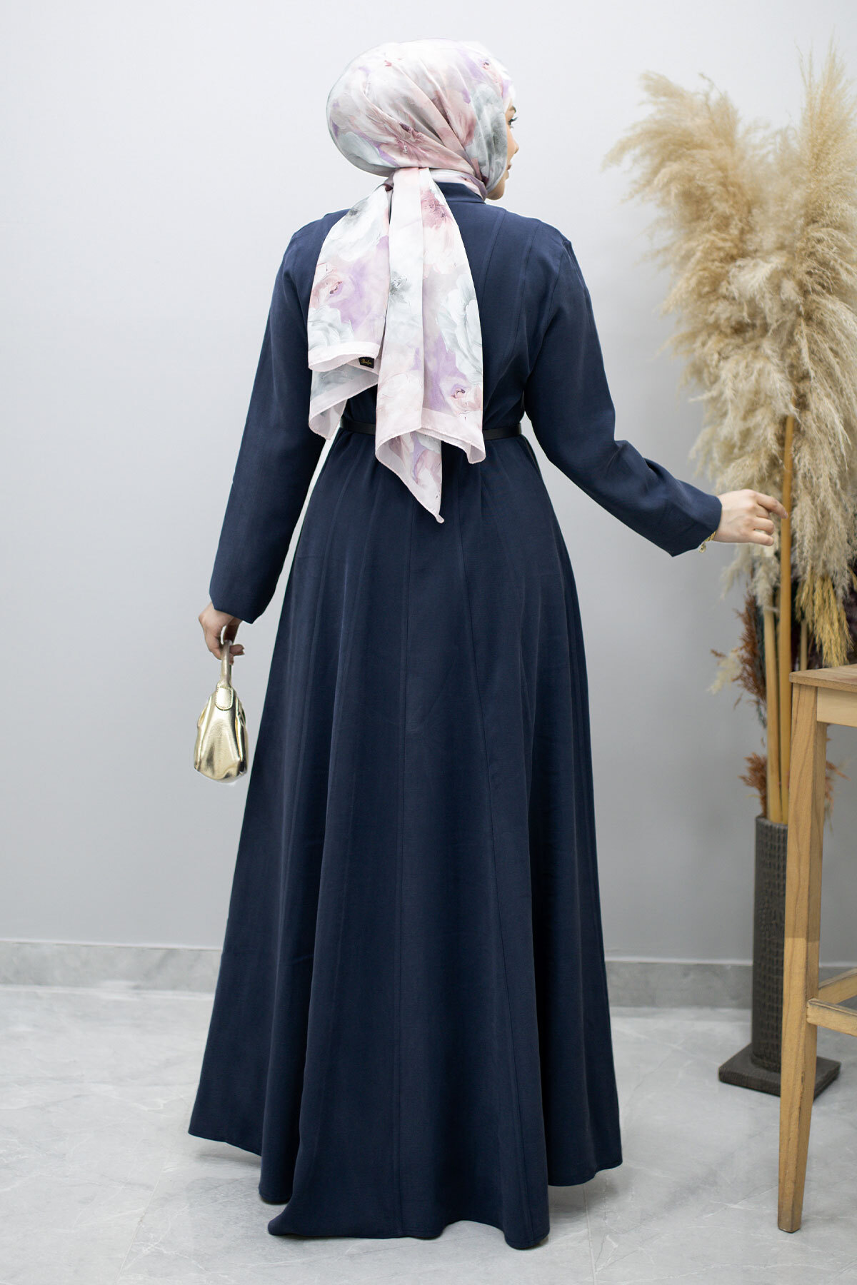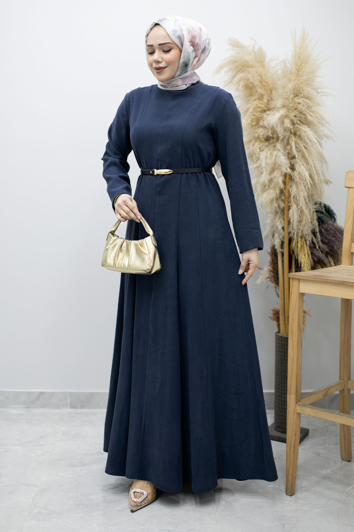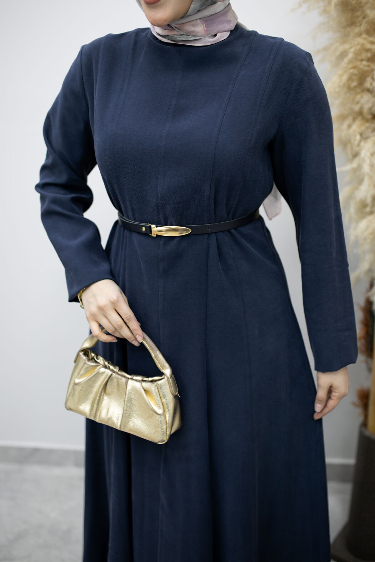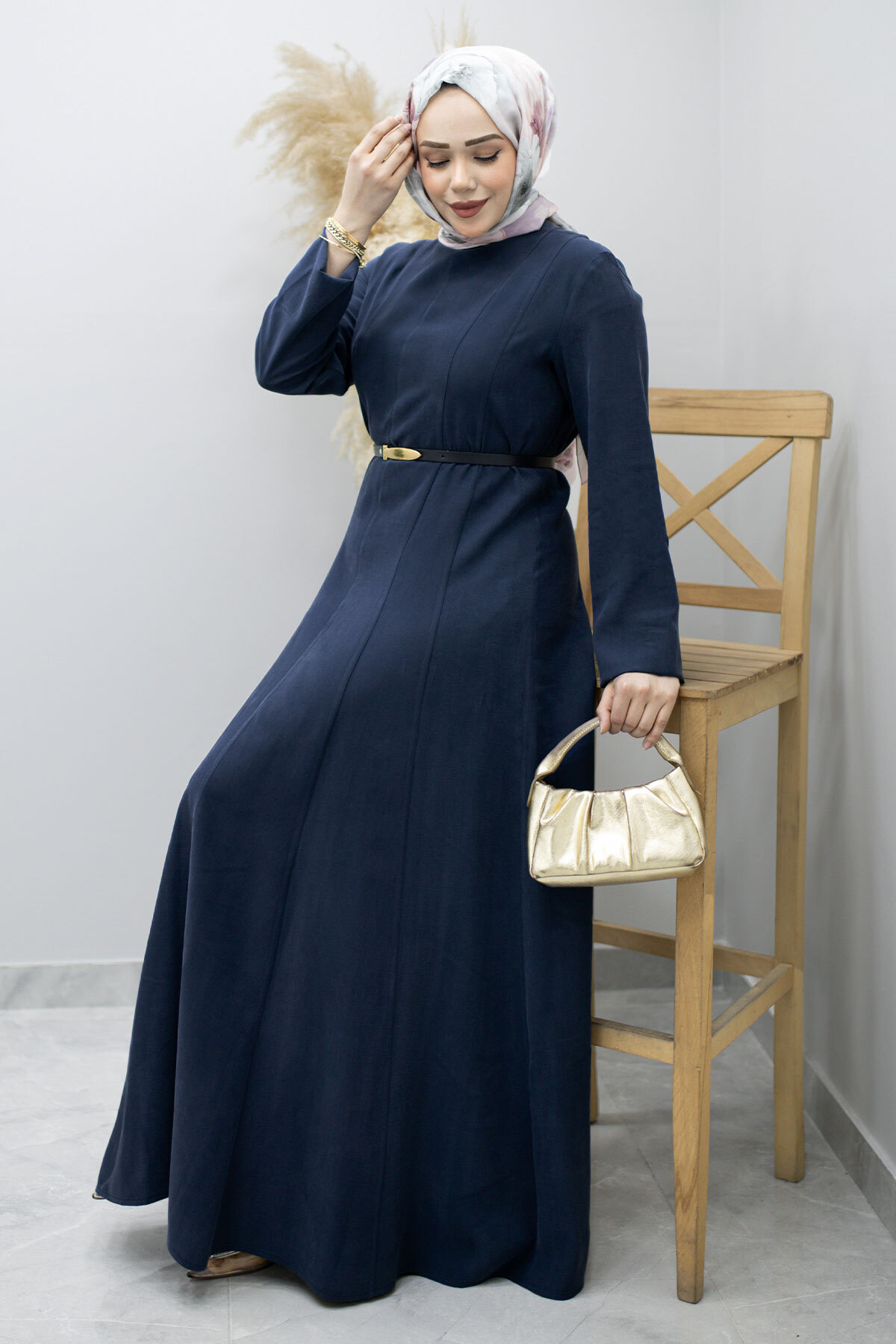 Pensli Hakim Yaka Kemerli Elbise TSD260184 Lacivert Özellikleri