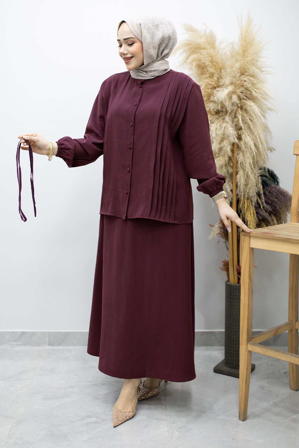 Ürün Özelliği : Yeni sezon Piliseli Bağlamalı Etekli Takım modelidir.