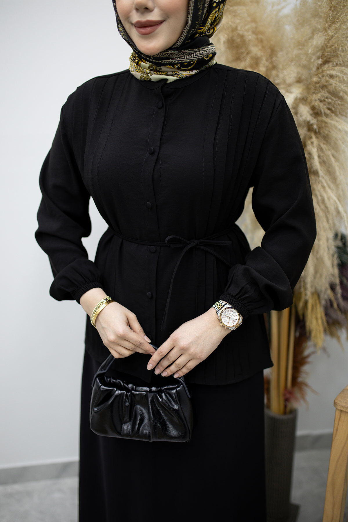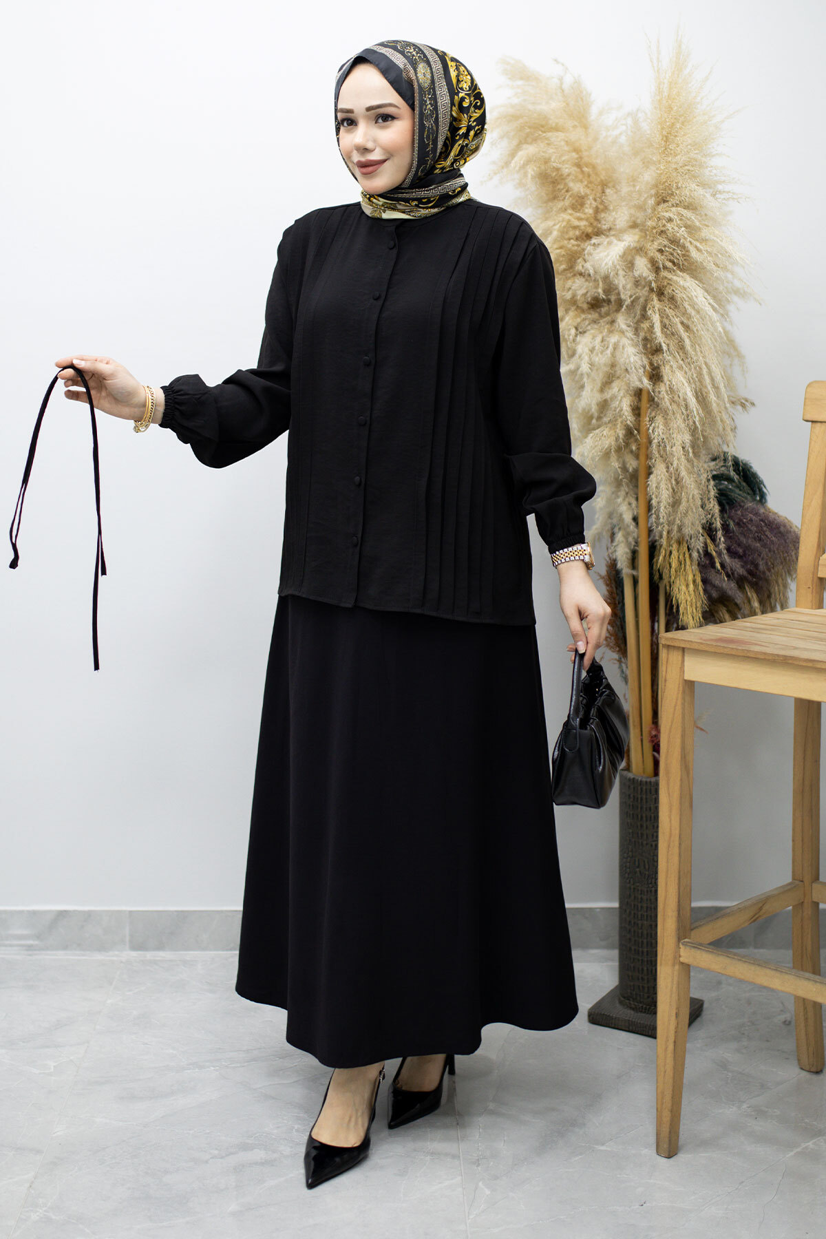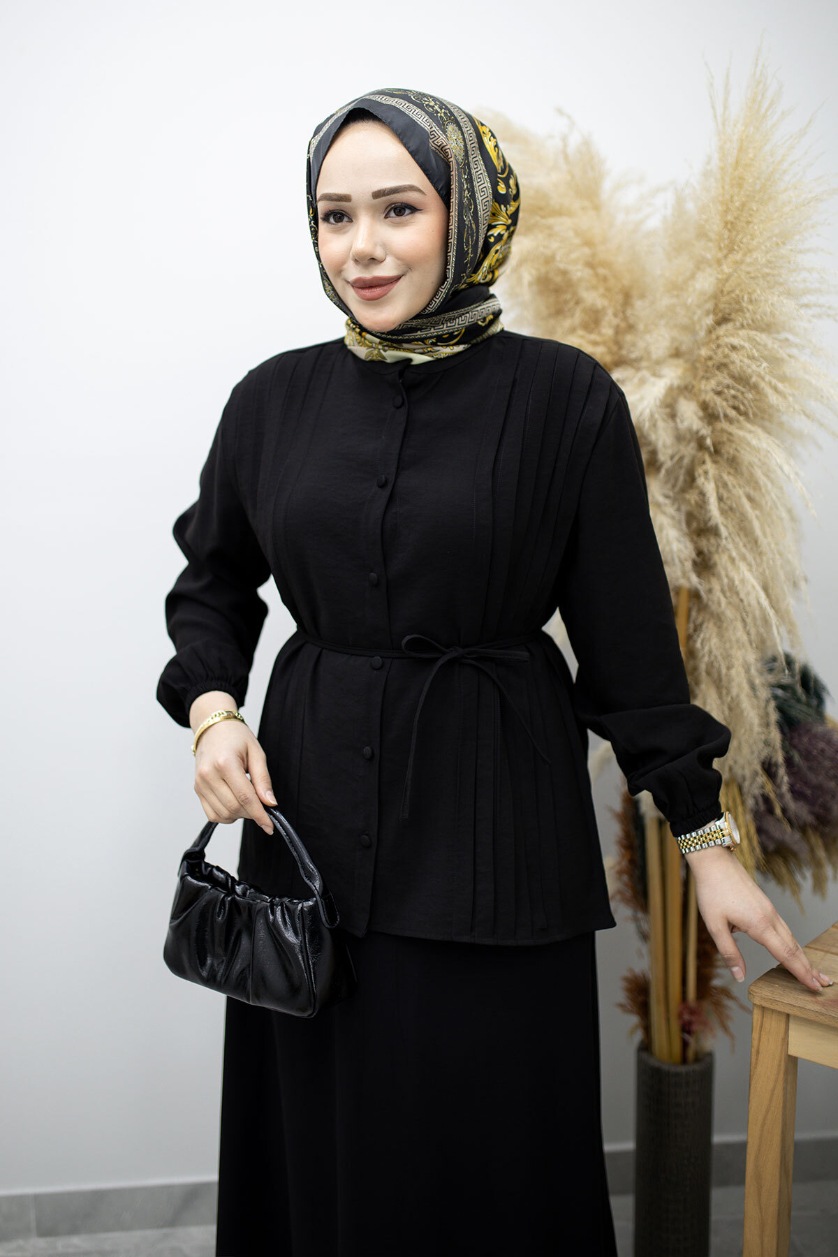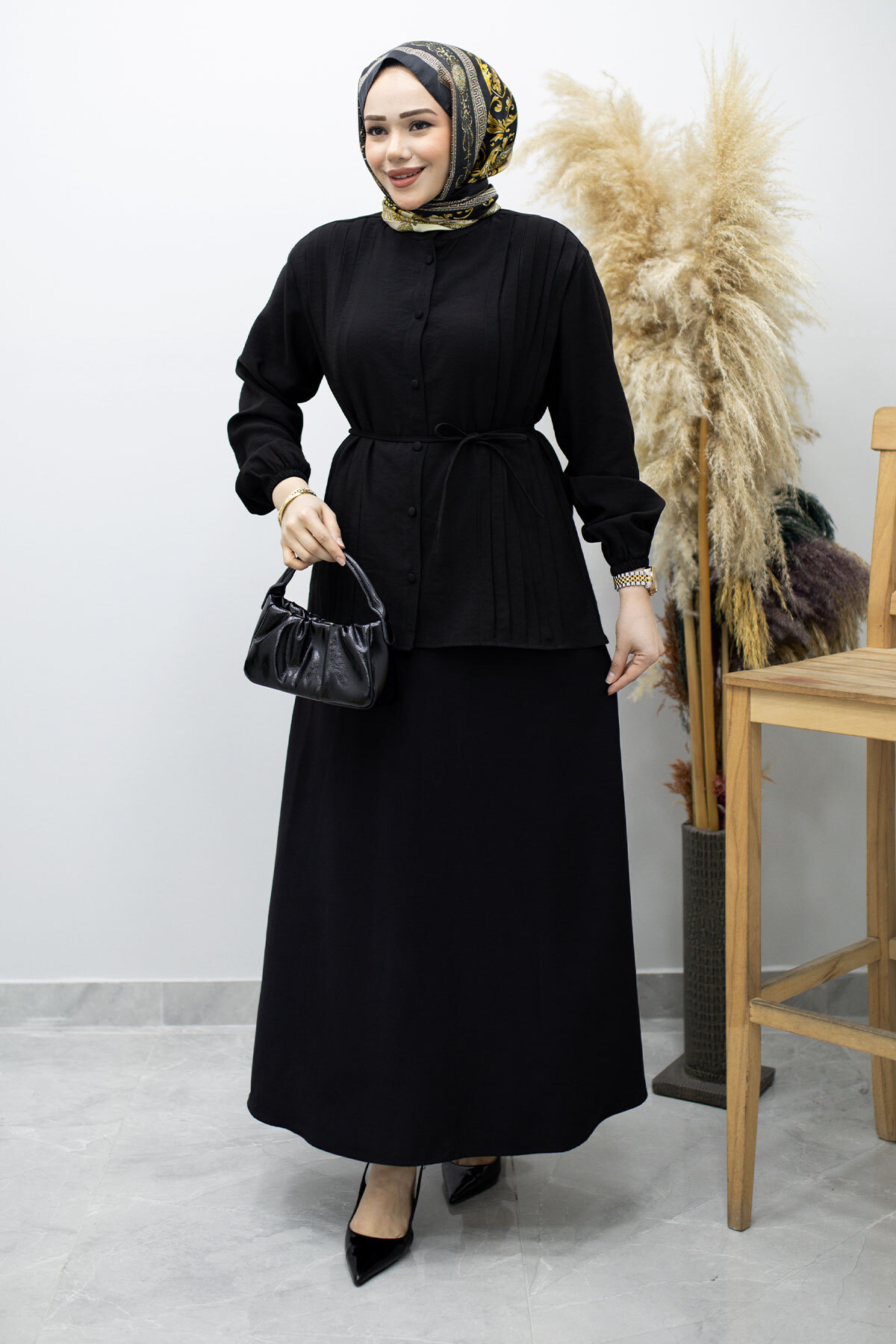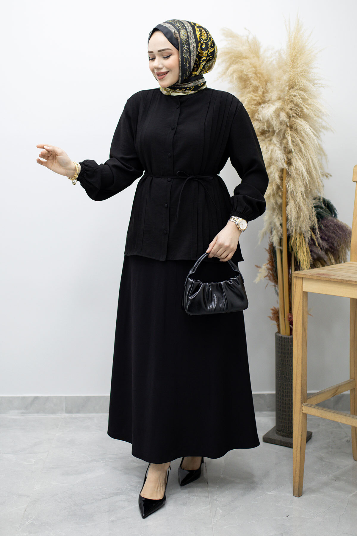 Piliseli Bağlamalı Etekli Takım TSD260173 Siyah Özellikleri