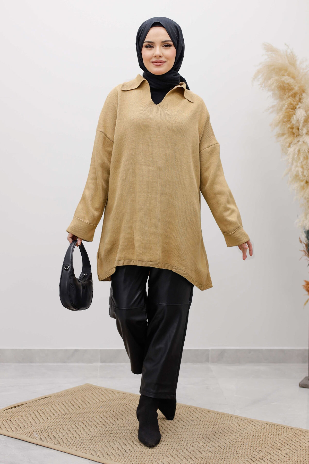 Polo Yaka Triko Tunik TSD260116 Camel Özellikleri
