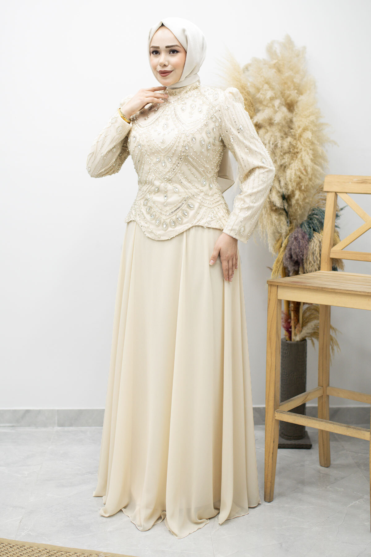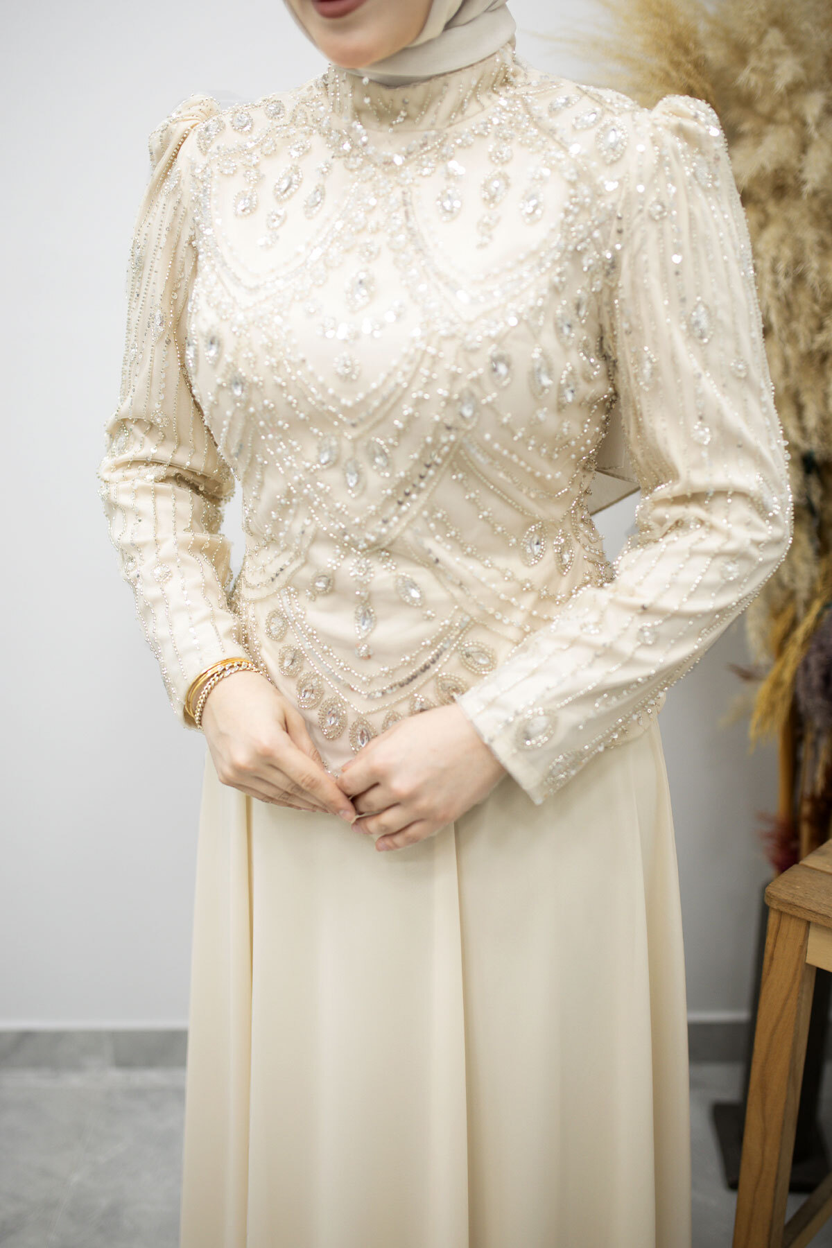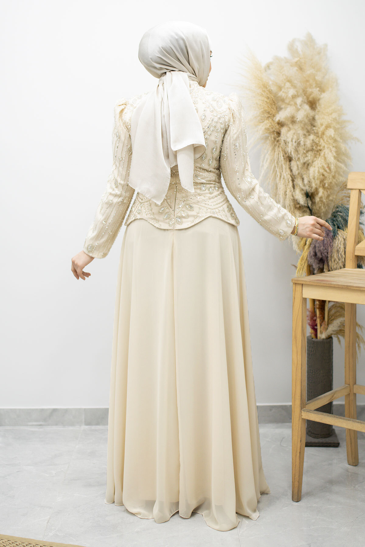Boncuk Ve Taş İşlemeli Tesettür Abiye TSD260197 BejÖzellikleri