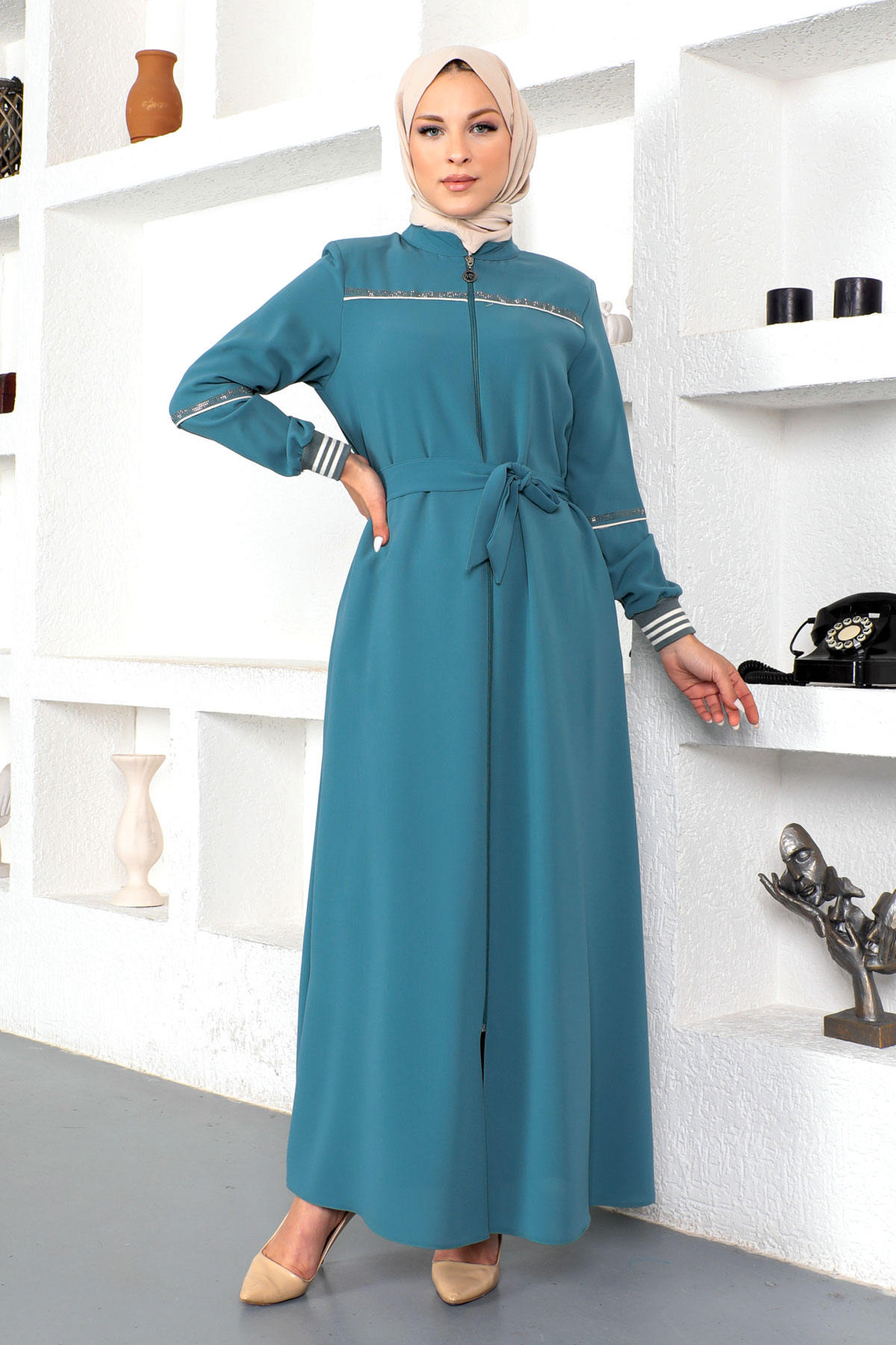 Ürün Özelliği : Yeni sezon Ribanalı Tesettür Ferace modelidir. Boydan fermuar ile açılmaktadır. Kemeri çıkarılabilir.Kolu ribanalıdır. Ceplidir, astarsızdır. Ürün renginde konsept çekimlerinden dolayı ton farklılığı olabilir.