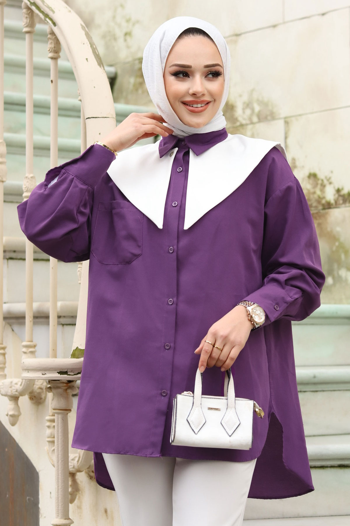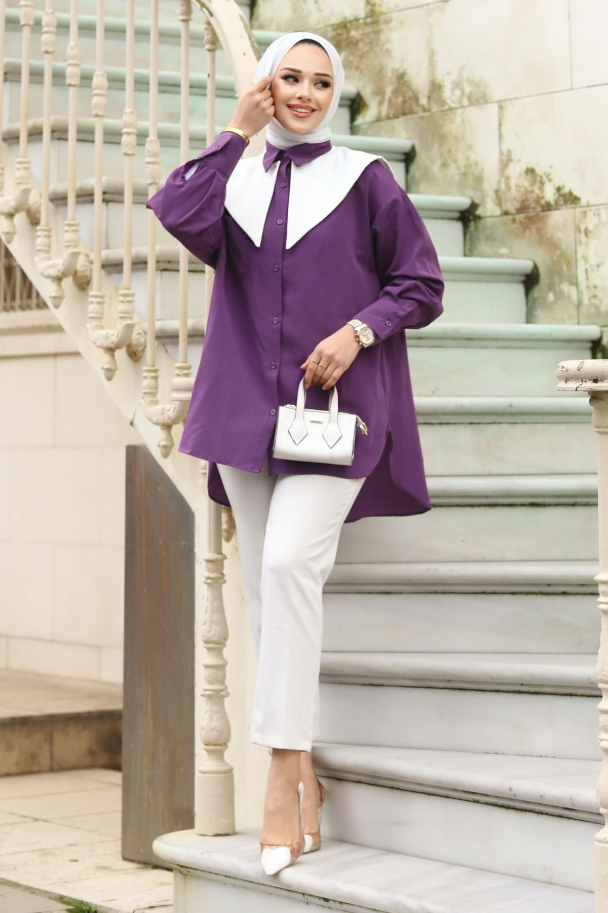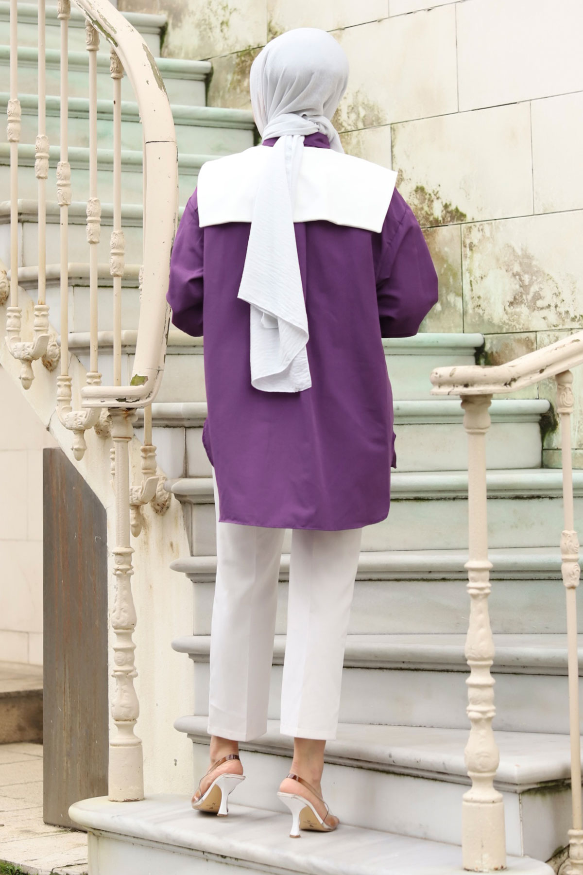 Sivri Yaka Feride Gömlek TSD240220 Mor