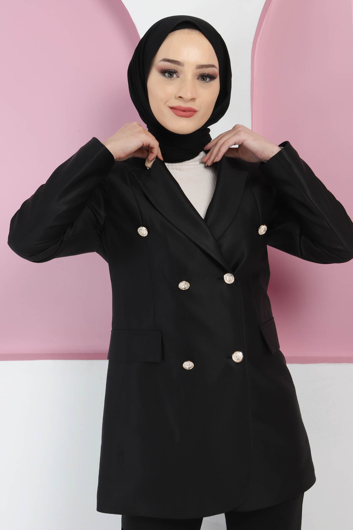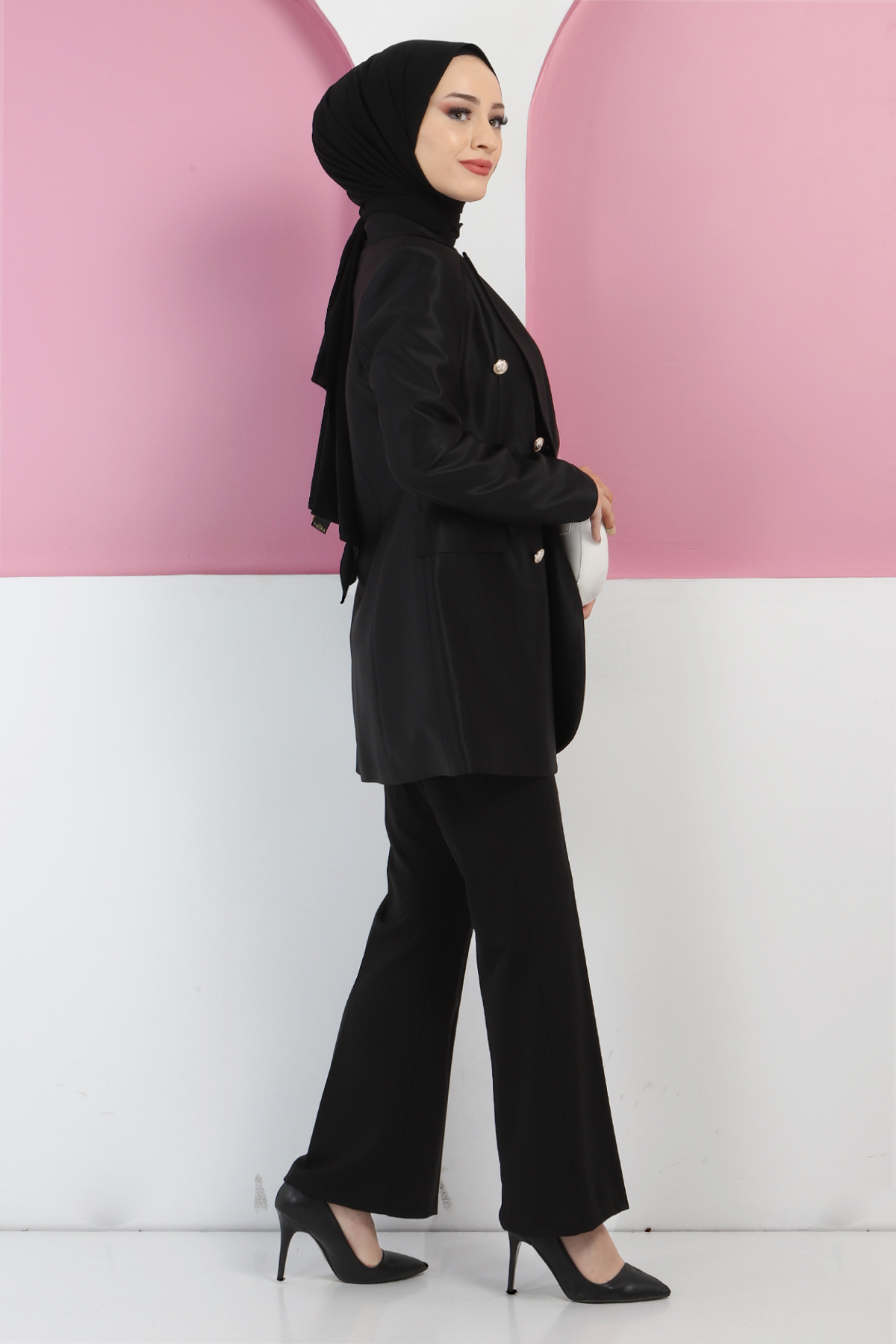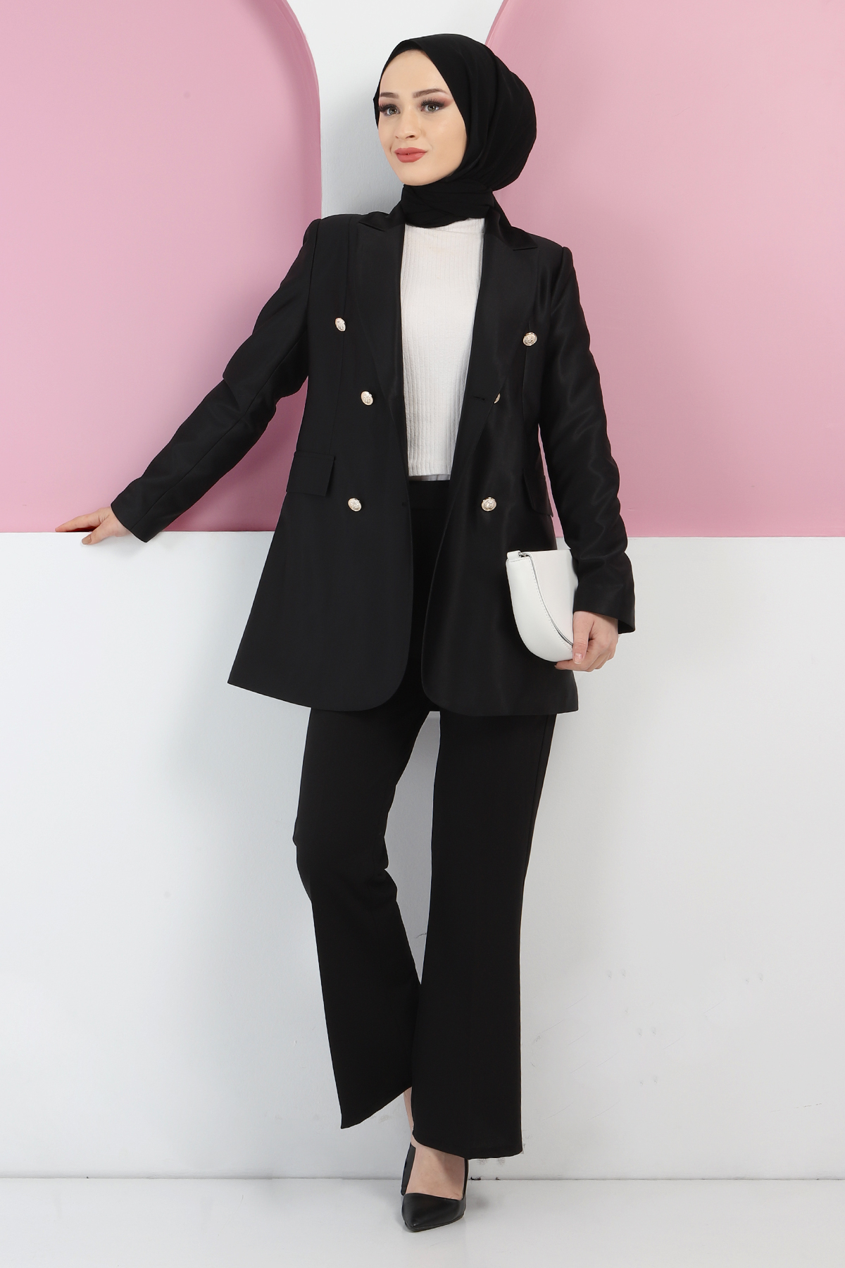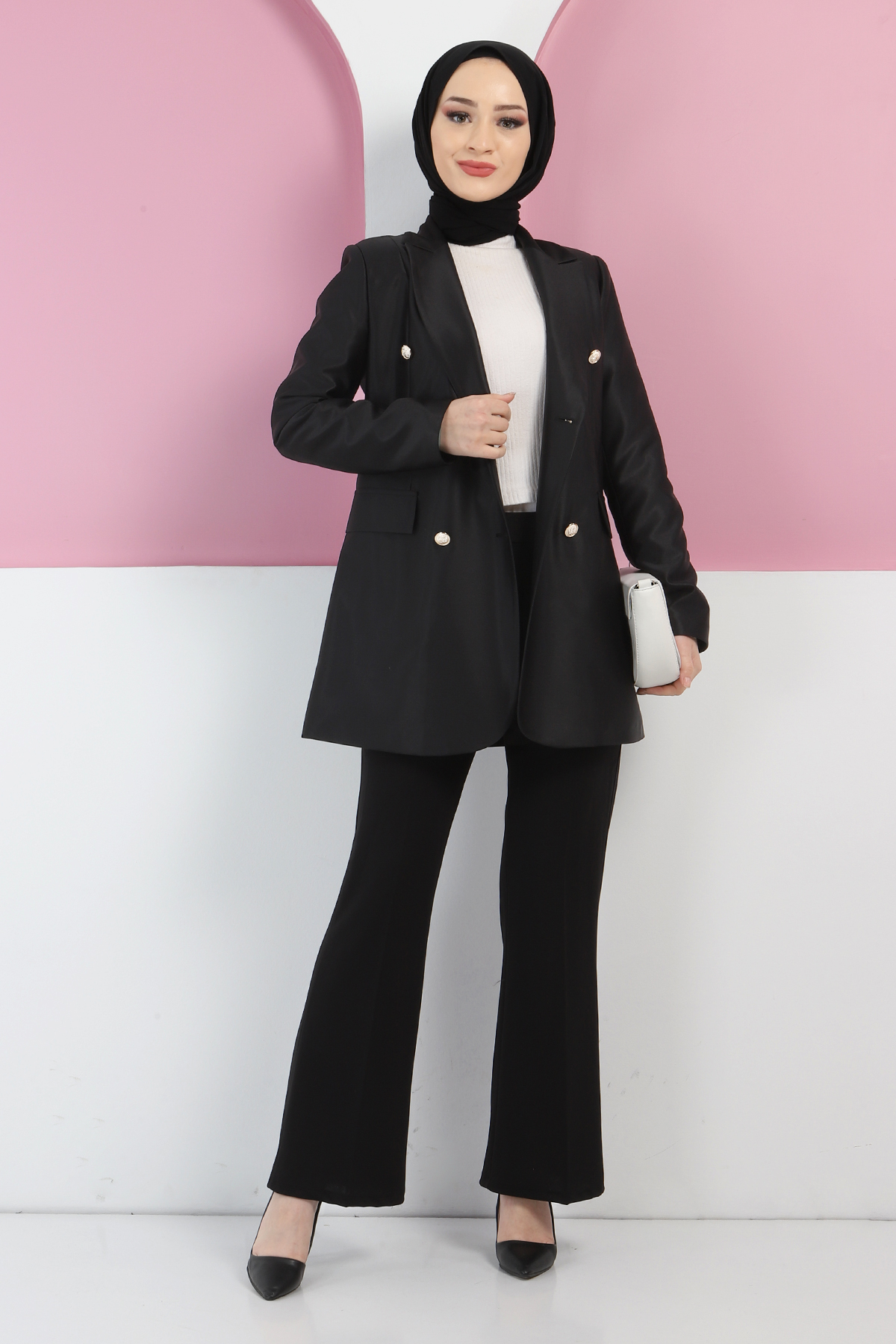 Süs Cep Detaylı Blazer Ceket TSD220411 Siyah Özellikleri
