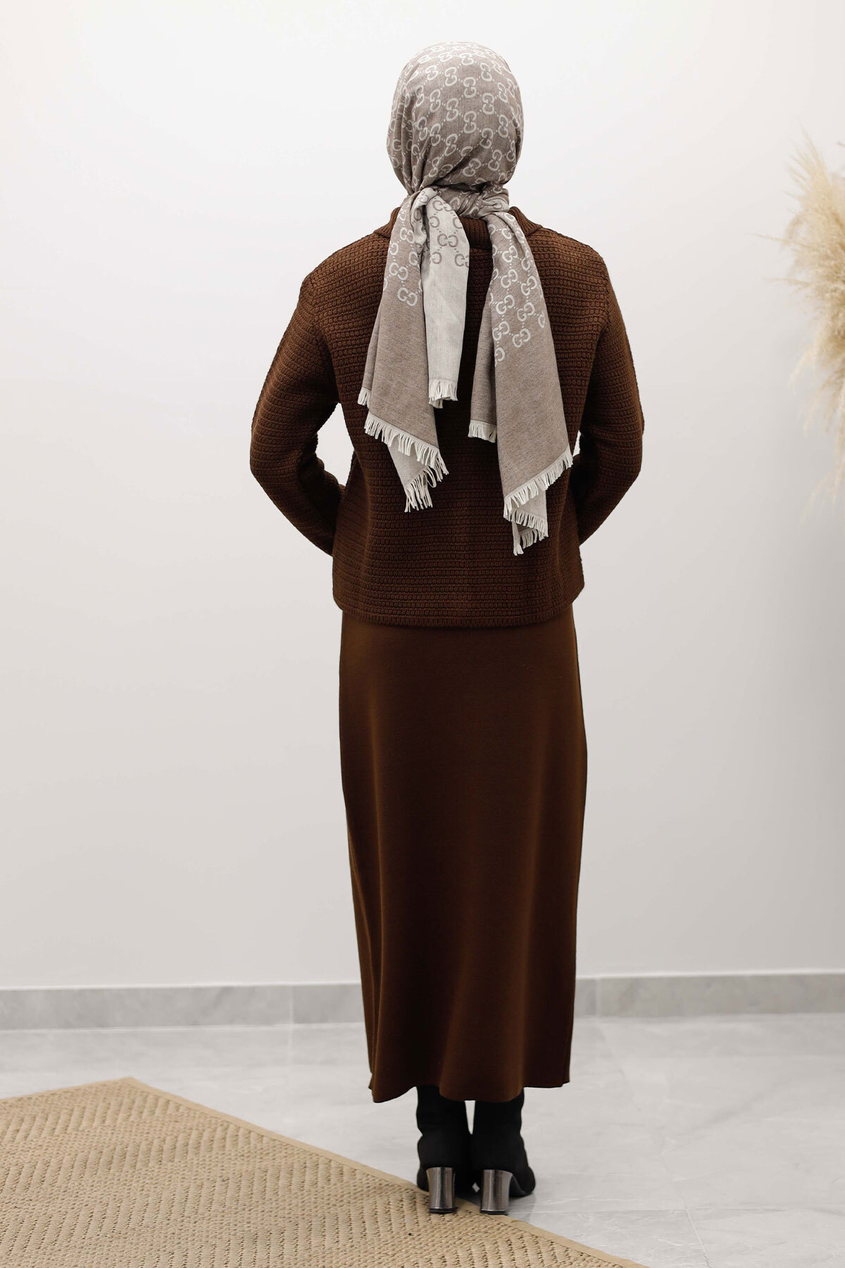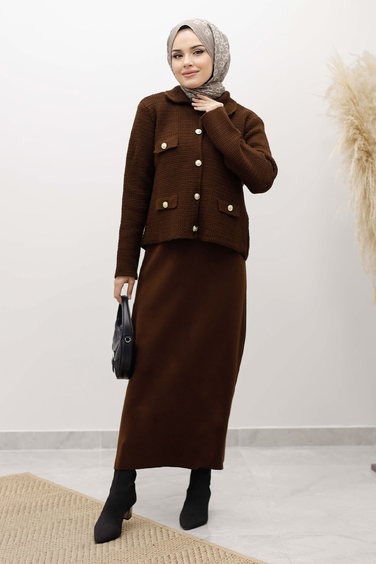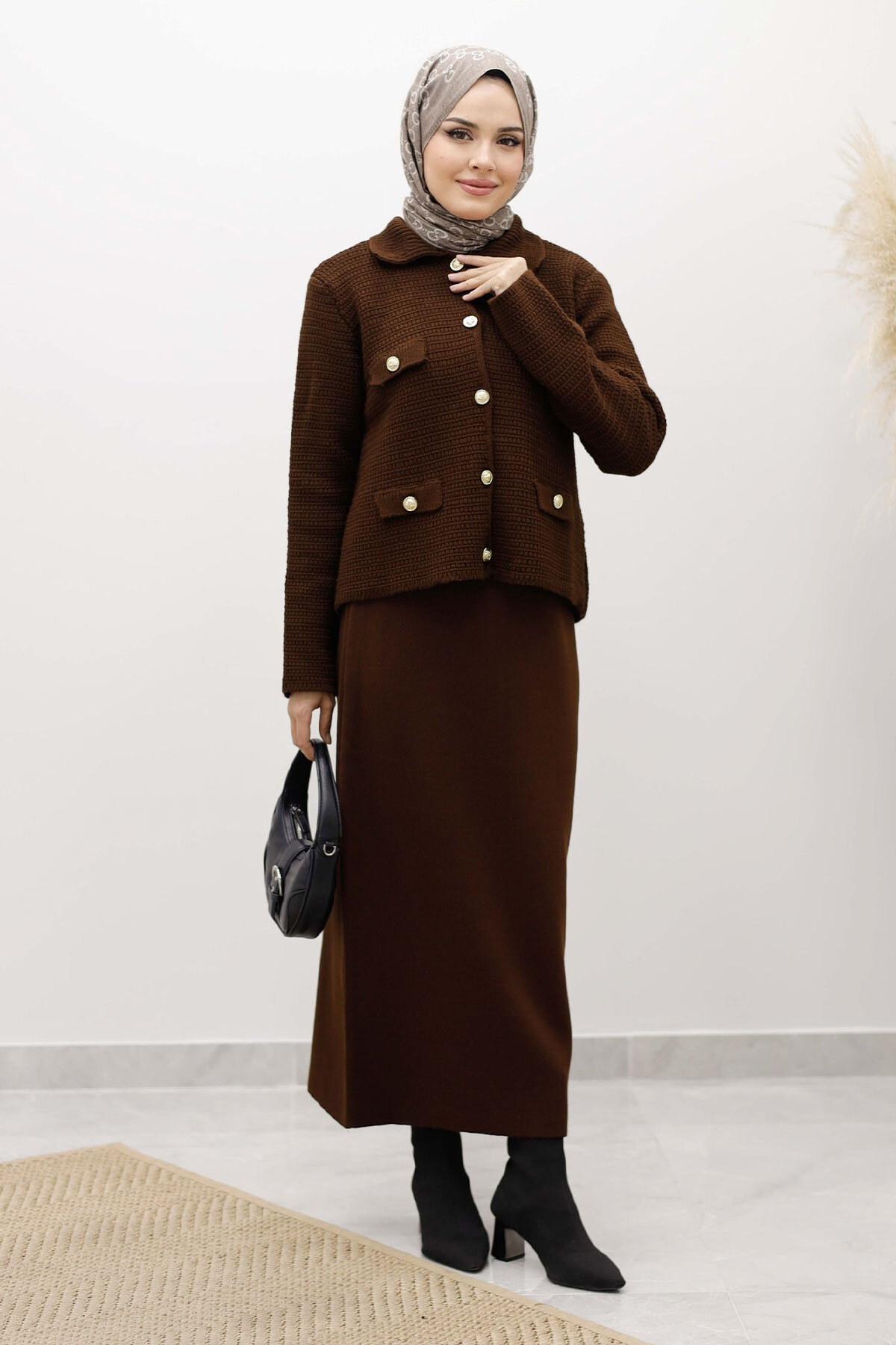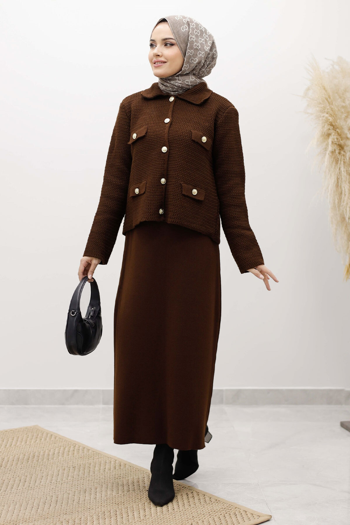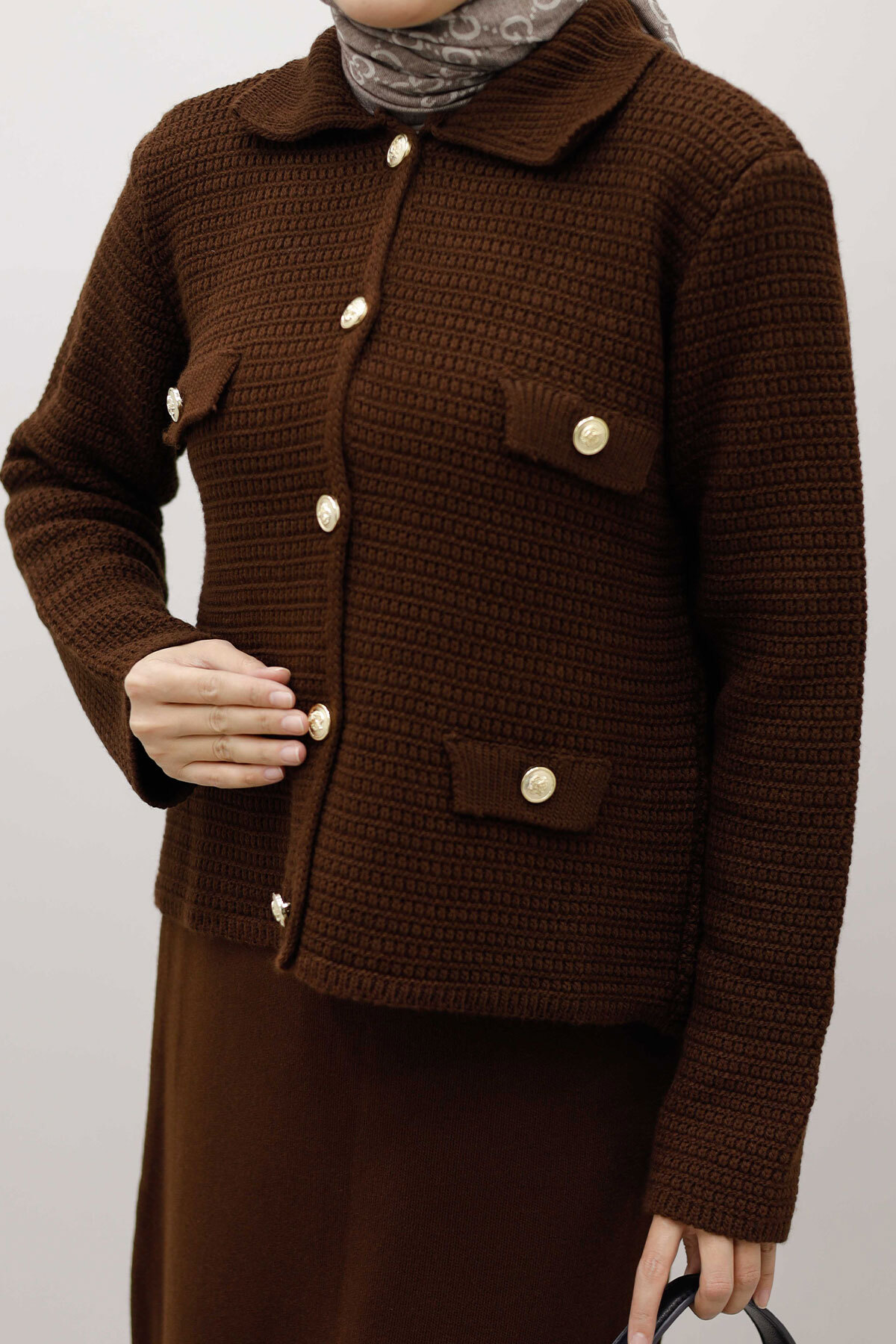 Süs Cepli Triko Hırka TSD250243 Kahverengi