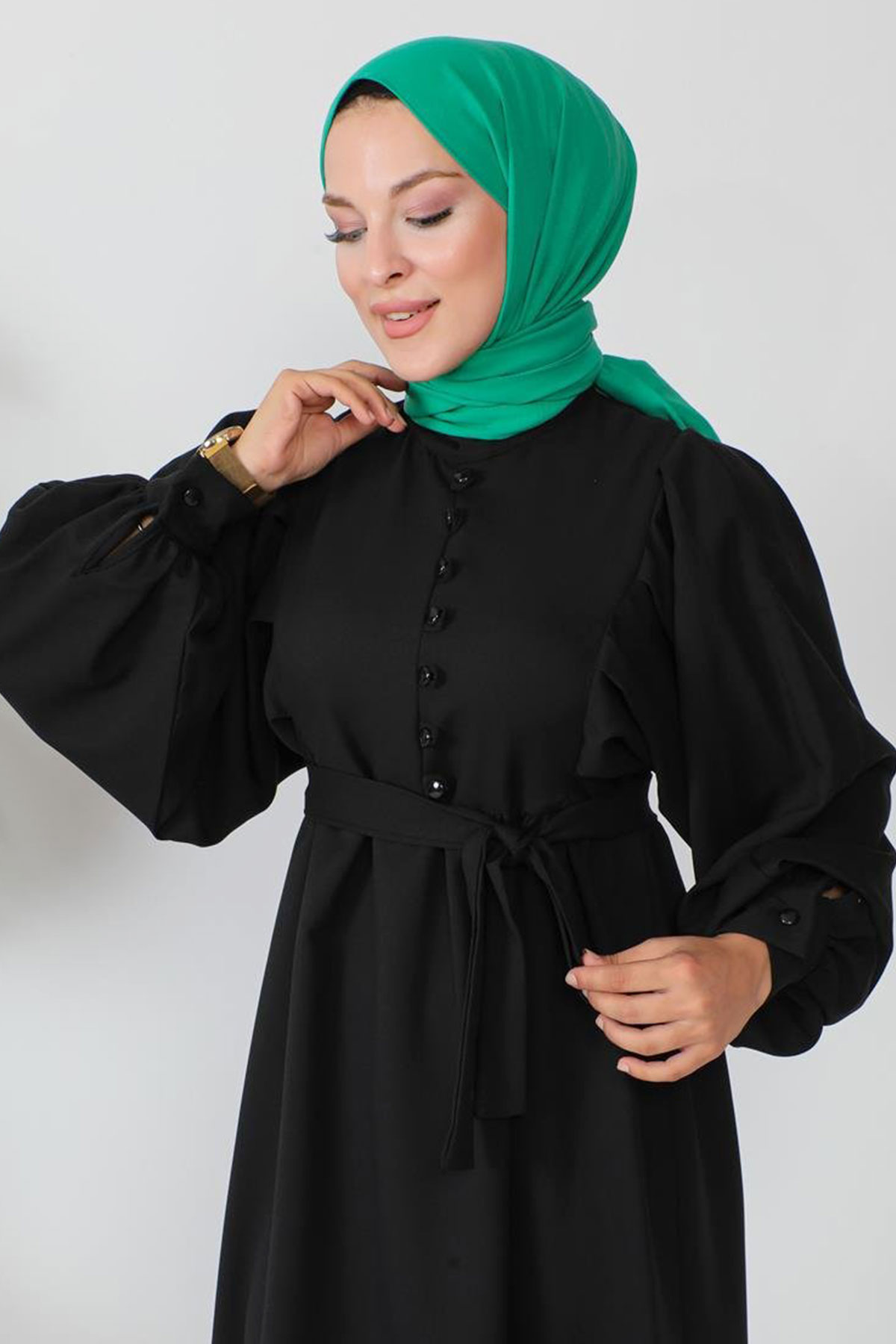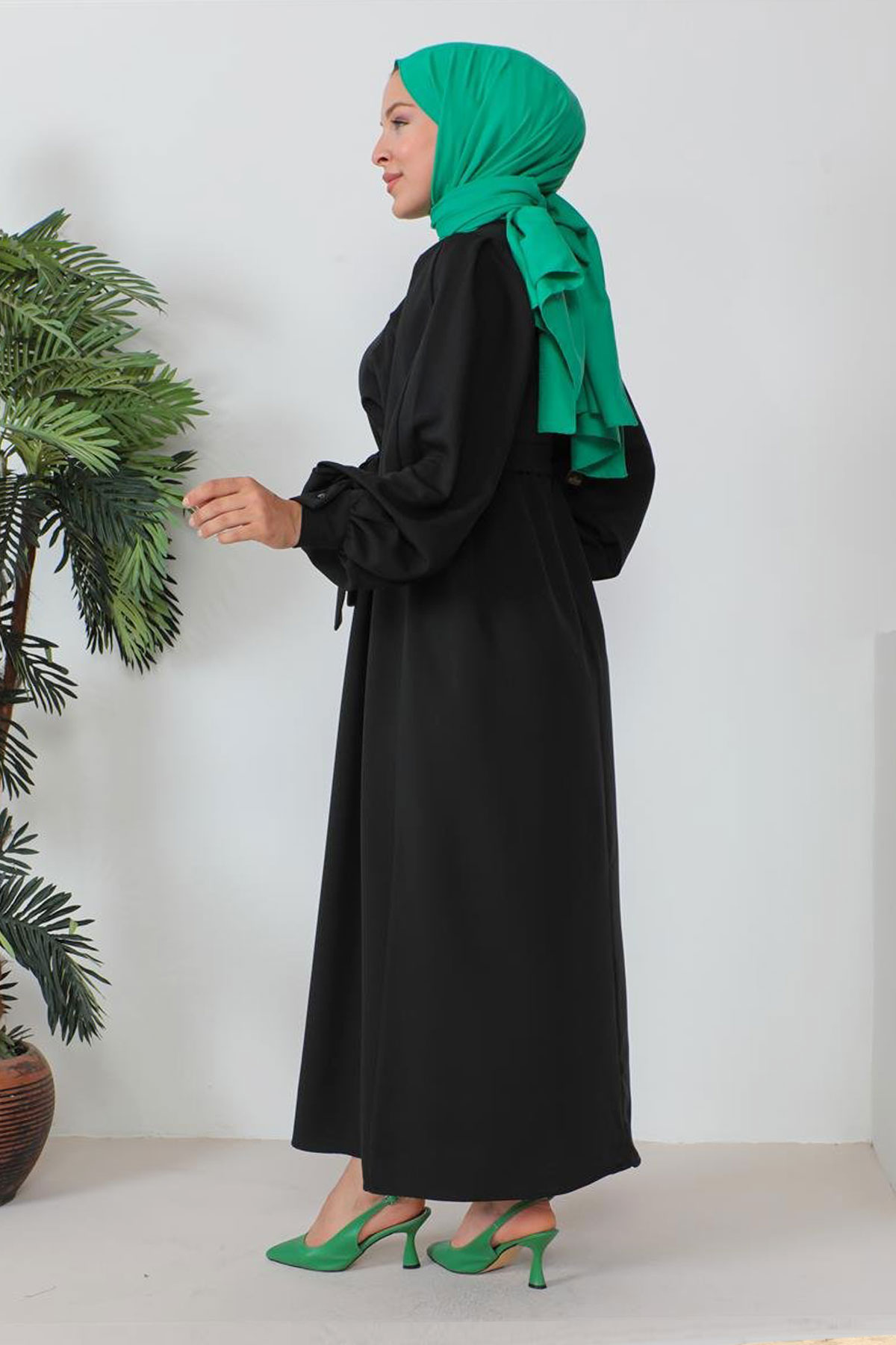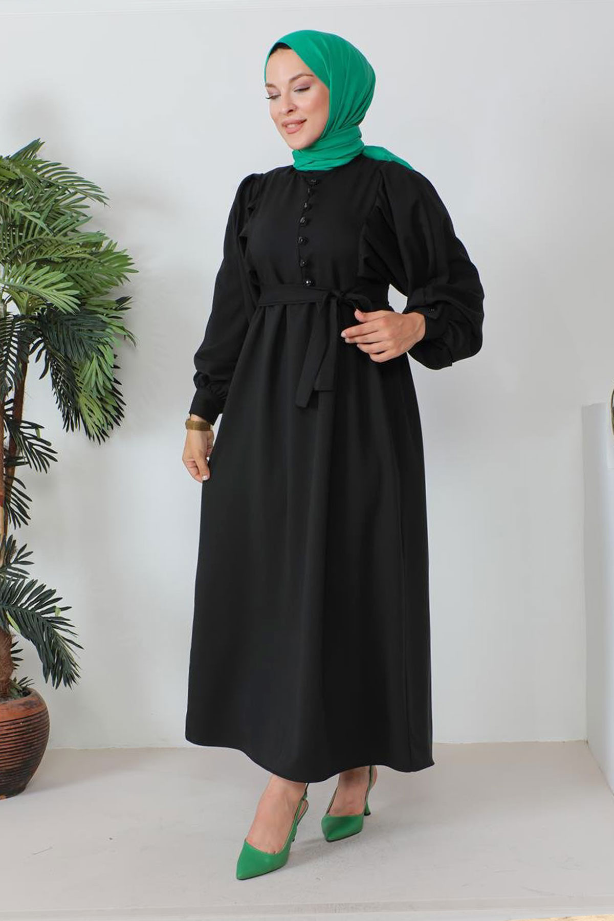Ürün Özelliği : Yeni sezon Süs Düğmeli Beli Kuşaklı Tesettür Elbise modelidir. Önden süs düğmeleri bulunmaktadır. Bisiklet yakalıdır. Beli kuşaklıdır. Kolu düğme ile açılıp kapanmaktadır. Arkadan fermuar ile açılmaktadır. Ürün renginde konsept çekimlerinden dolayı ton farklılığı olabilir.