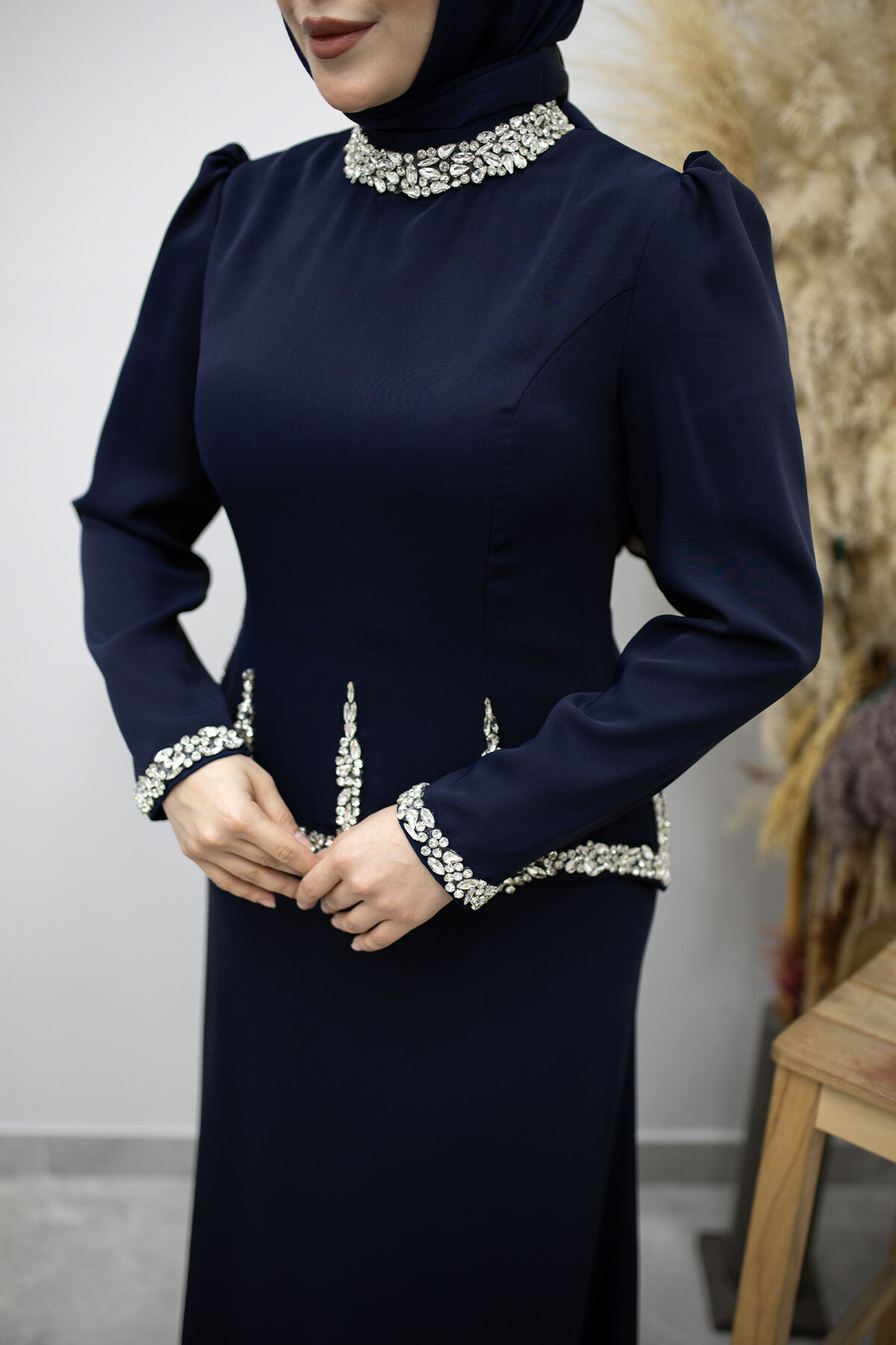 Taş İşlemeli Peplum Abiye TSD260195 Lacivert Özellikleri