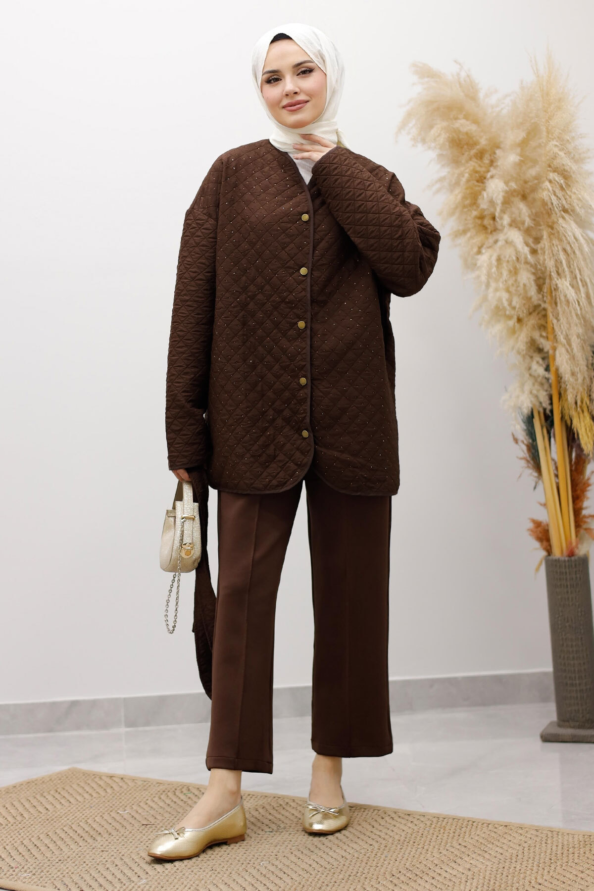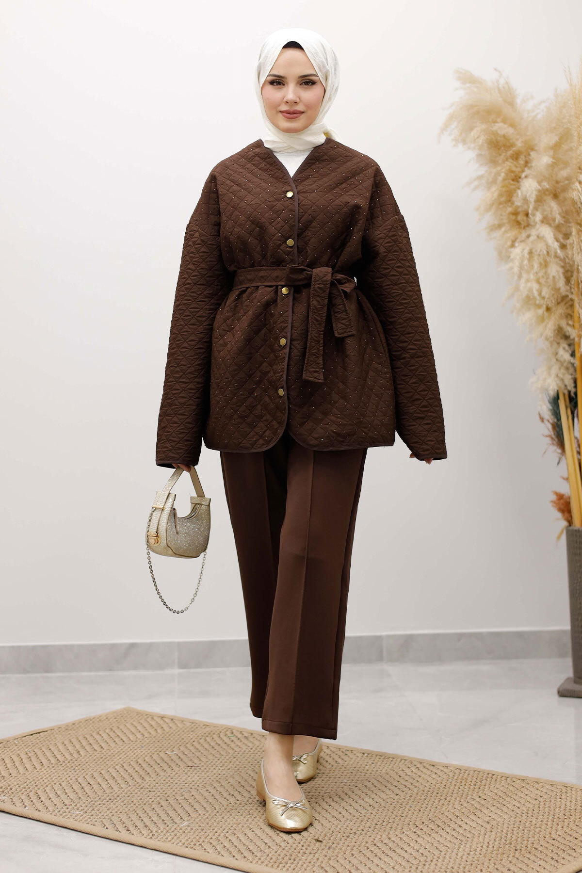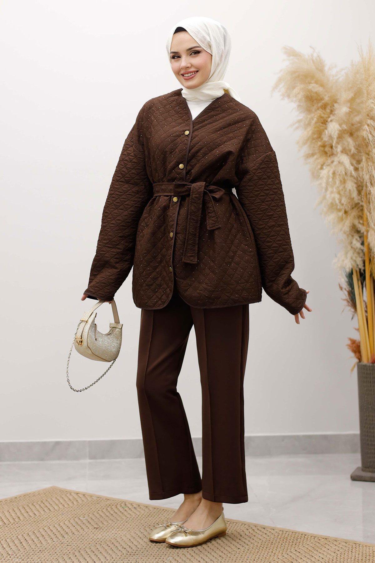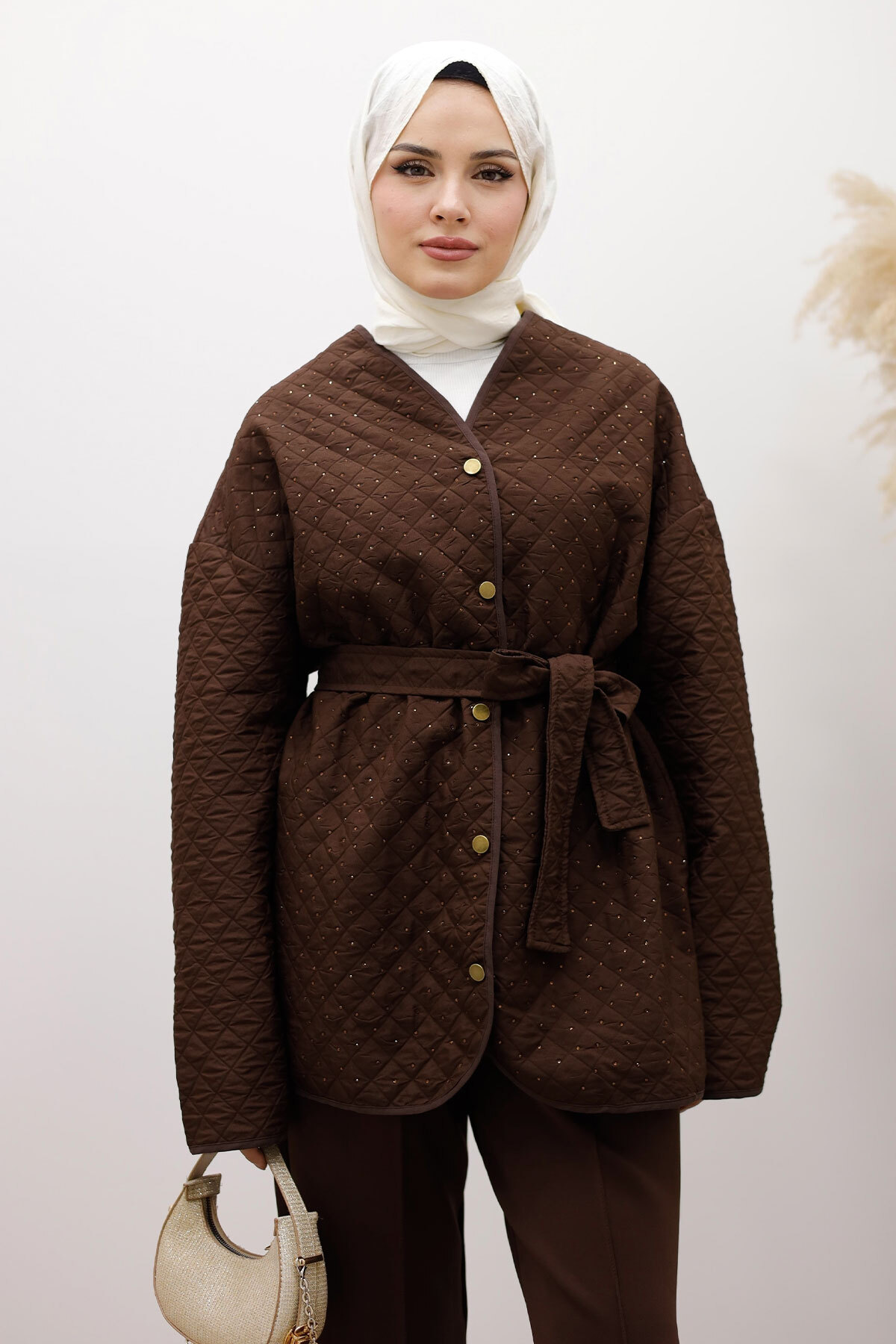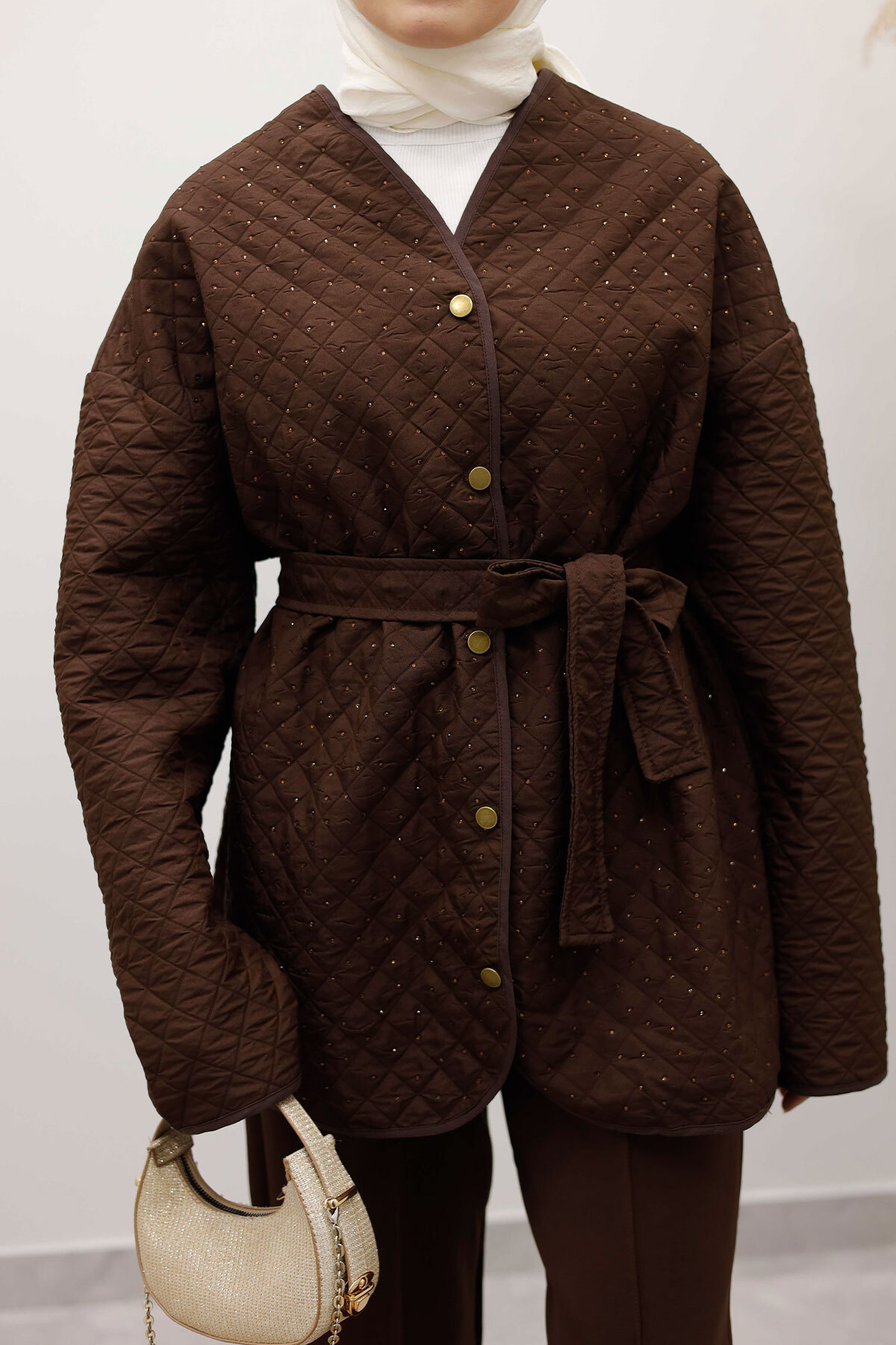 Taşlı Kapitone Ceket TSD260121 Kahverengi Özellikleri