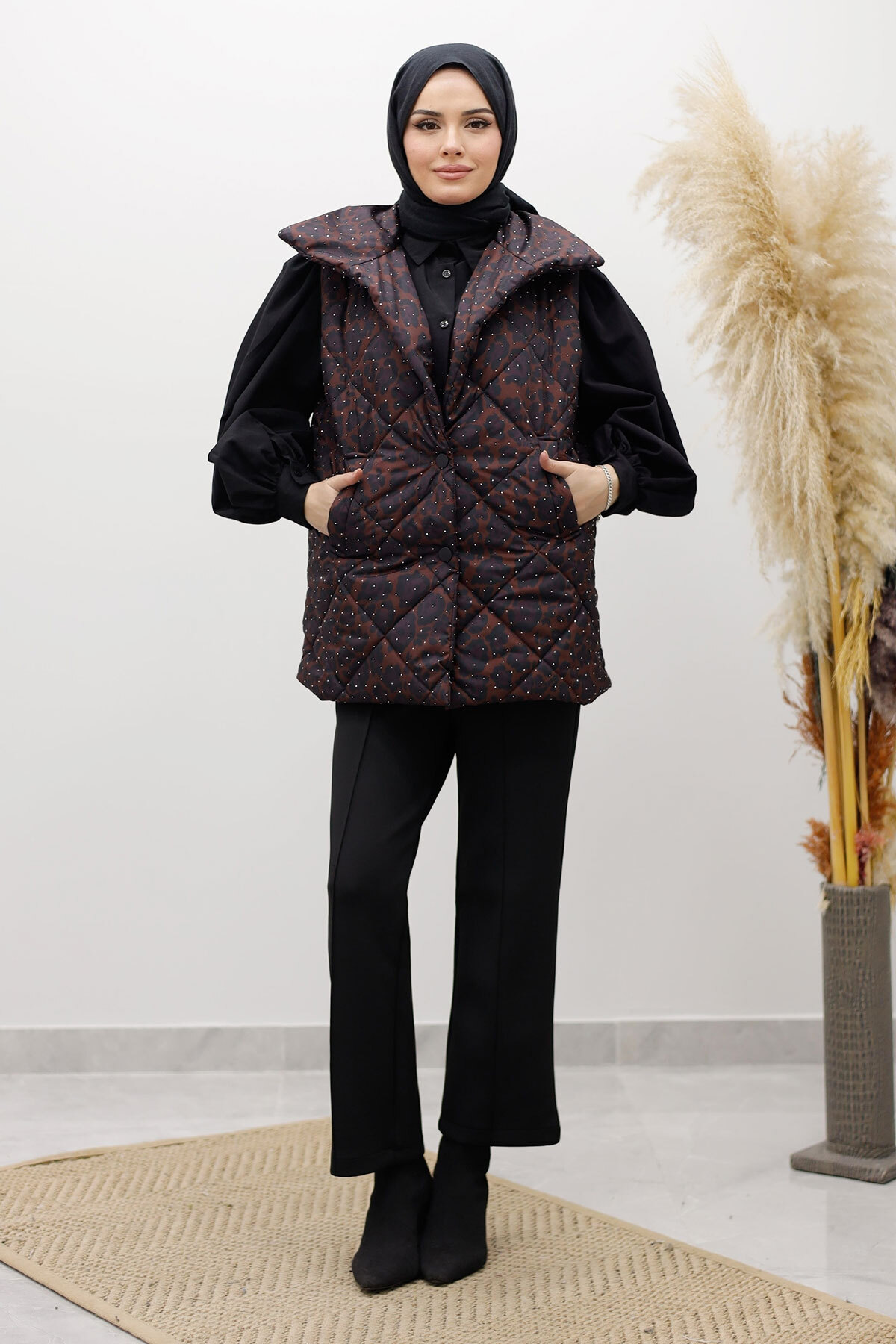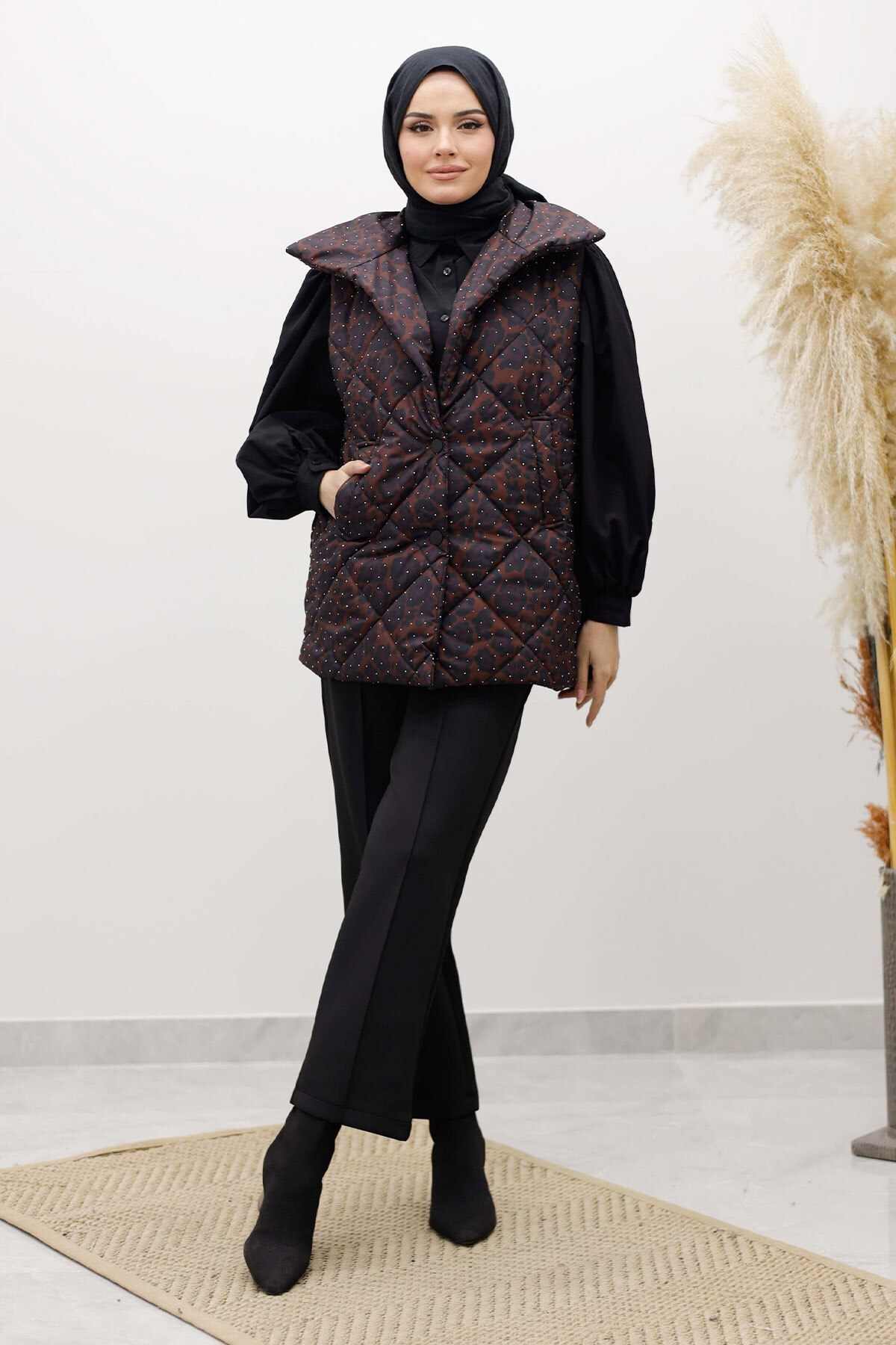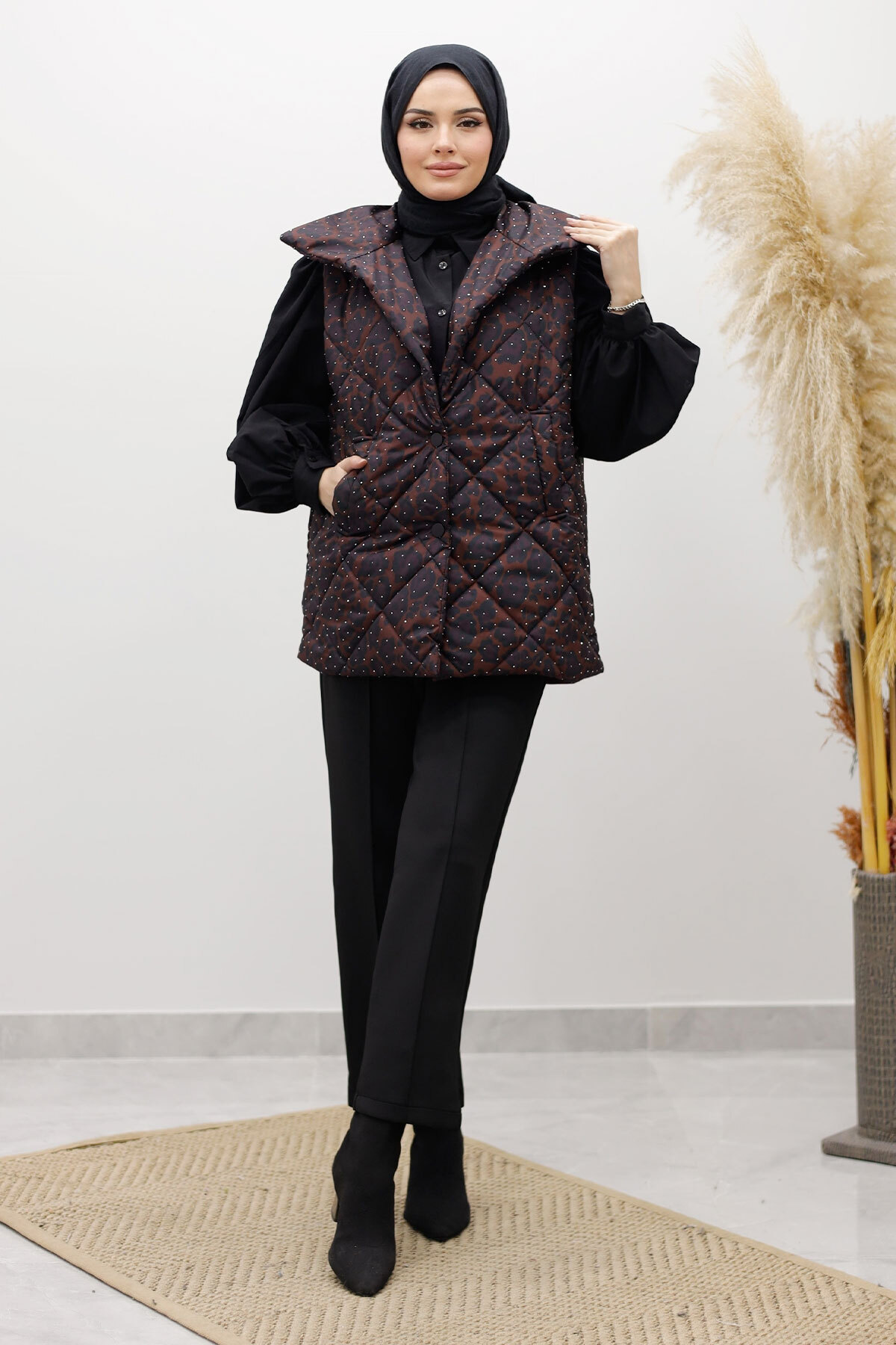 Taşlı Şişme Yelek TSD260122 Kahverengi Özellikleri
