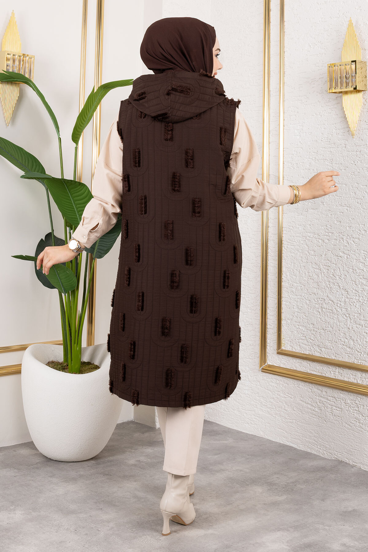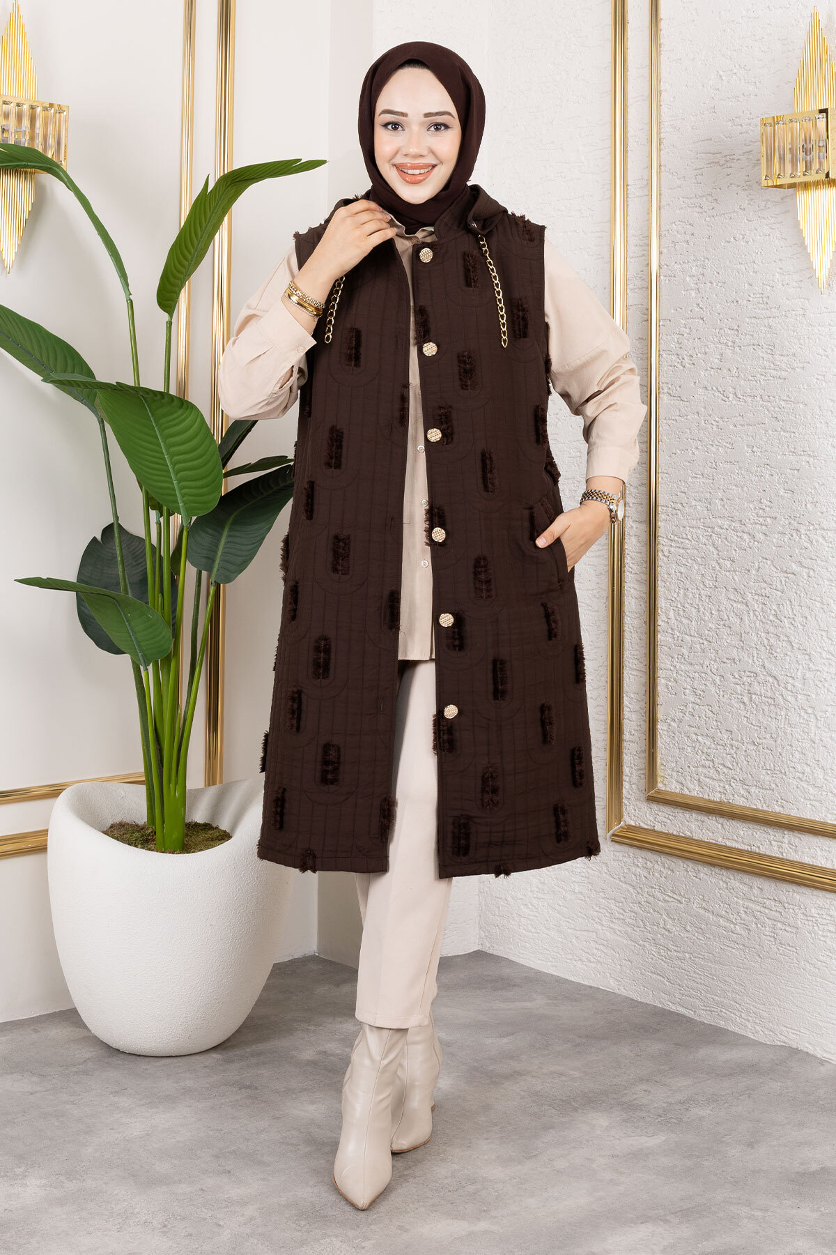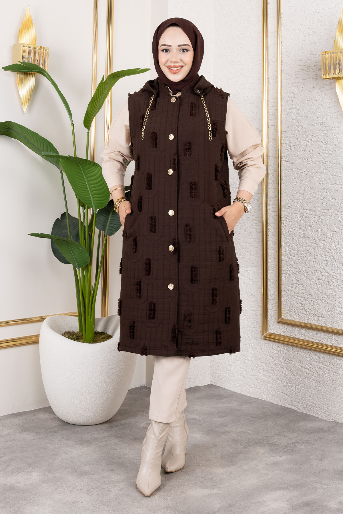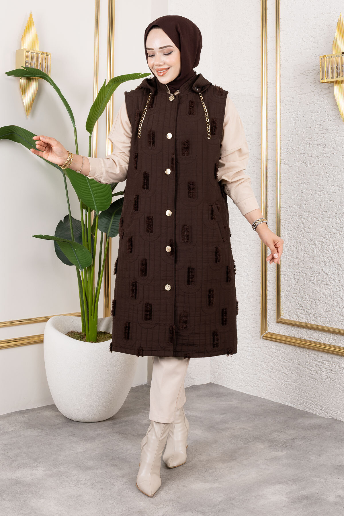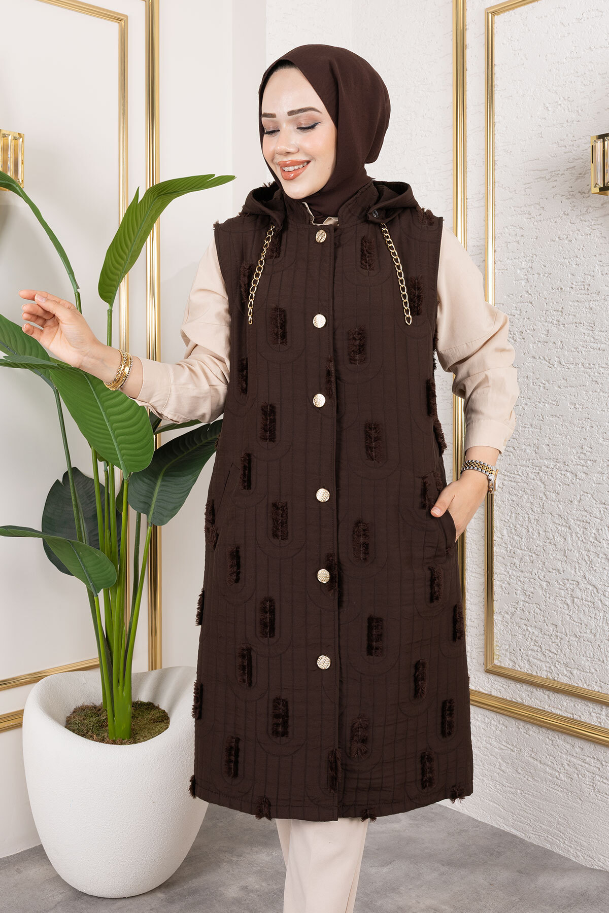 Tüy Detaylı Kapitone Yelek TSD250216 Acı Kahve