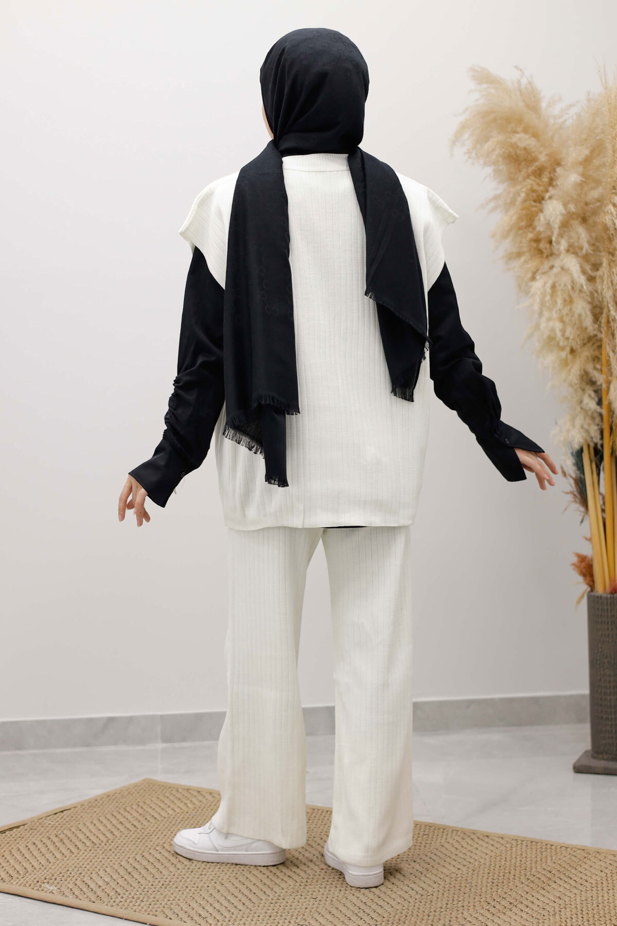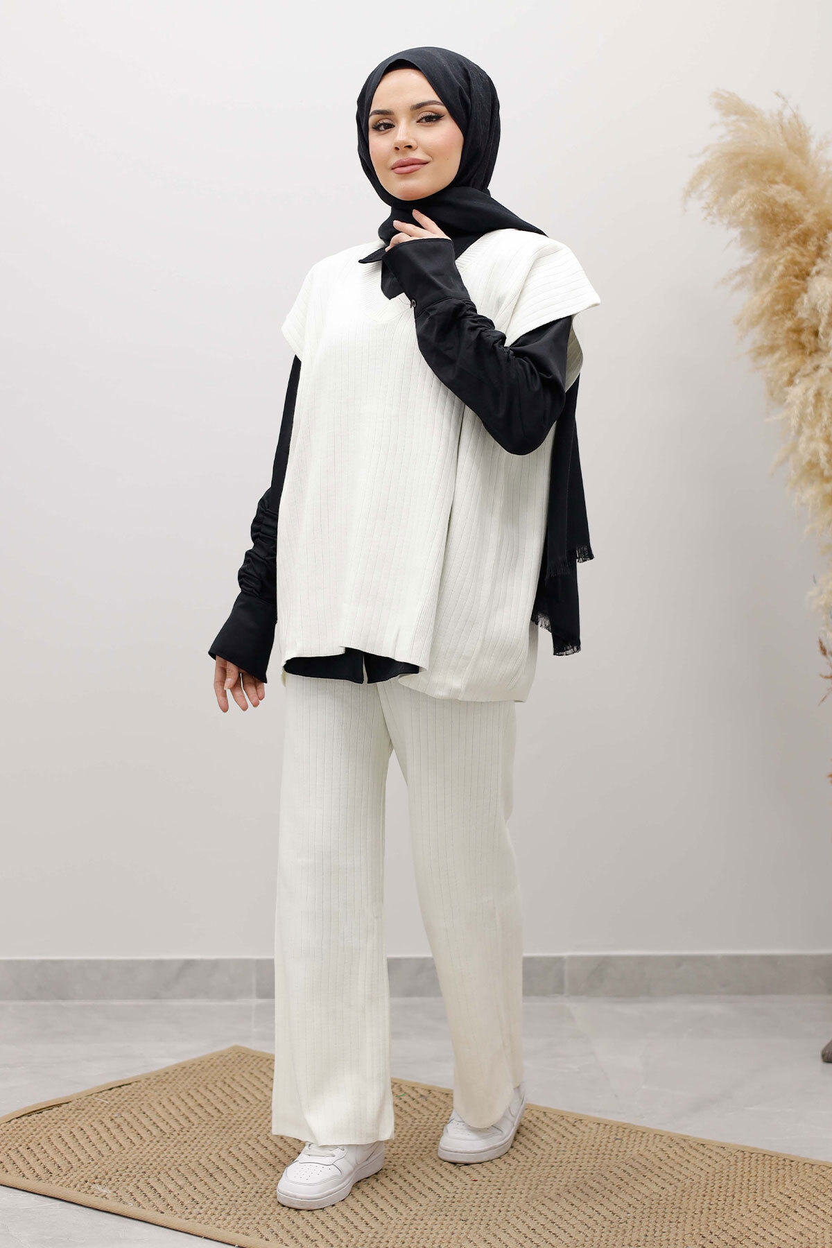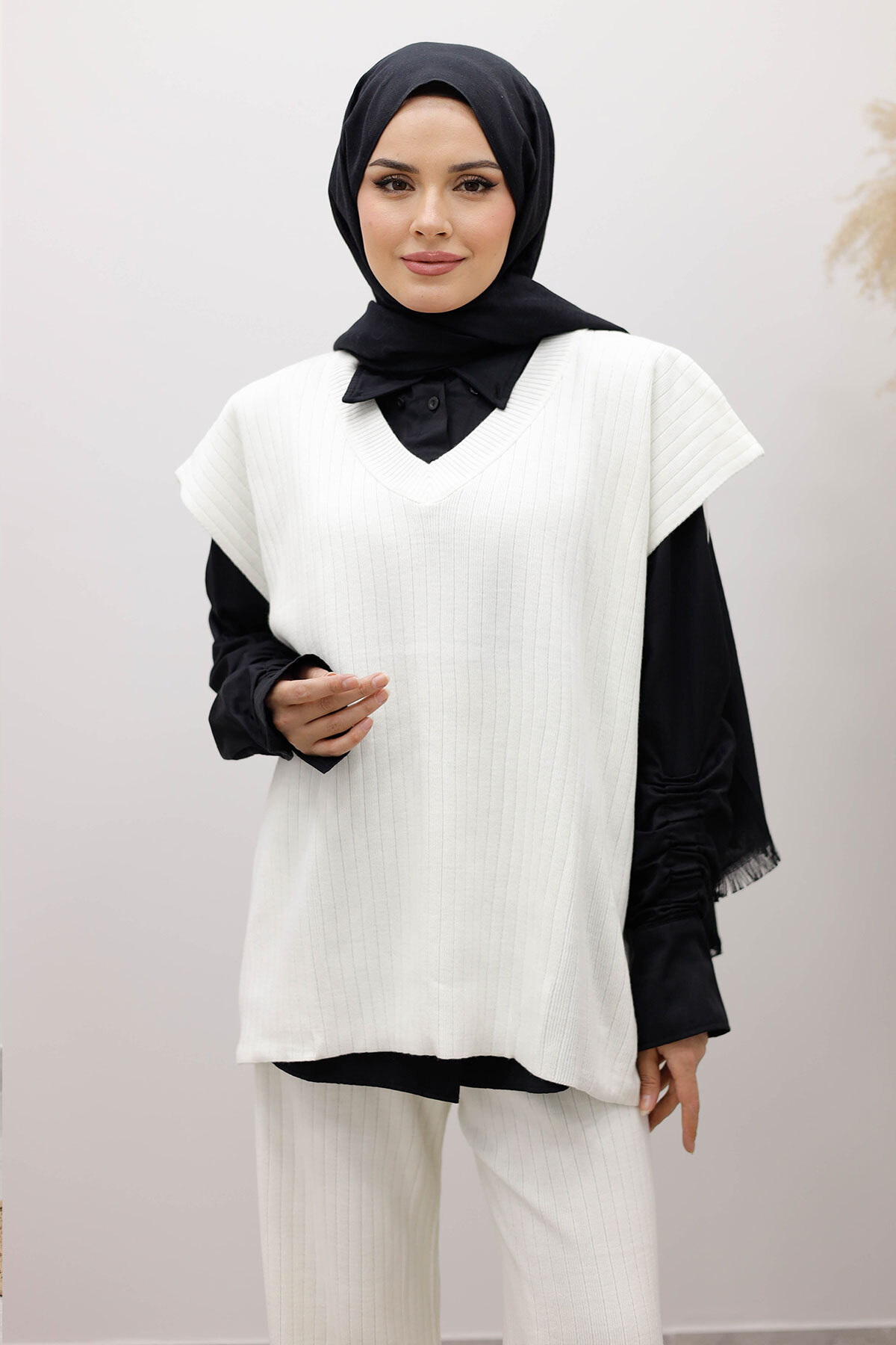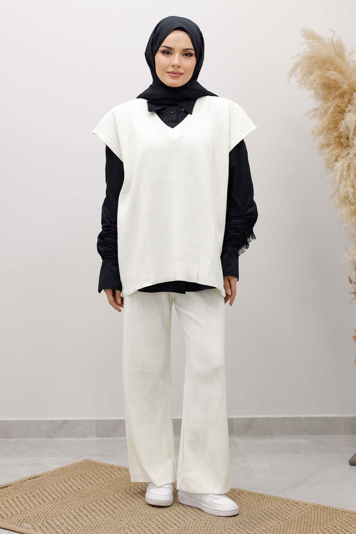 V Yaka Süveter Triko Takım TSD260104 Beyaz Özellikleri