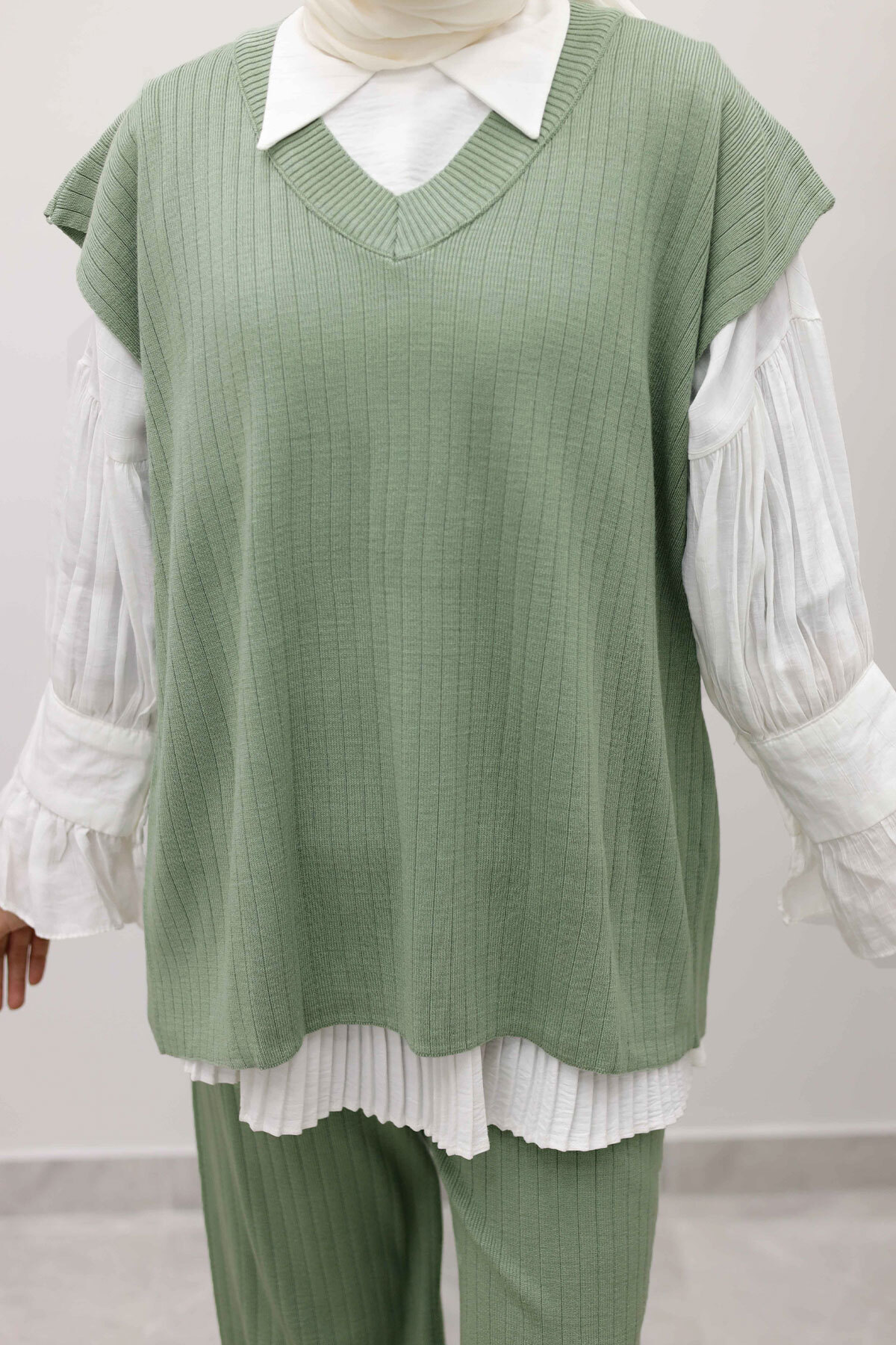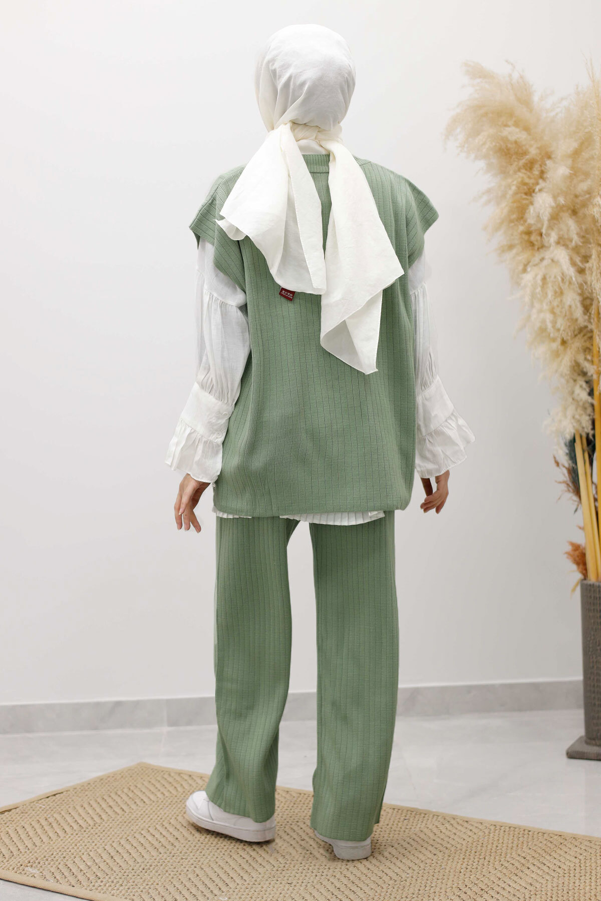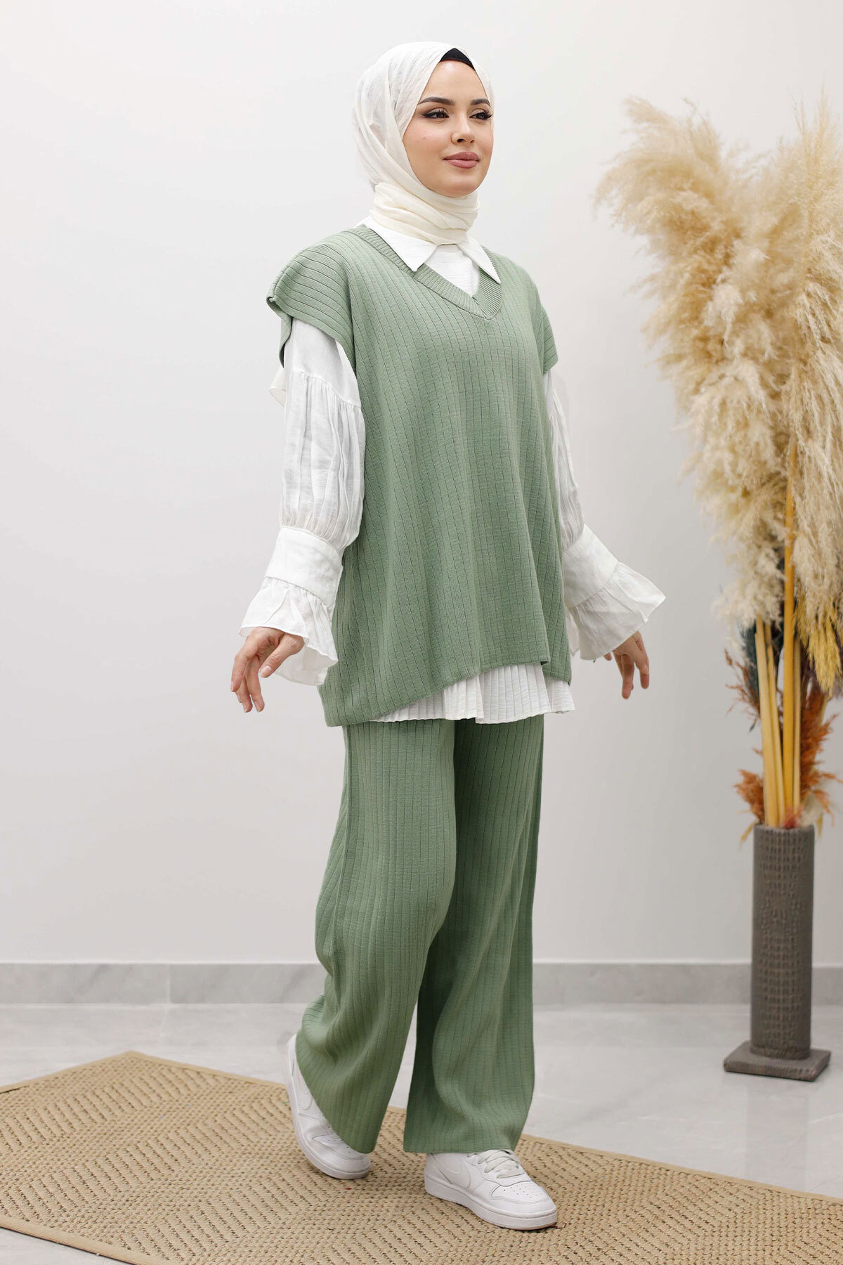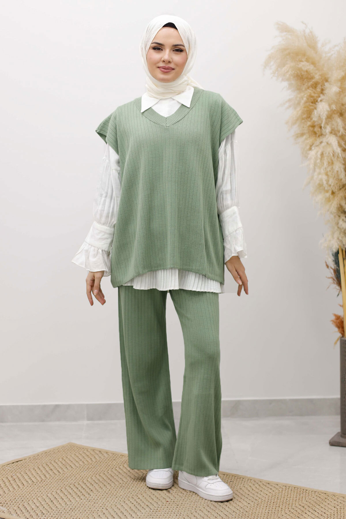 V Yaka Süveter Triko Takım TSD260104 Mint Yeşili Özellikleri