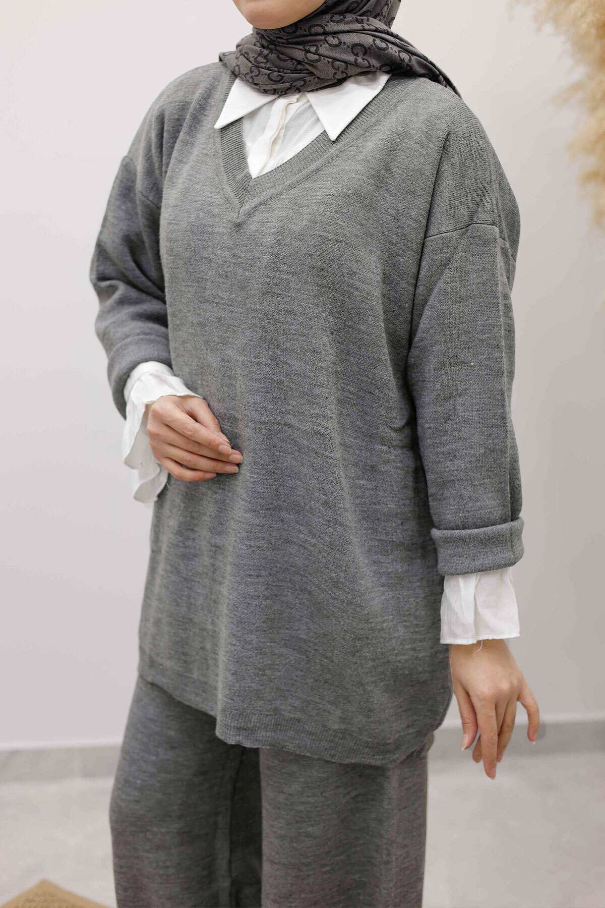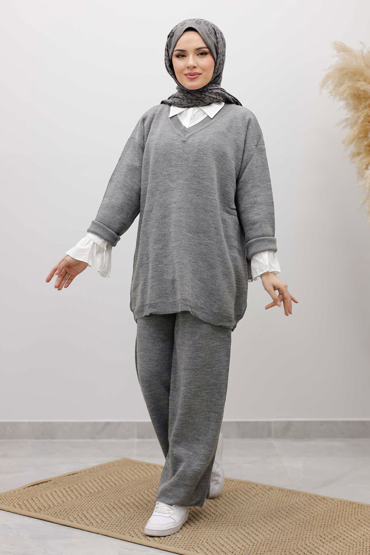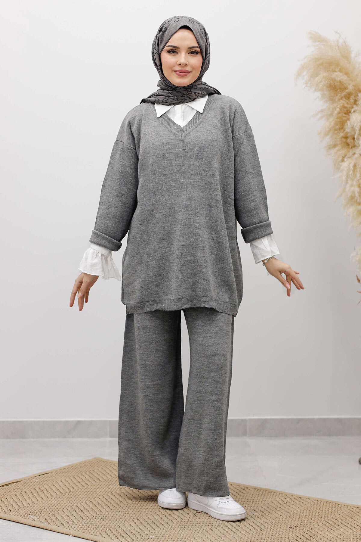 V Yaka Triko Takım TSD260117 Gri Özellikleri