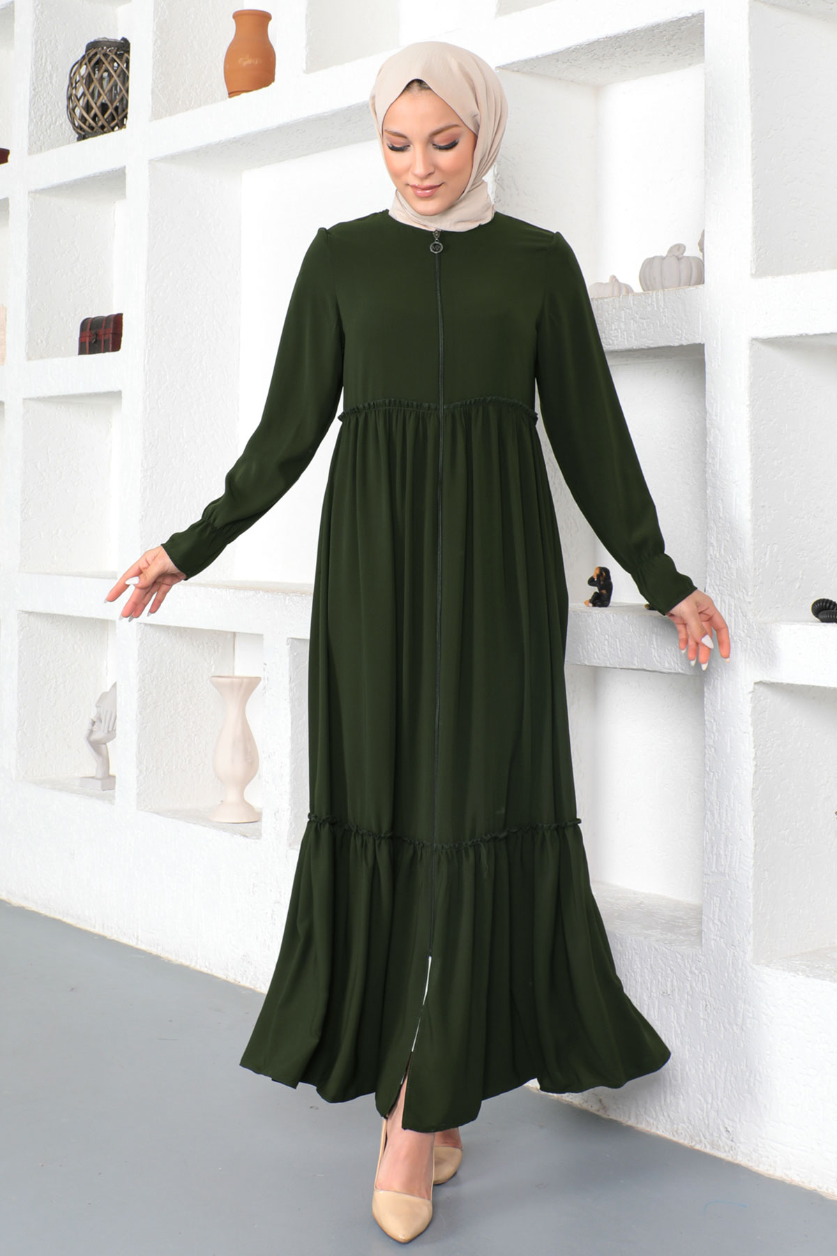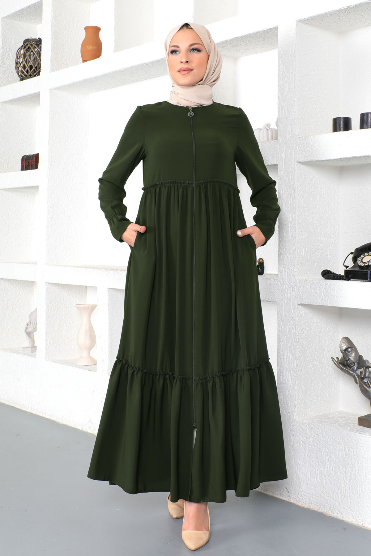 Ürün Özelliği : Yeni sezon Kolu Lastikli Tesettür Ferace modelidir. Boydan fermuar ile açılmaktadır. Kemeri Kolu lastiklidir. Ceplidir, astarsızdır. Ürün renginde konsept çekimlerinden dolayı ton farklılığı olabilir.