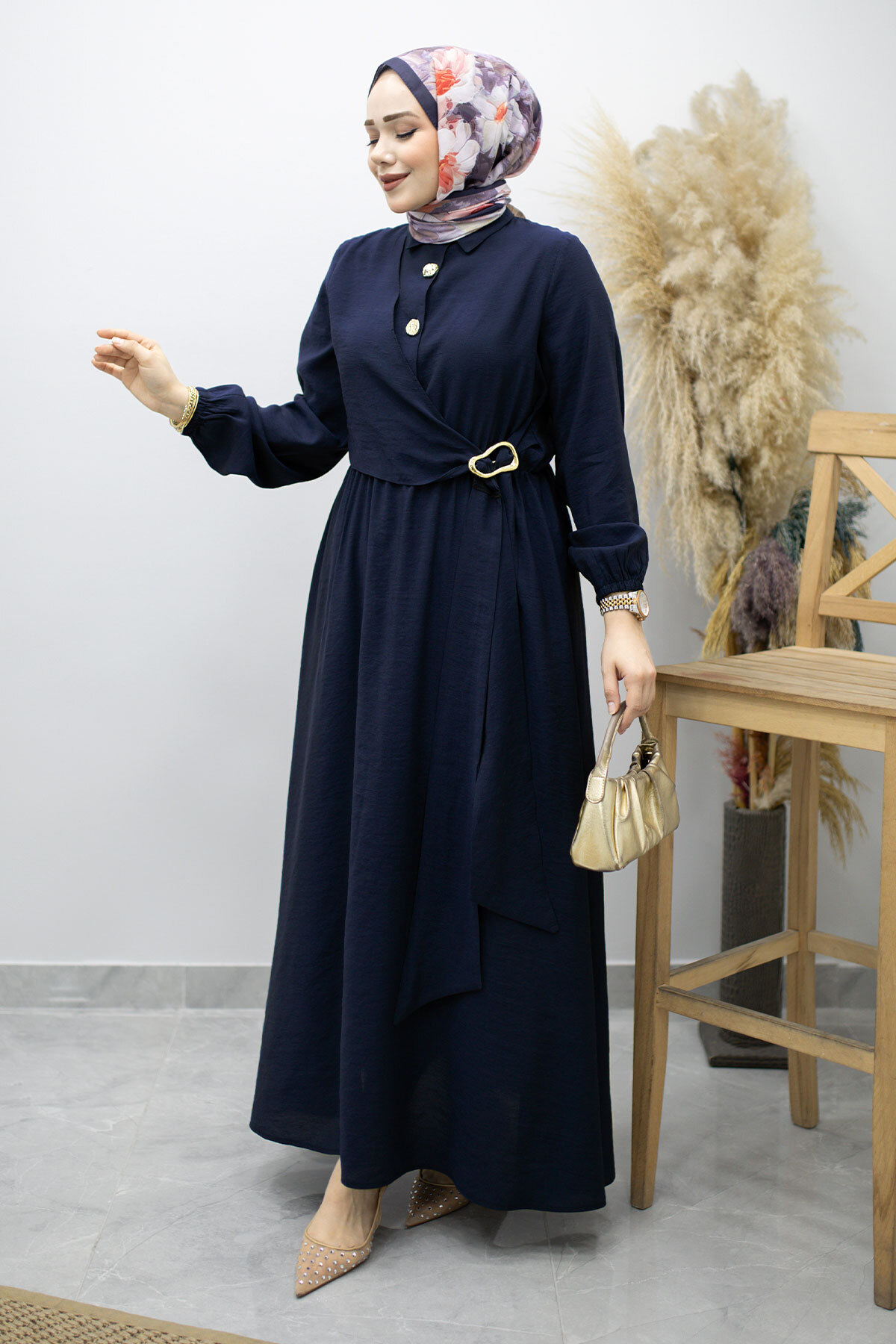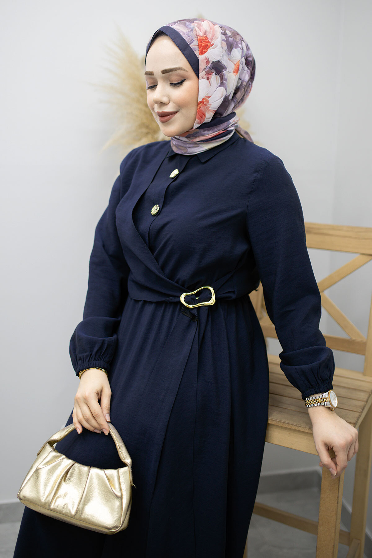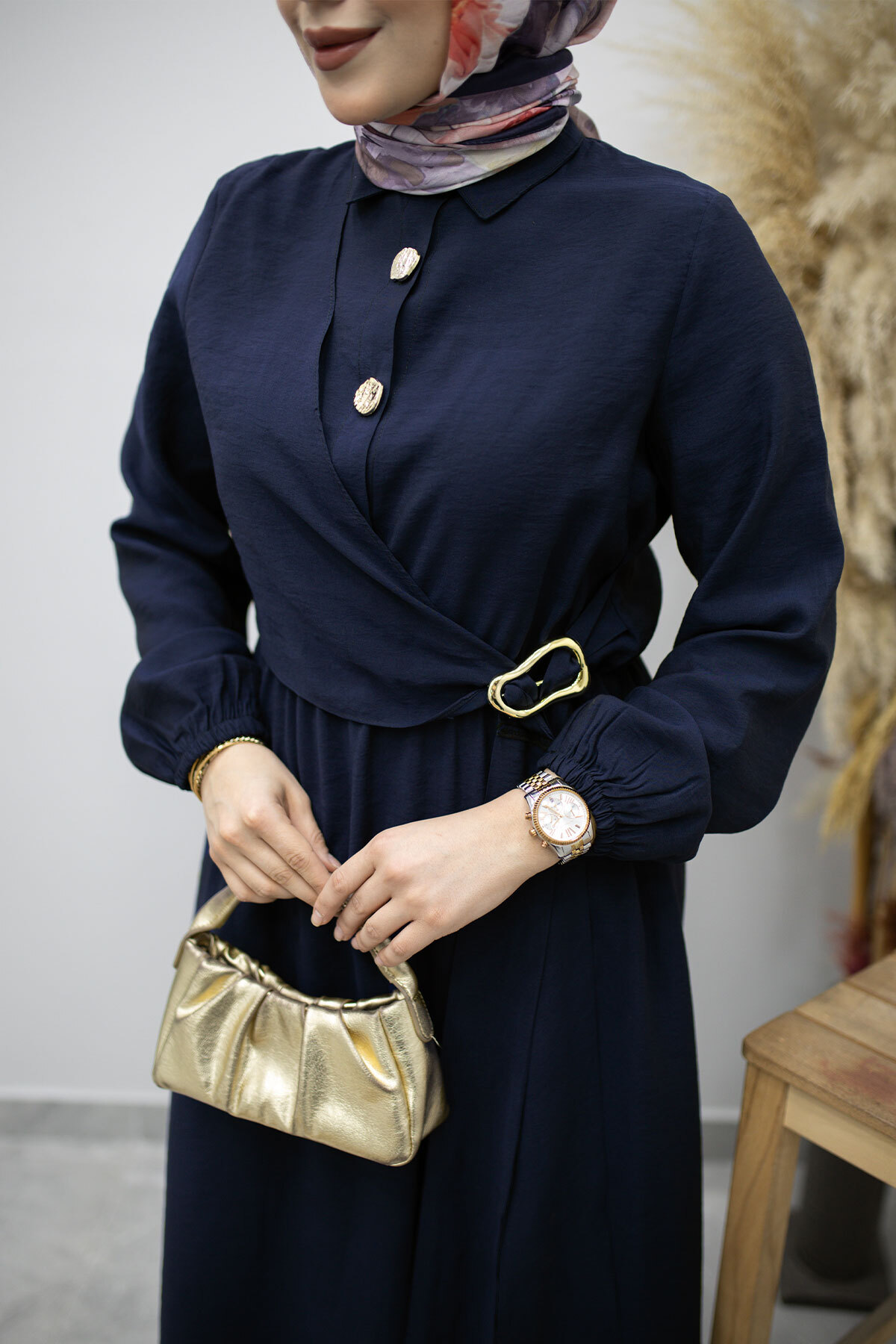 Yan Bağlamalı Toka Detaylı Elbise TSD260203 Lacivert Özellikleri