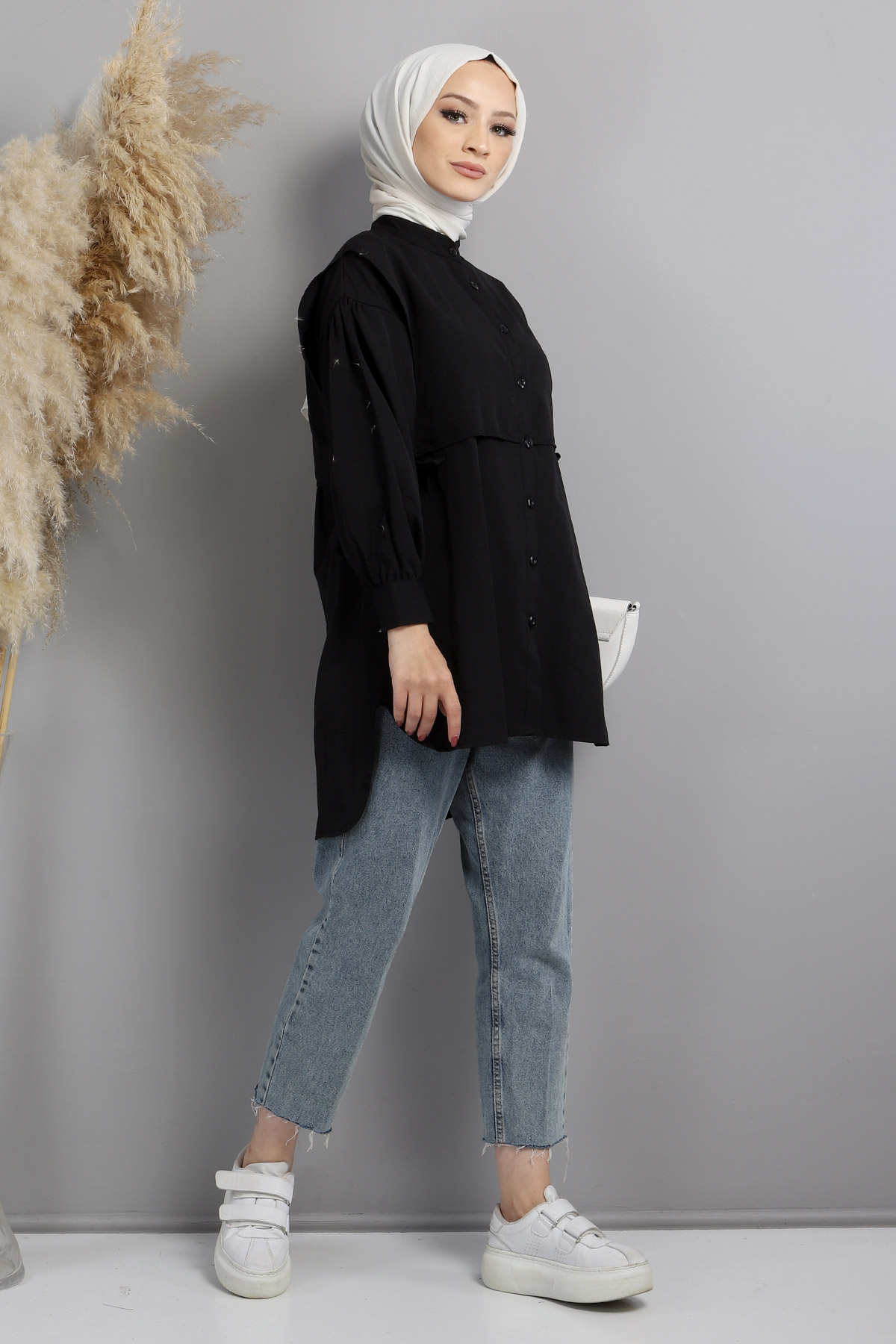 Ürün Özelliği : Yeni sezon Yandan Bağlamalı Tunik modelidir. Kol uçları manşettir. Yanlardan bağlanma detaylıdır. Yakası hakim yakadır. Düşük omuz modellidir.Önden ve arkadan ek parçası vardır ve bağlanır. Ürün renginde konsept çekimlerinden dolayı ton farklılığı olabilir.