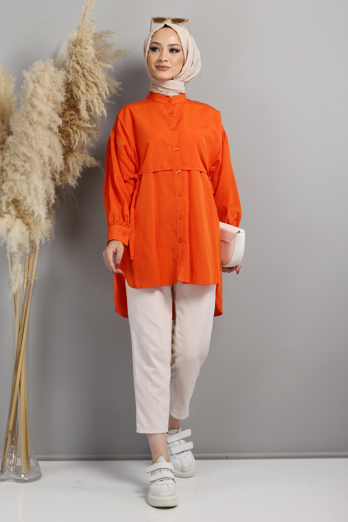 Ürün Özelliği : Yeni sezon Yandan Bağlamalı Tunik modelidir. Kol uçları manşettir. Yanlardan bağlanma detaylıdır. Yakası hakim yakadır. Düşük omuz modellidir.Önden ve arkadan ek parçası vardır ve bağlanır. Ürün renginde konsept çekimlerinden dolayı ton farklılığı olabilir.