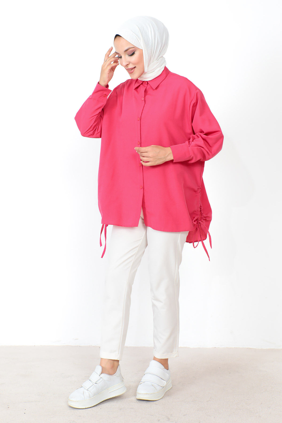 Ürün Özelliği : Yeni sezon Yanı Büzgülü Tunik modelidir. Kol ucu manşet detaylıdır. Önden açılır düğmelidir. Yakası gömlek yakadır. Kenarları büzgü detaylıdır. Standart beden üründür. 36-46 beden aralığına uyumludur. Ürün renginde konsept çekimlerinden dolayı ton farklılığı olabilir.