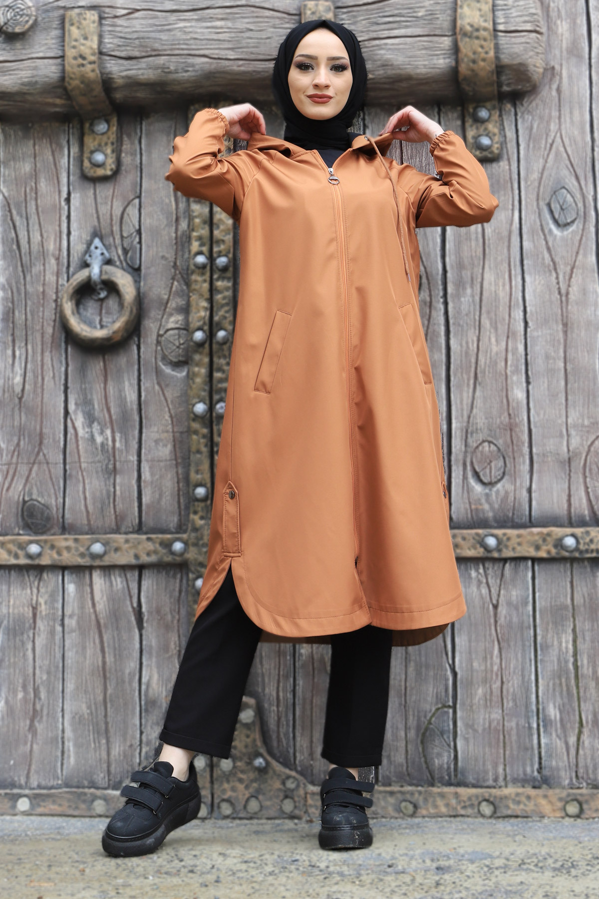 Yanı Çakım Detaylı Trençkot TSD220306 Tarçın Özellikleri