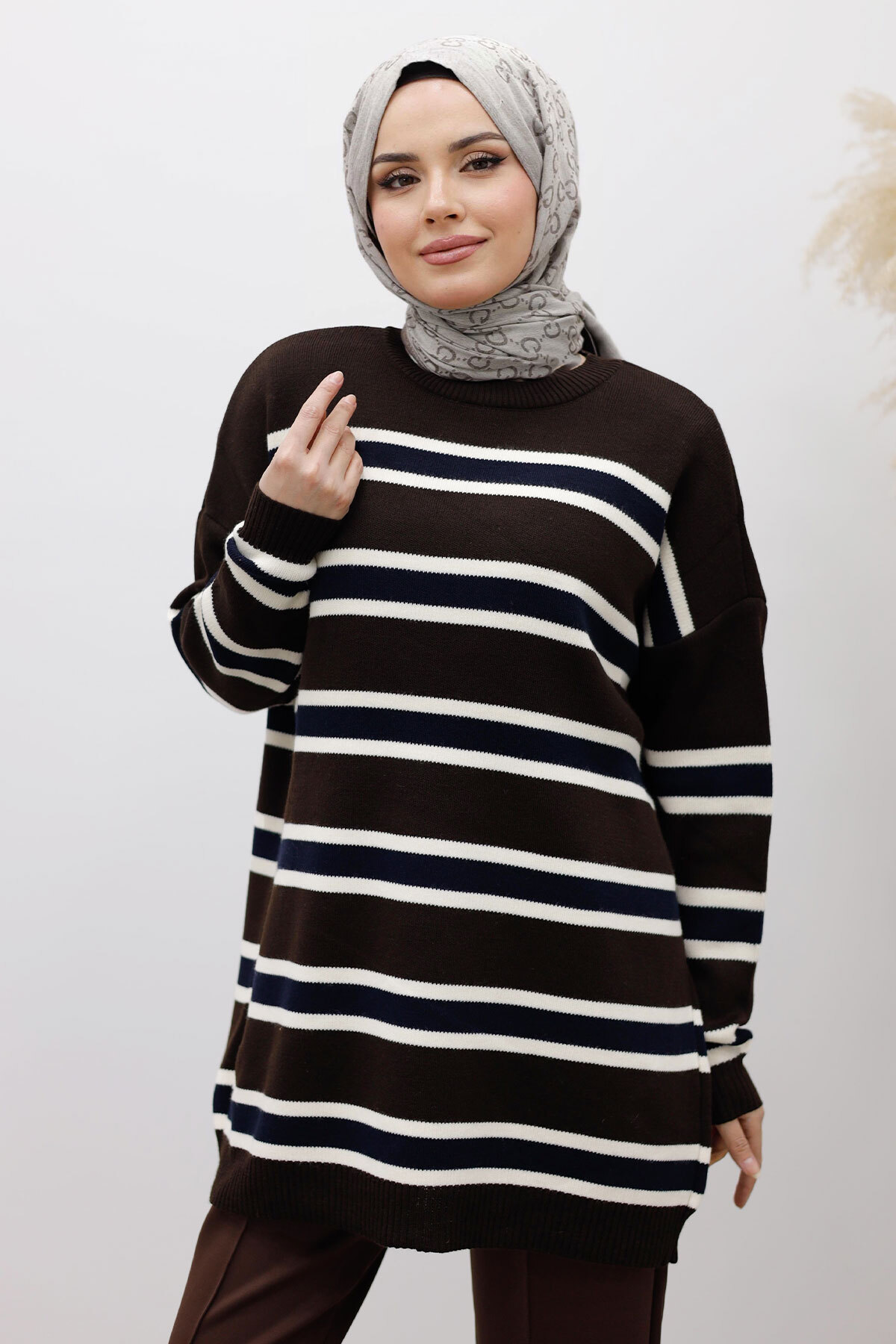 Yatay Çizgi Detaylı Triko Tunik TSD260108 Acı Kahve Özellikleri