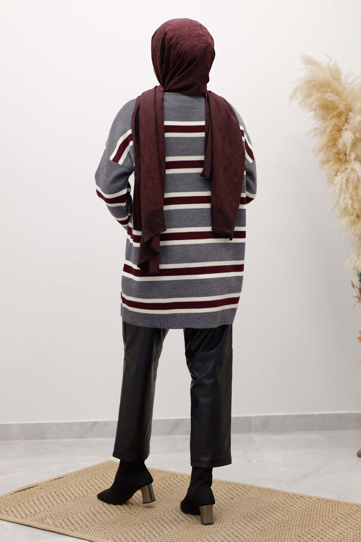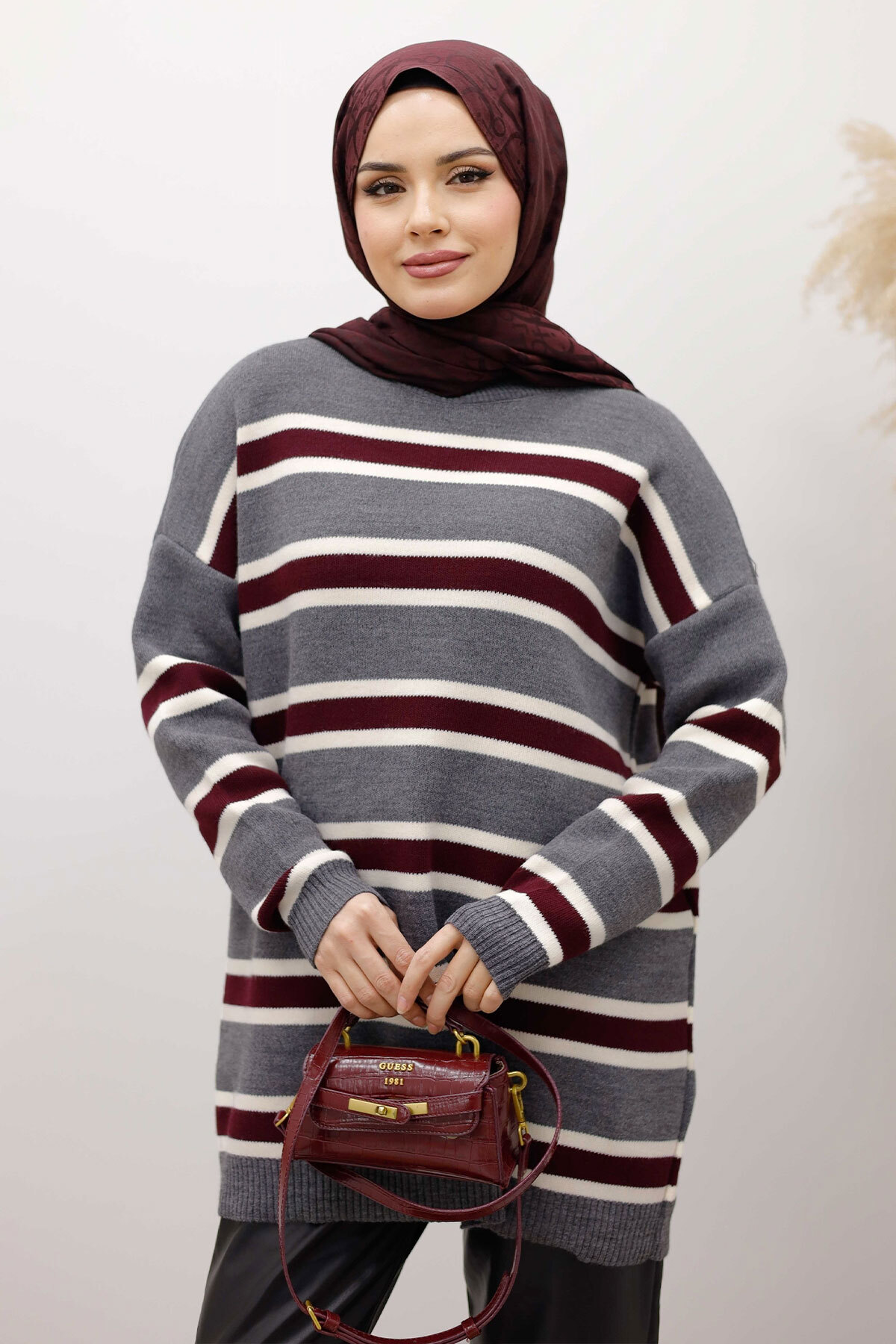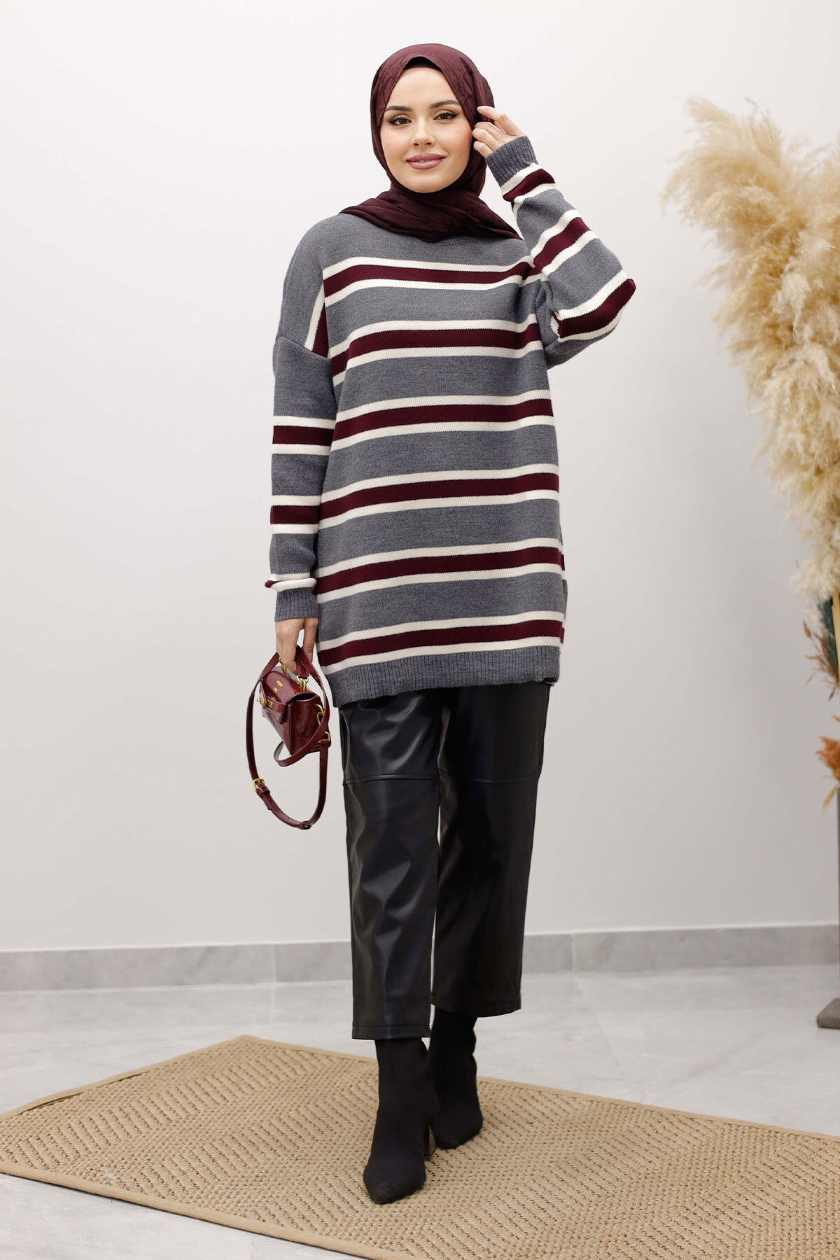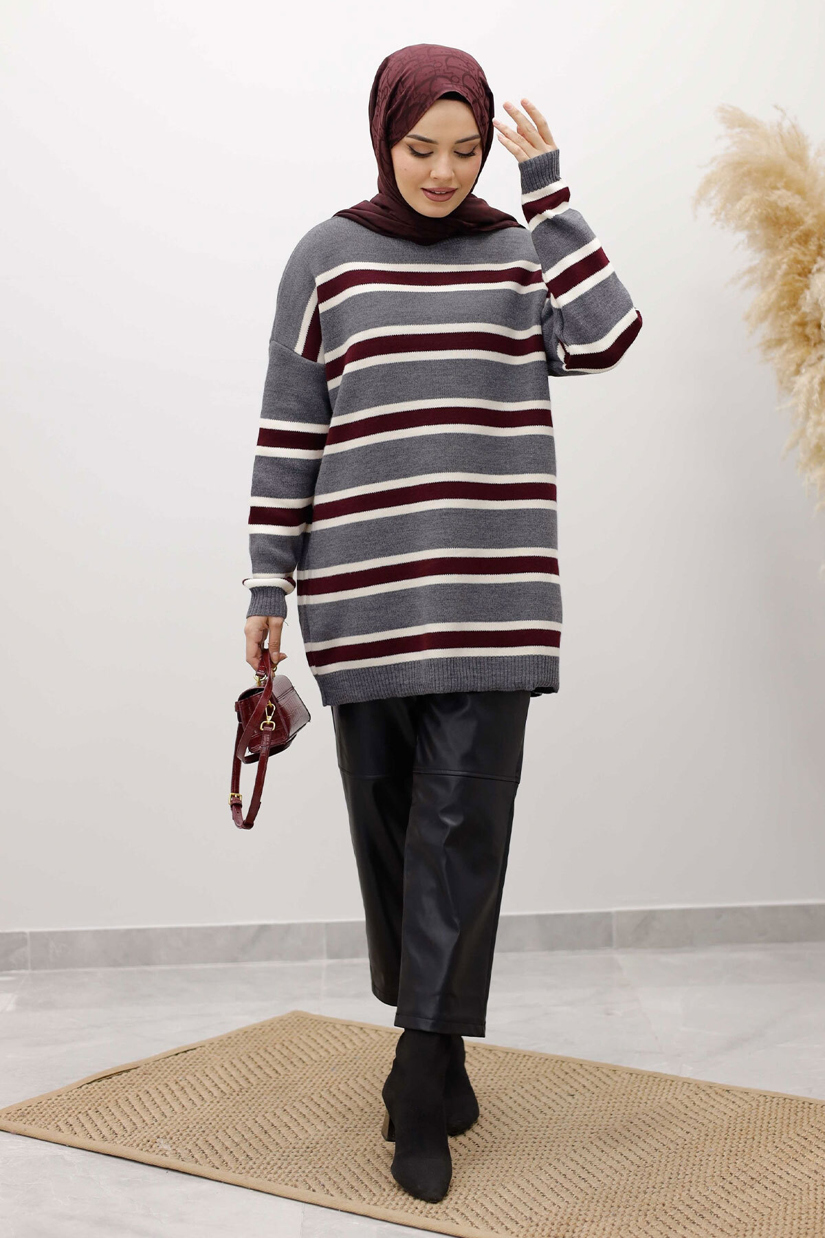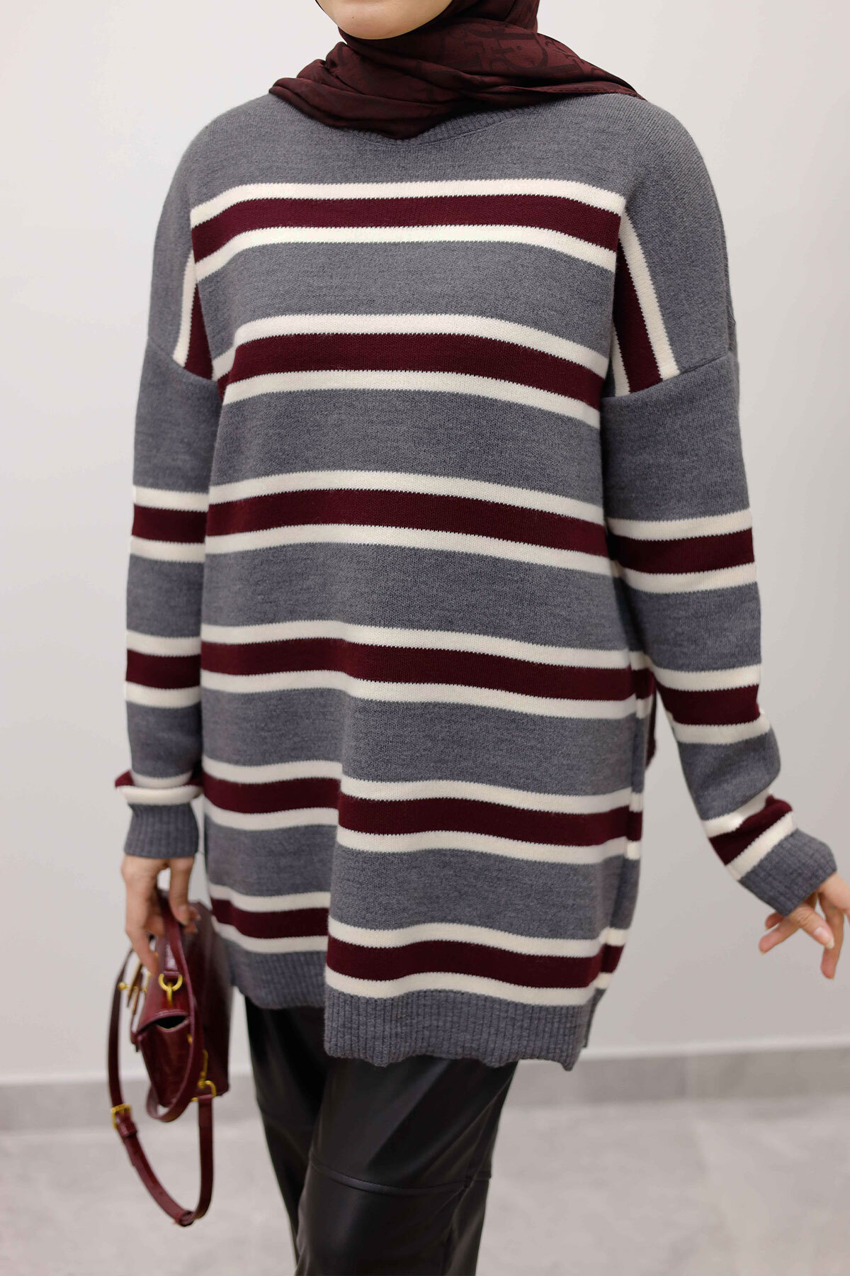 Yatay Çizgi Detaylı Triko Tunik TSD260108 Füme Özellikleri
