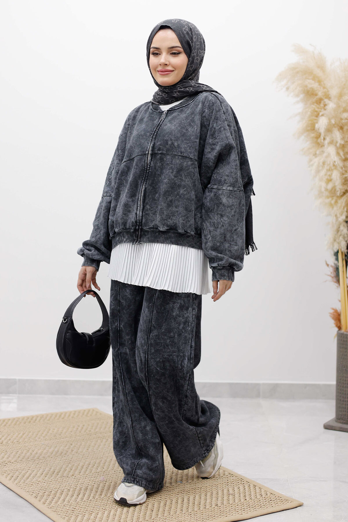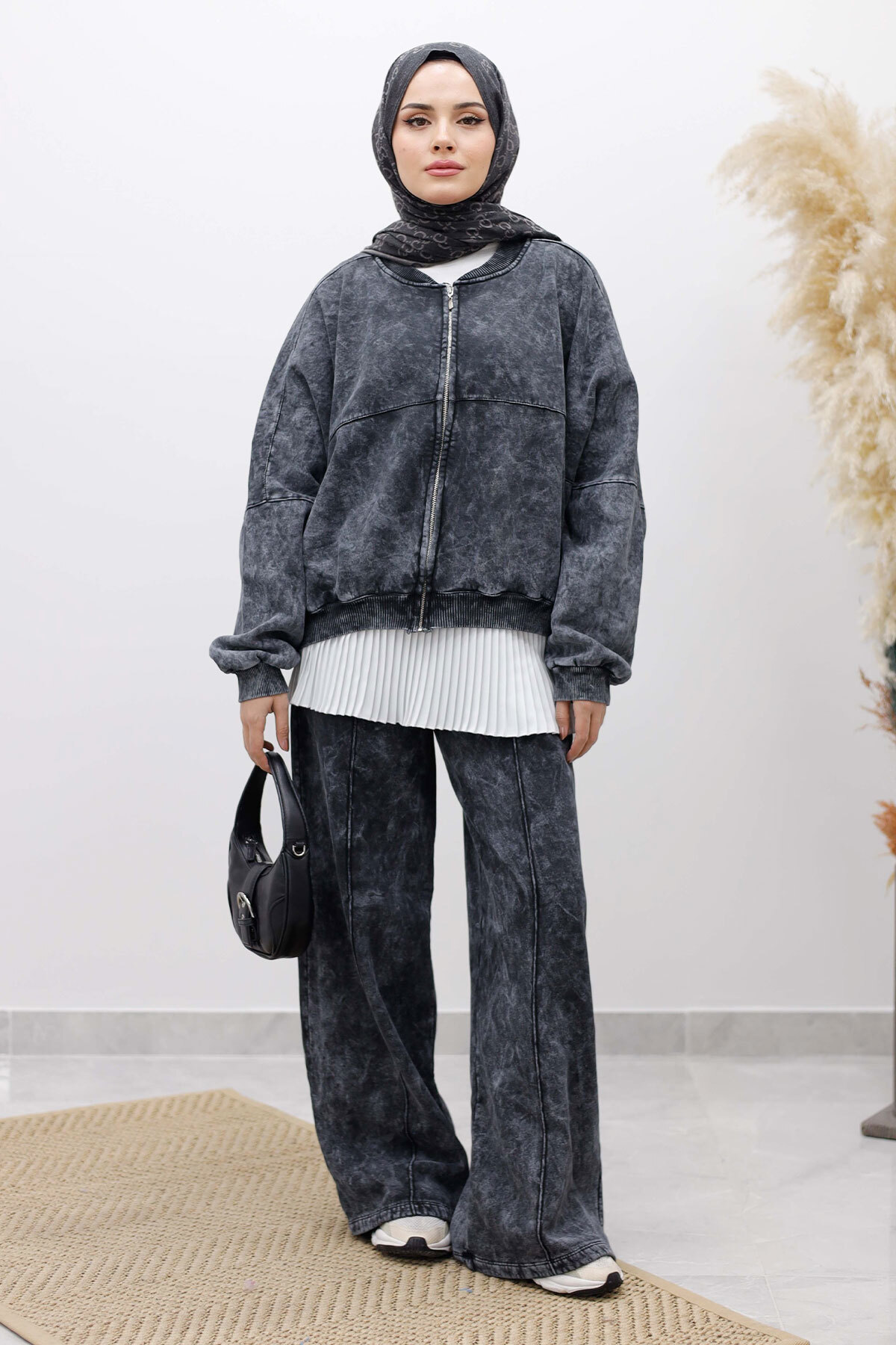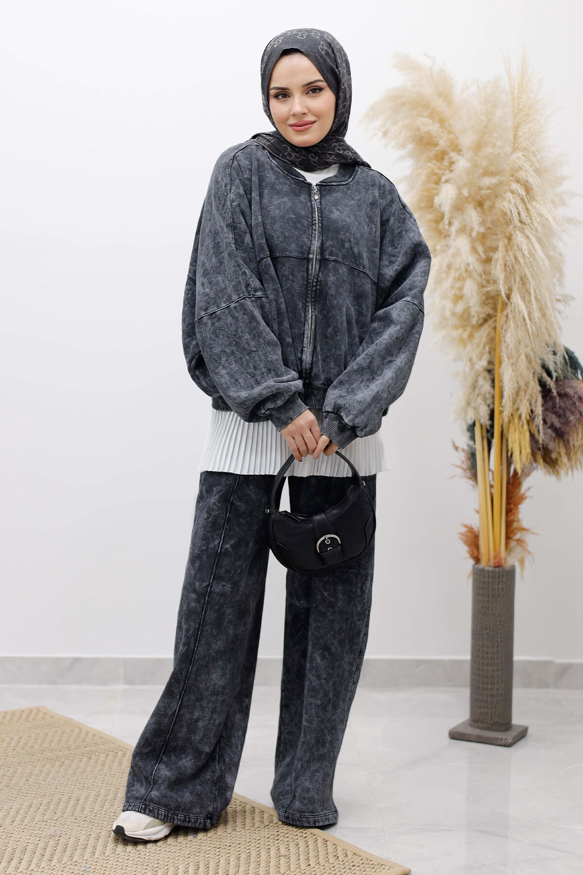 Yıkamalı Şardonlu Eşofman Takım TSD250260 Füme Özellikleri
