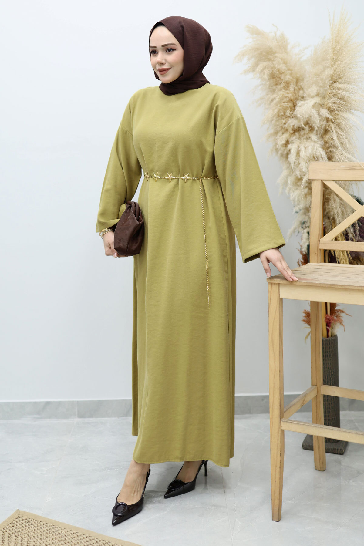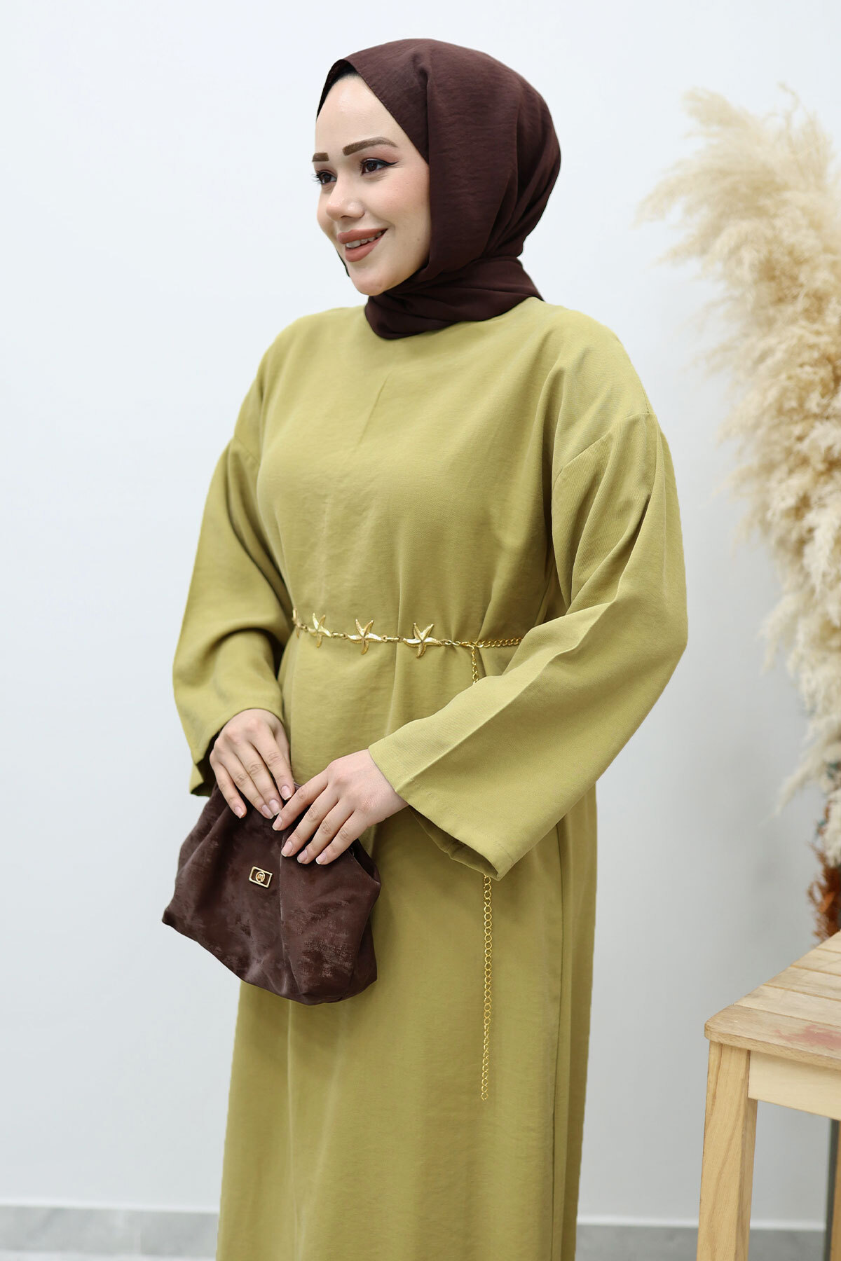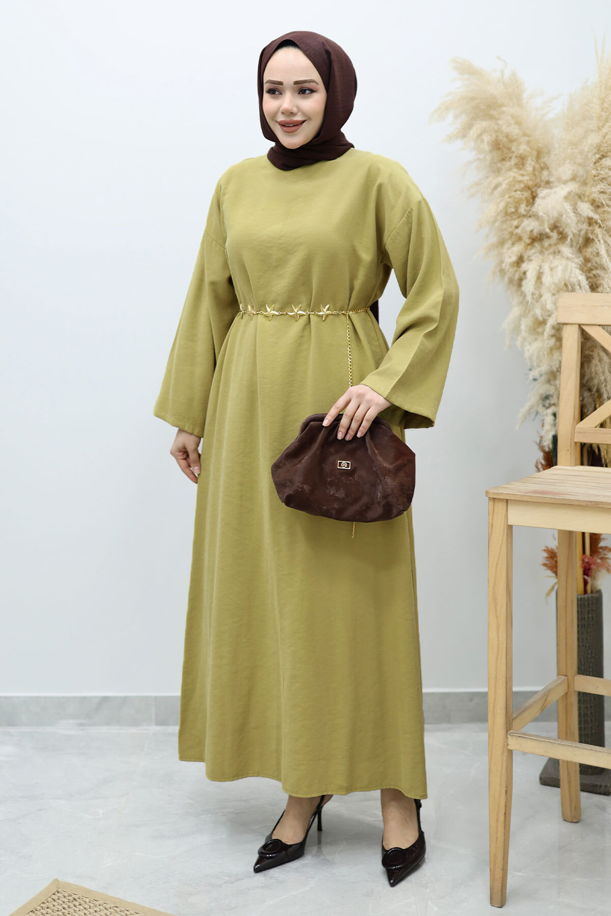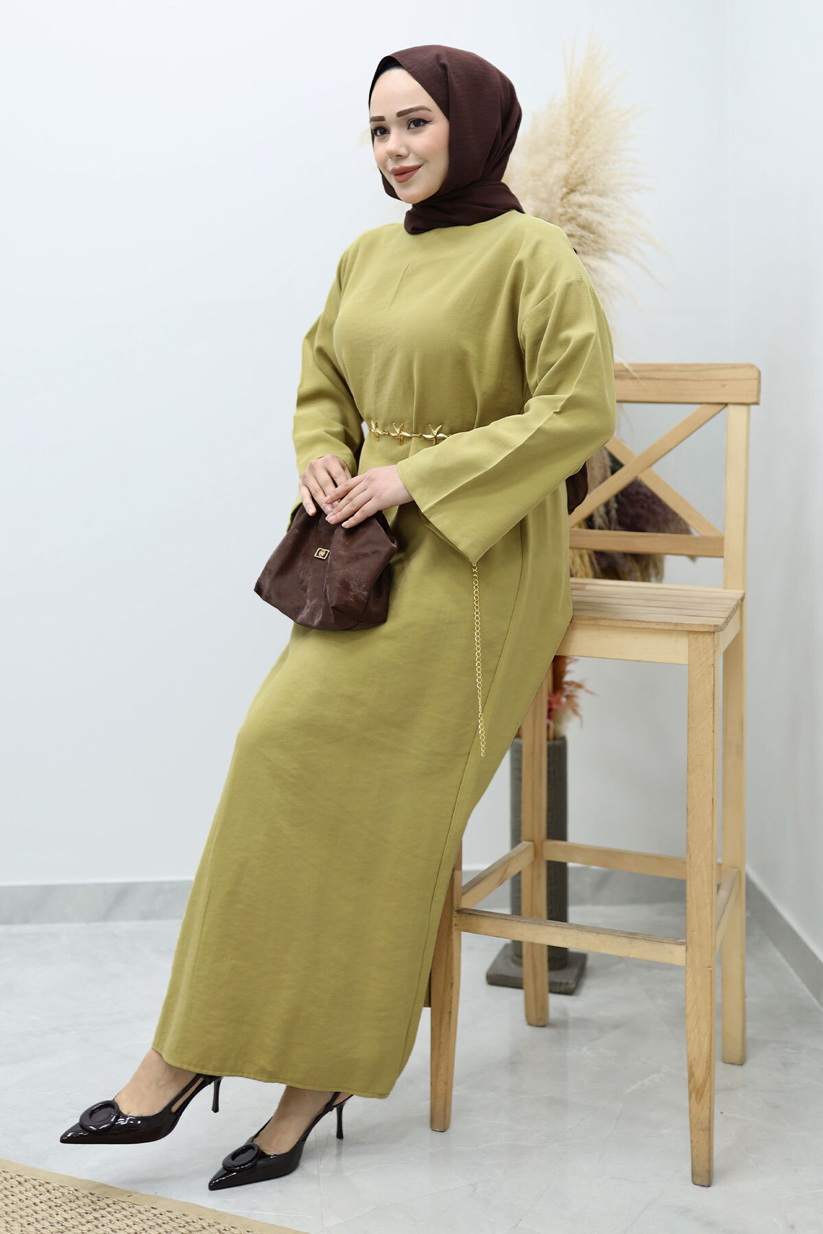 Yıldız Kemerli Elbise TSD260139 Yağ Yeşili Özellikleri