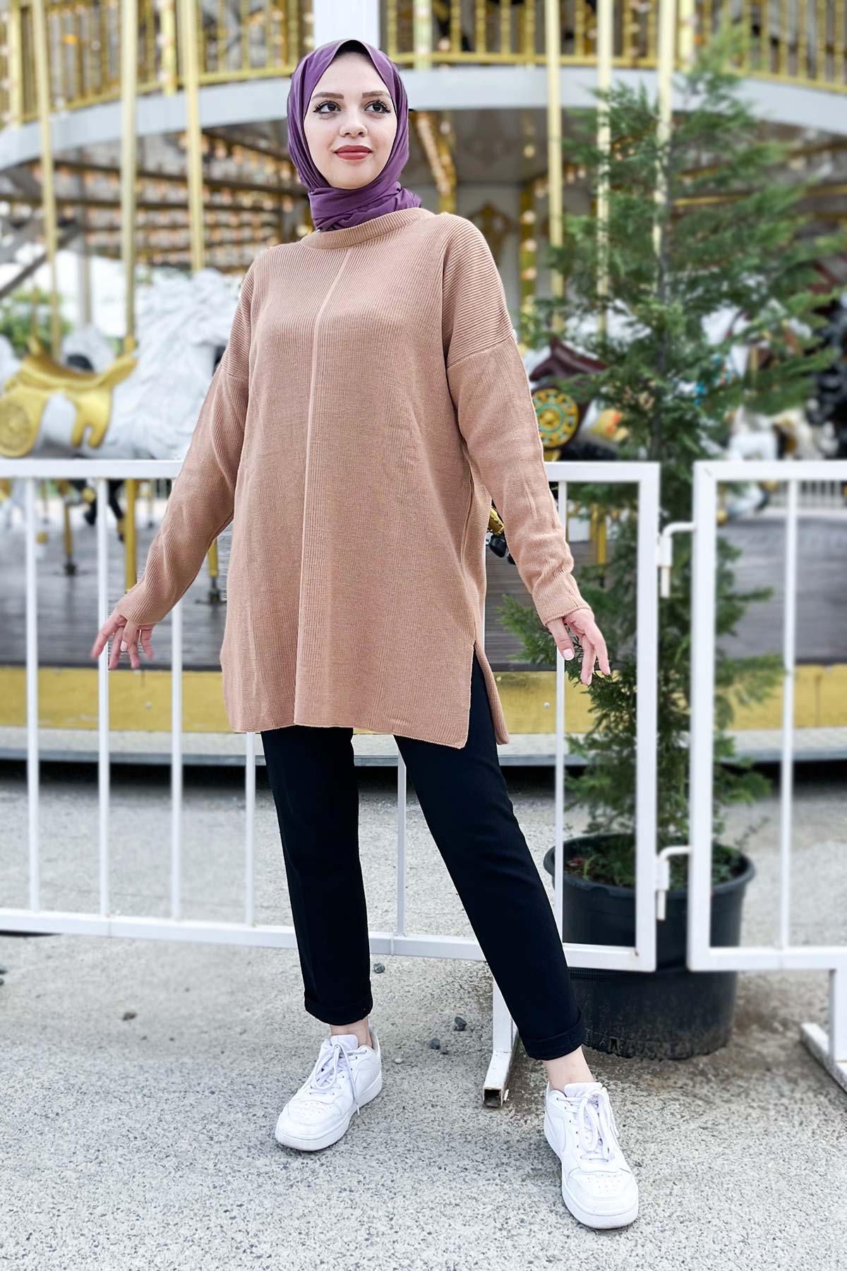 Ürün Özelliği : Yeni sezon Yırtmaç Detaylı Kazak modelidir. Ürün düşük kol modellidir.Yanlarında kısa yırtmaçlar vardır. Ürün renginde konsept çekimlerinden dolayı ton farklılığı olabilir.