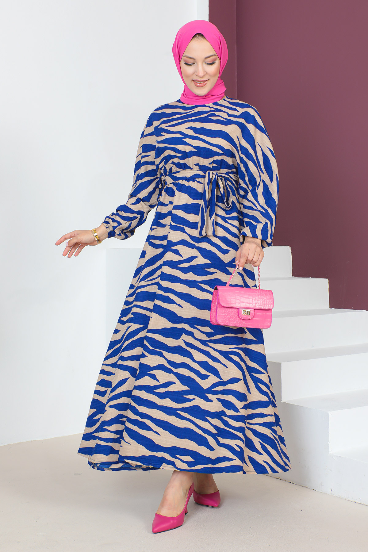 Zebra Desenli Elbise TSD230624 Mavi Özellikleri