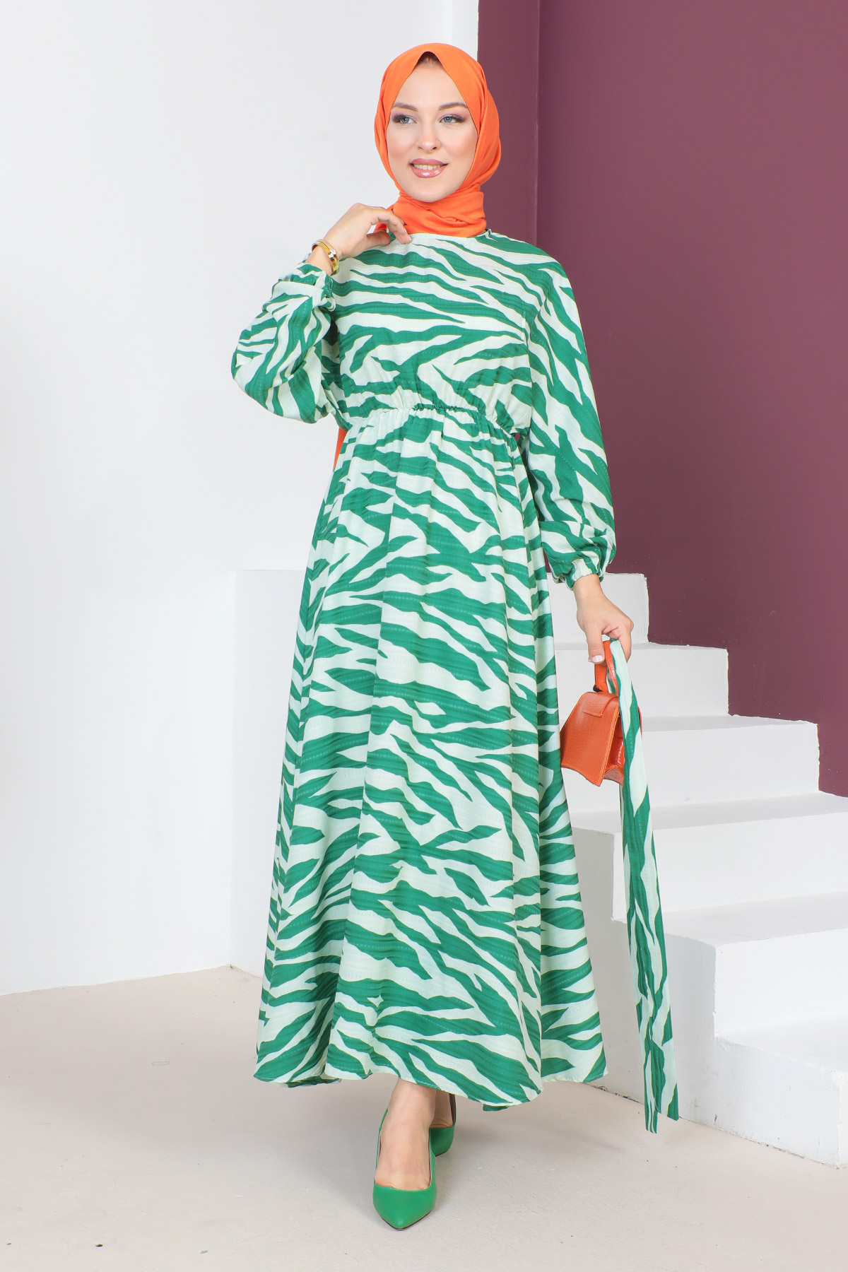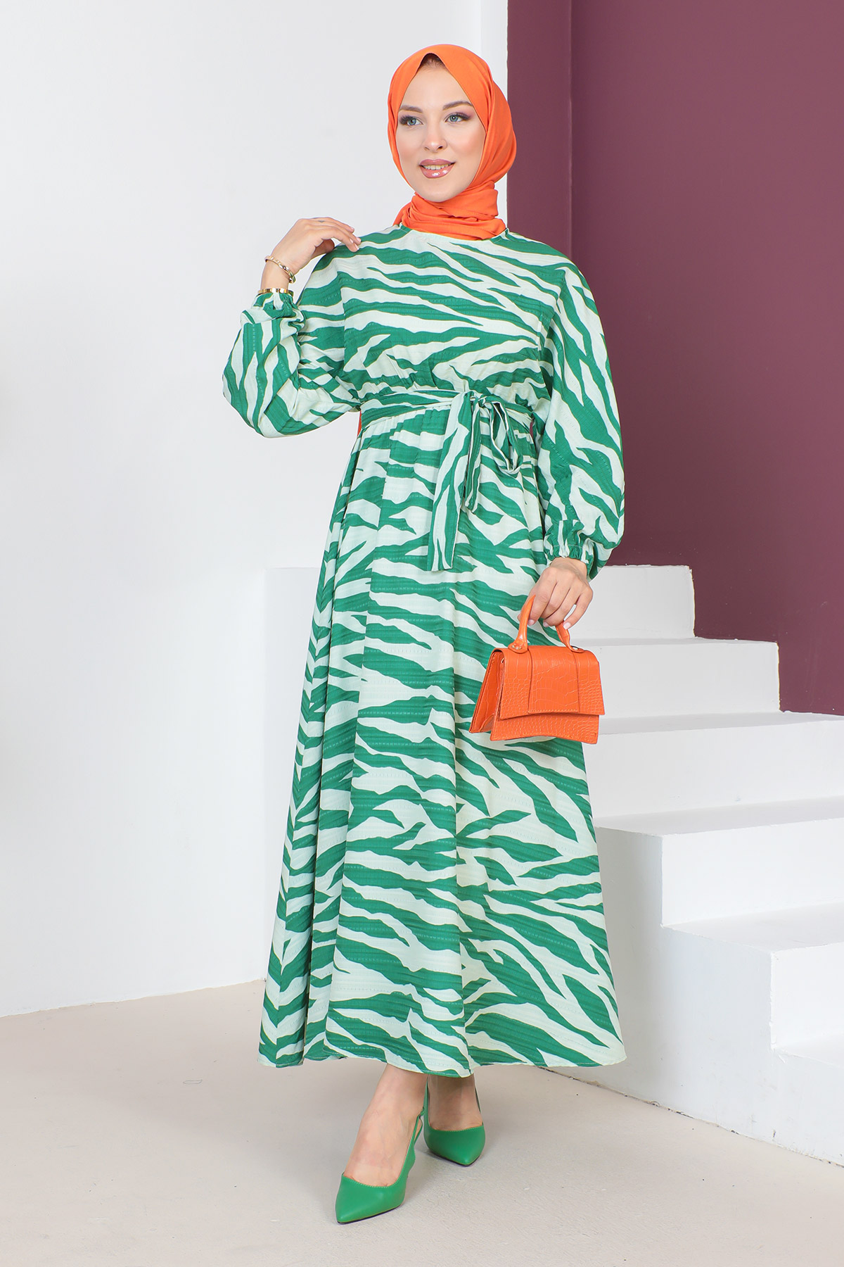Zebra Desenli Elbise TSD230624 Yeşil Özellikleri