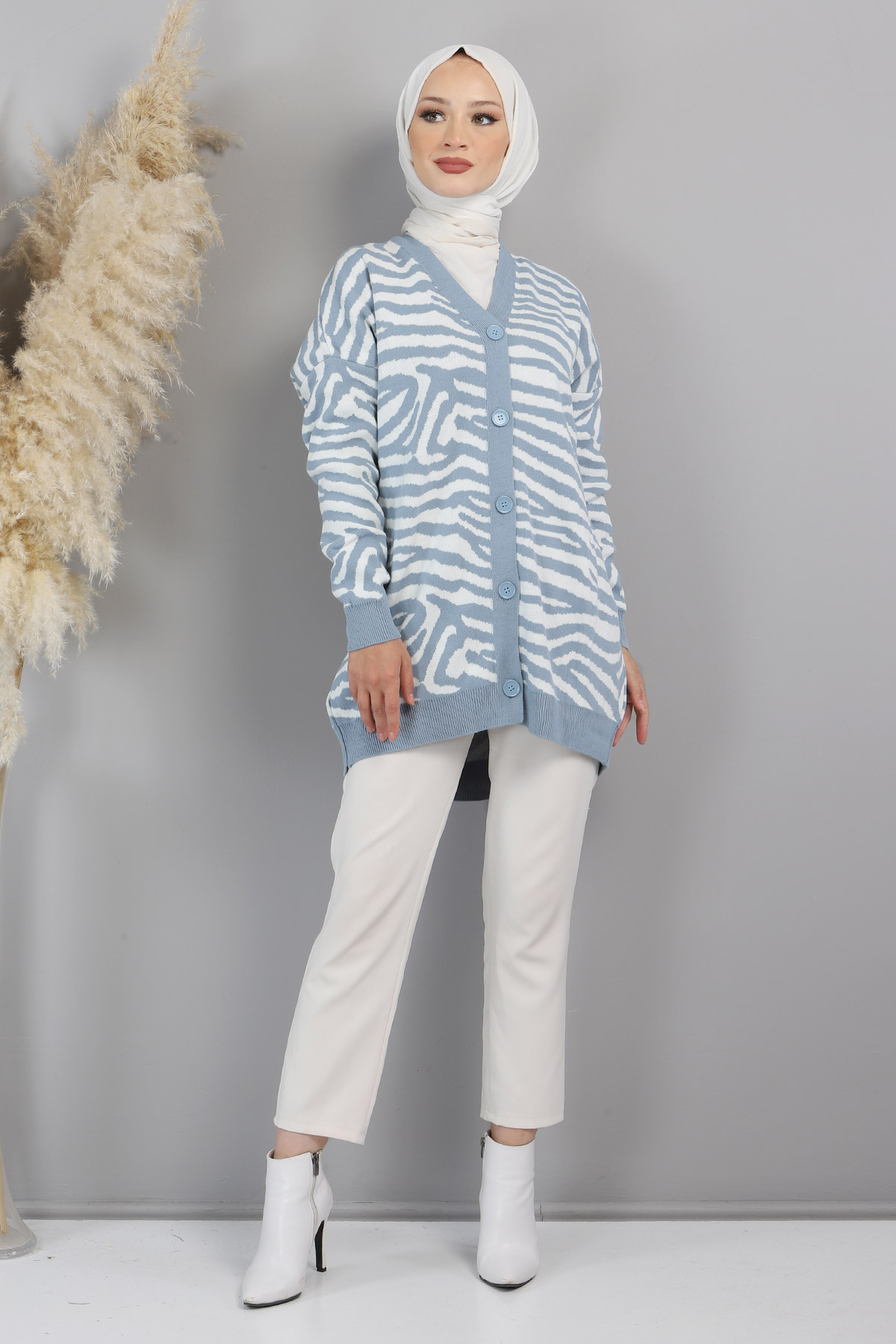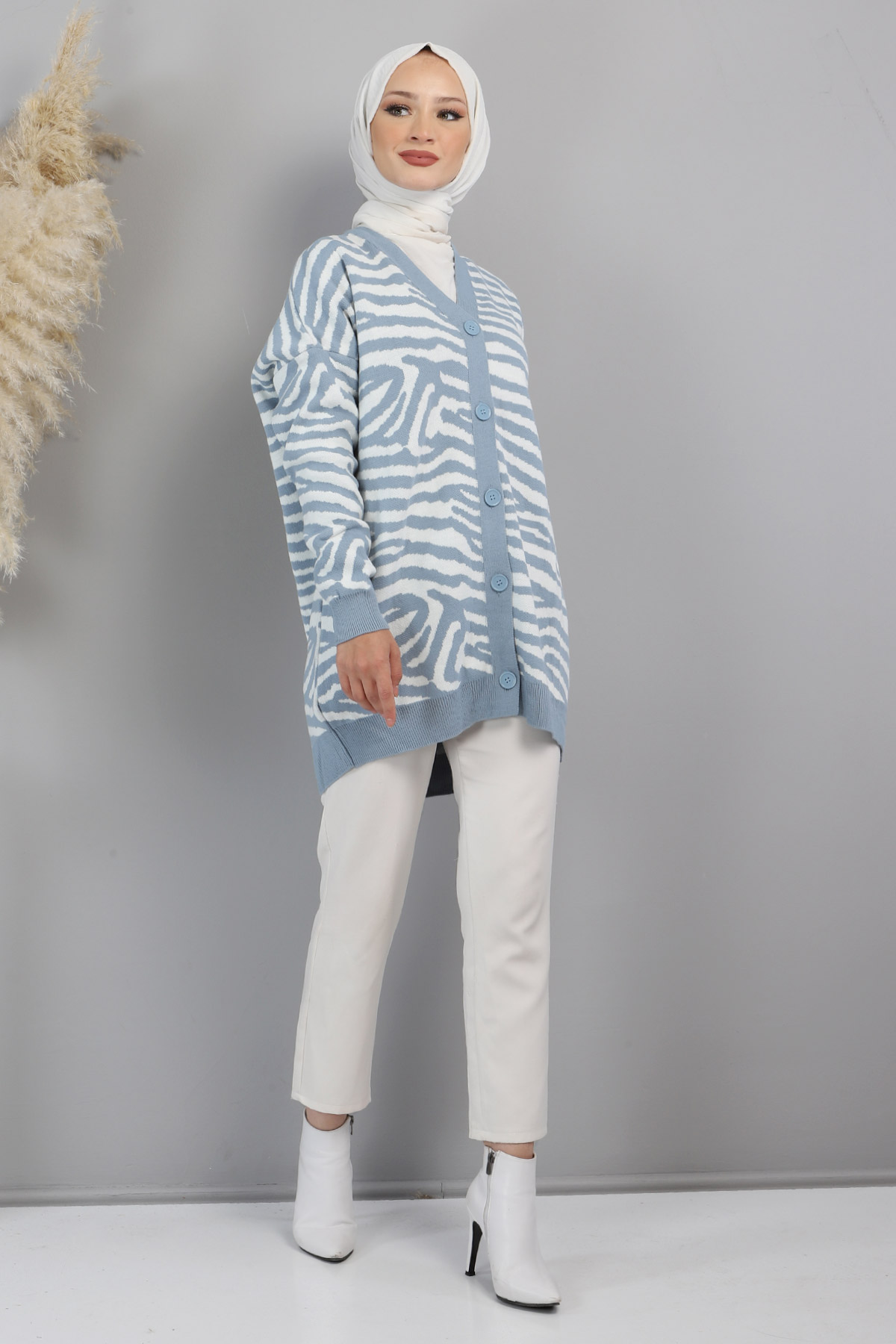Ürün Özelliği : Yeni sezon Zebra Desenli Hırka modelidir. Ürün düşük kol modellidir. Önden Düğmelidir. Ürün renginde konsept çekimlerinden dolayı ton farklılığı olabilir.