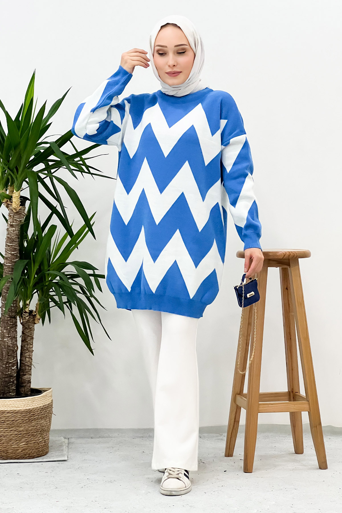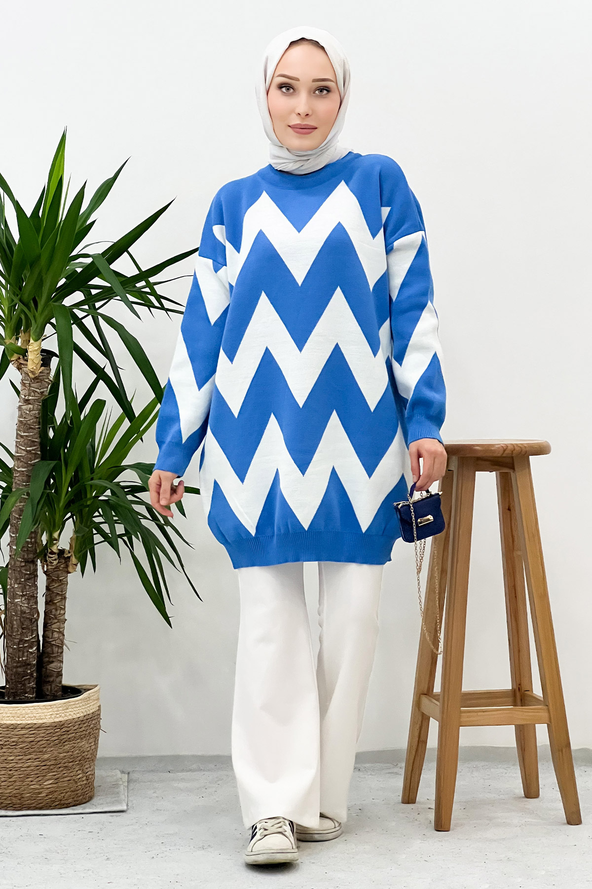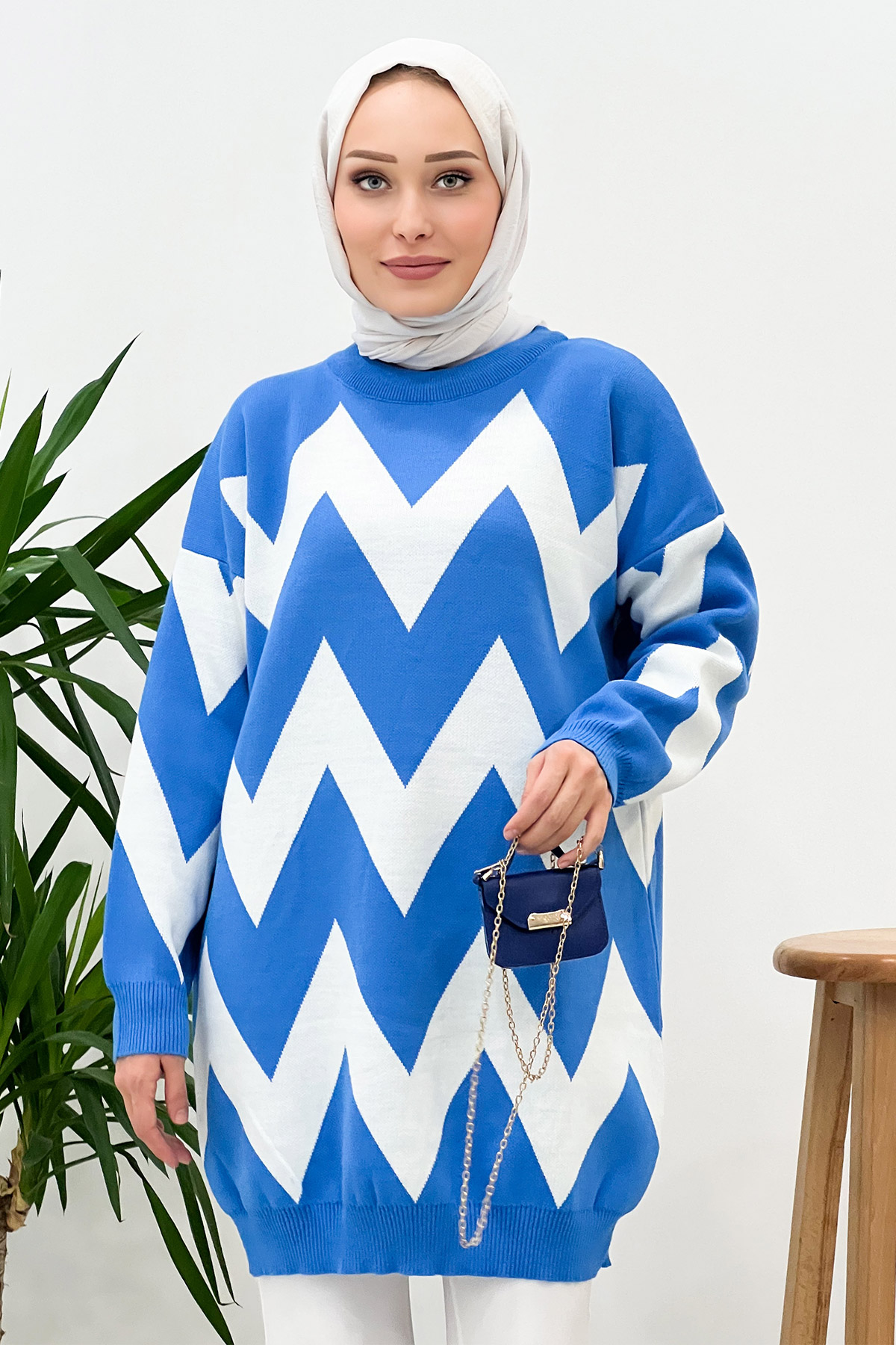 Ürün Özelliği : Yeni sezon Zikzak Desenli Triko Tunik modelidir. Ürün düşük kol modellidir. Triko üründür. Bisiklet yakadır. Ürün renginde konsept çekimlerinden dolayı ton farklılığı olabilir.